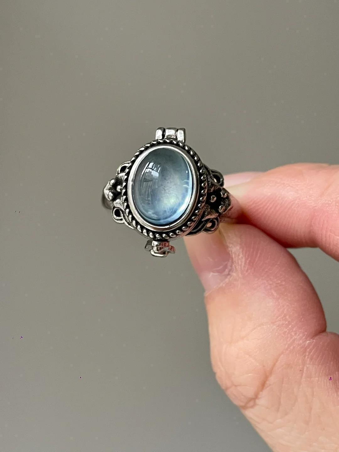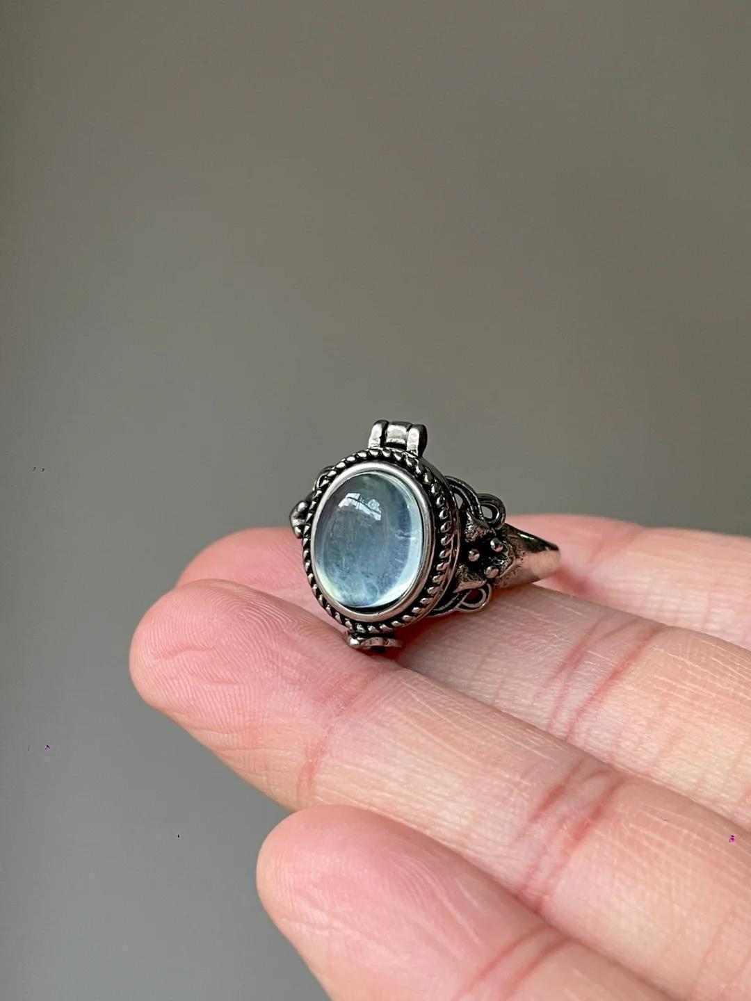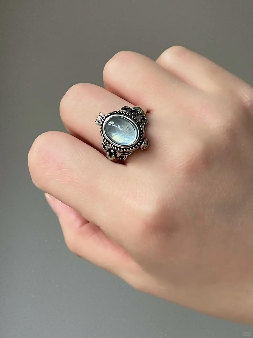 Anillo de Cristal Azul Claro Retro Europeo Diseño Nicho Único Anillo Abierto para Dedo Meñique Sensación de Lujo Ligero de Alta Gama Personalidad