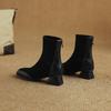 Botas Martin de otoño e invierno de tacón medio y talla grande para mujer, tacón cuadrado, cómodas, con cremallera trasera, color sólido, estilo coreano, nuevas, suela de goma, botas de media caña