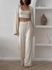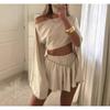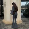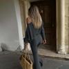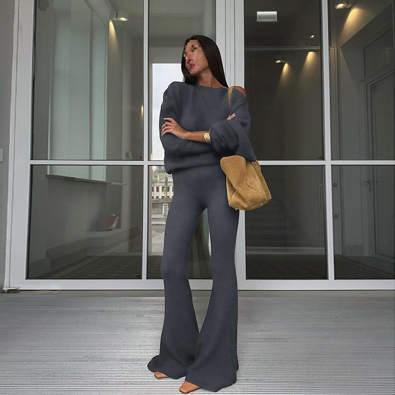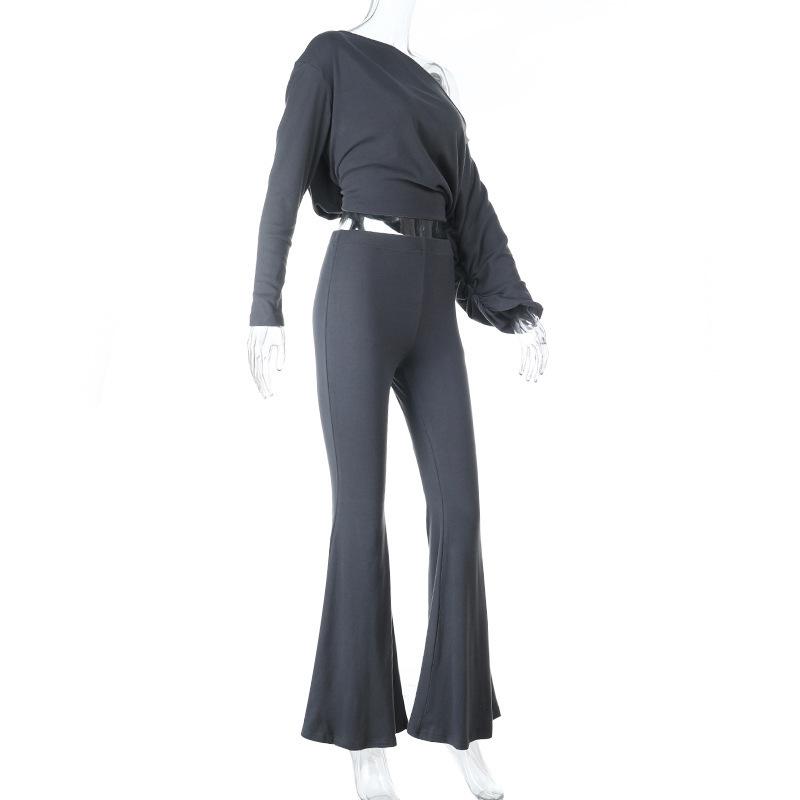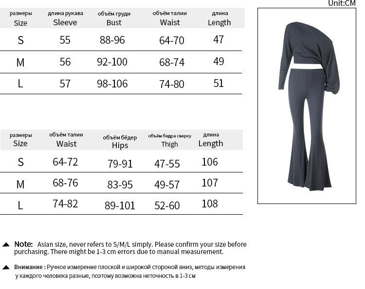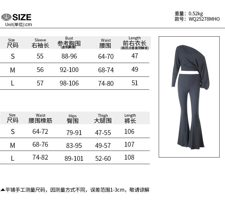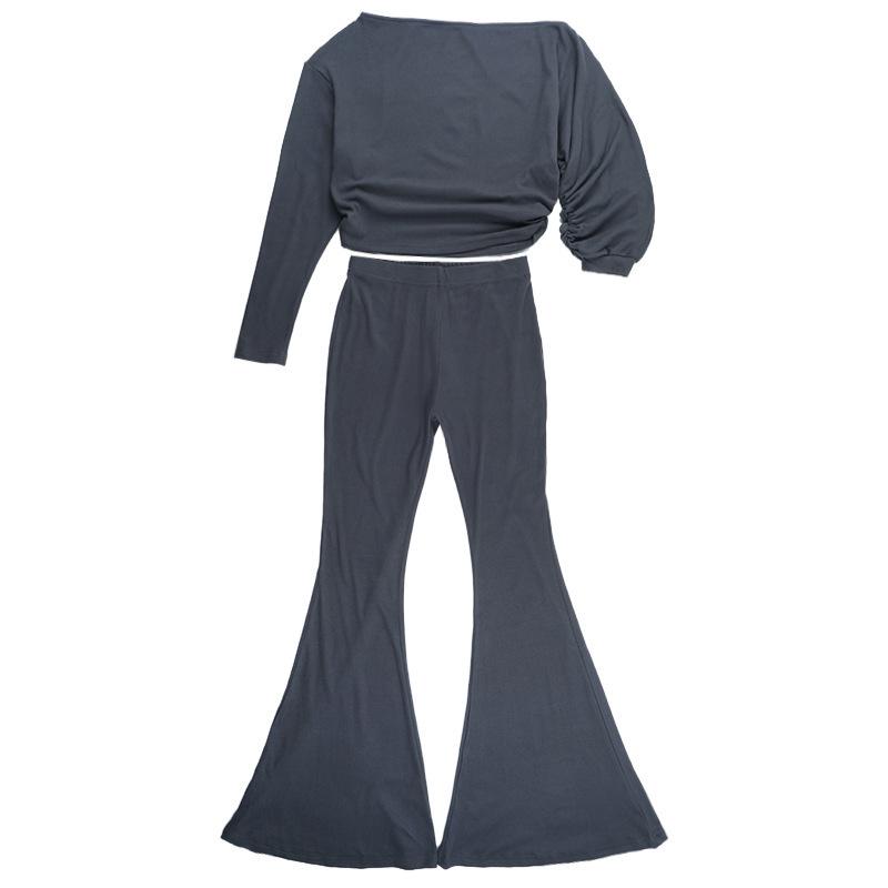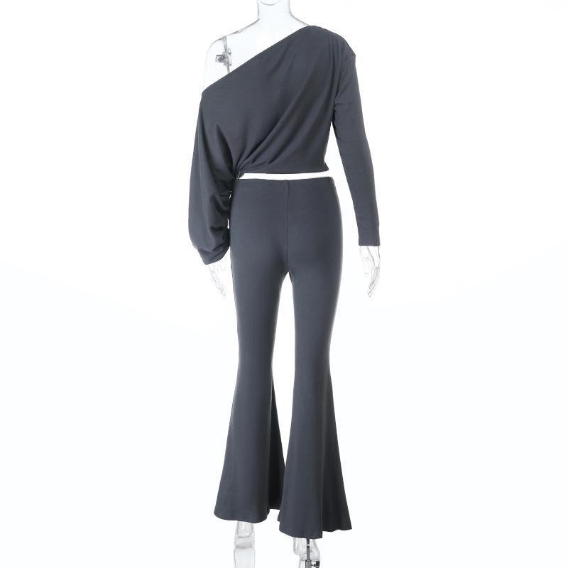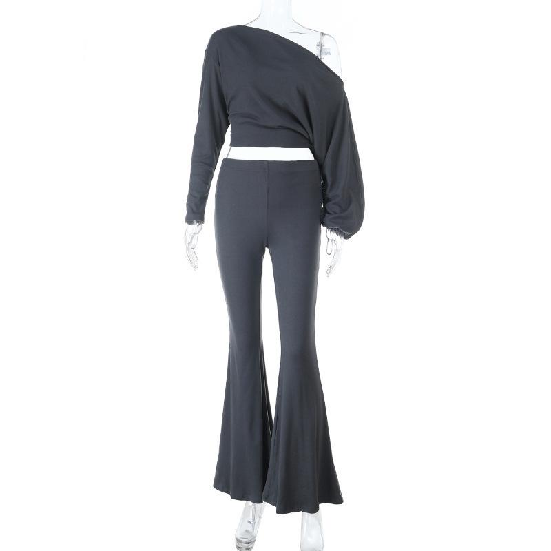Moda Otoño 2025 Casual Manga Irregular Hombro Descubierto Crop Top Micro Acampanado Set Sencillo Tendencia Transfronteriza