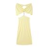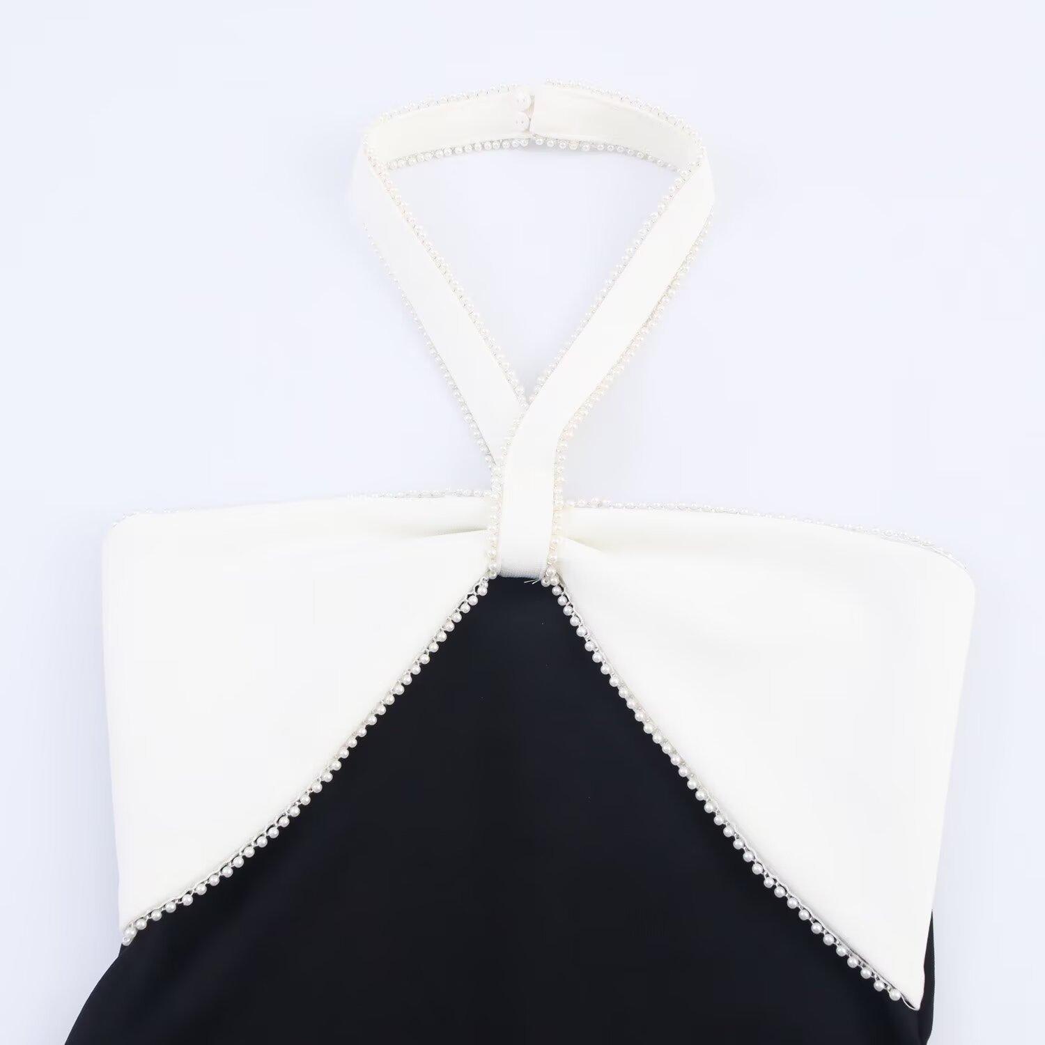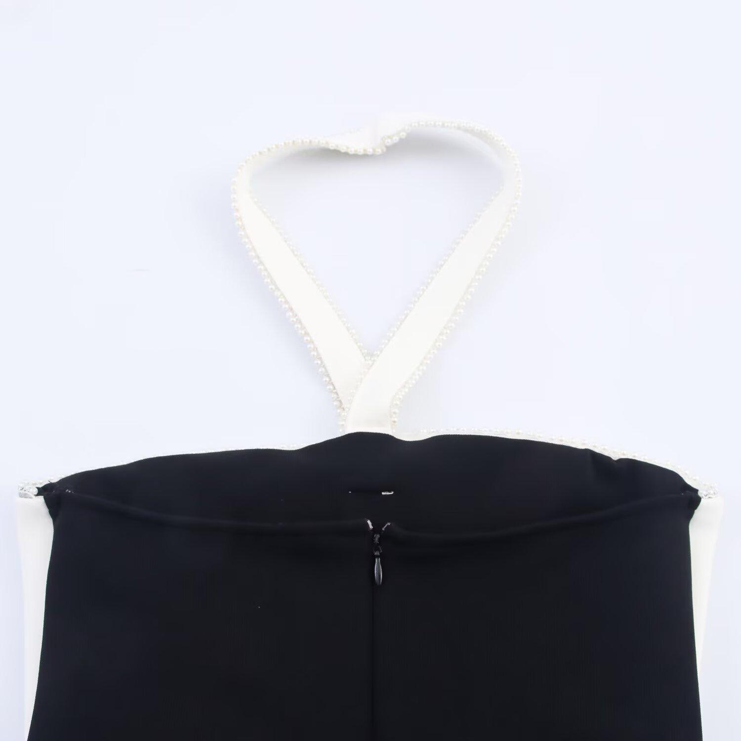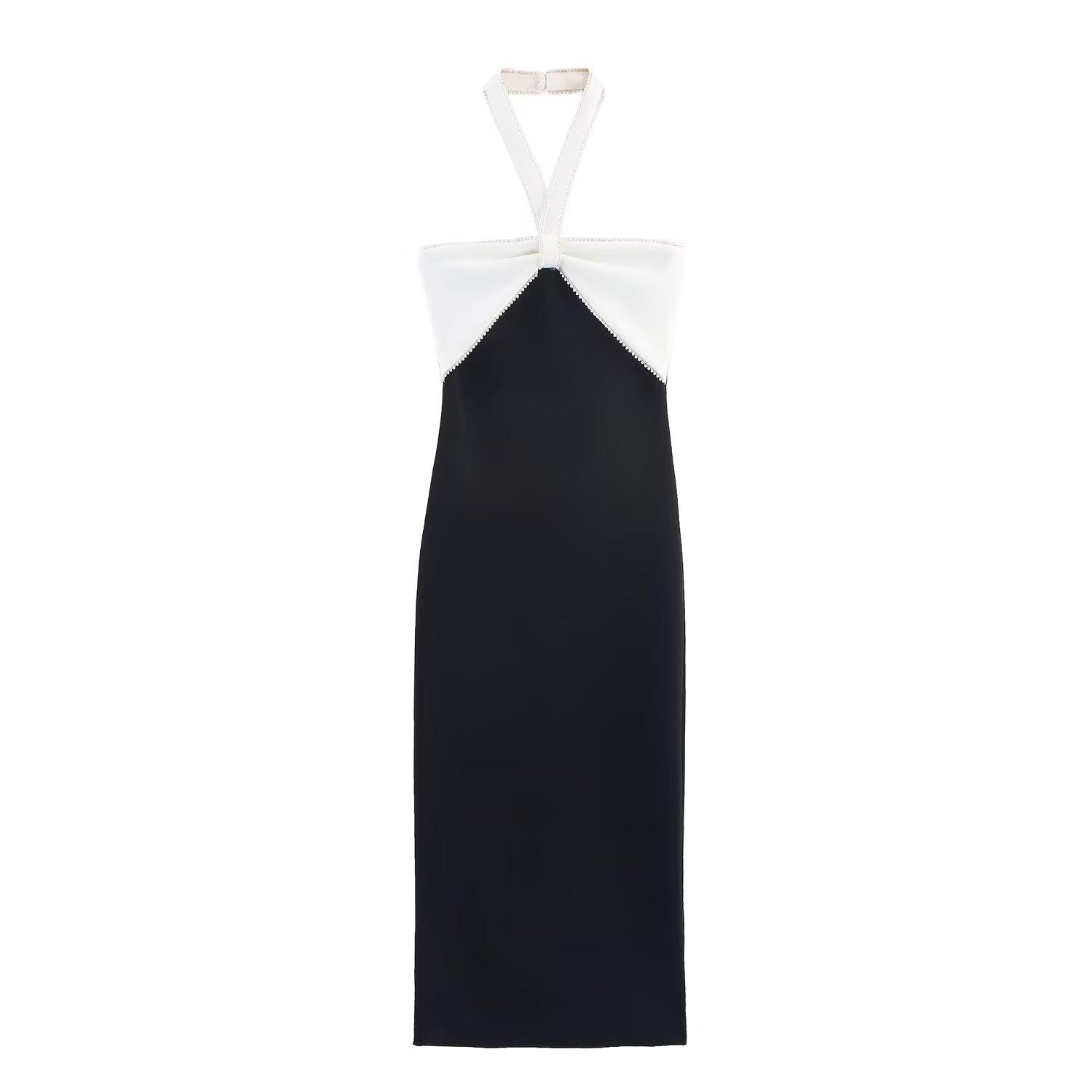 Moda Femenina Europea y Americana Transfronteriza AliExpress Más Vendido Vestido Midi Elástico con Cuello Halter y Decoración de Lazo