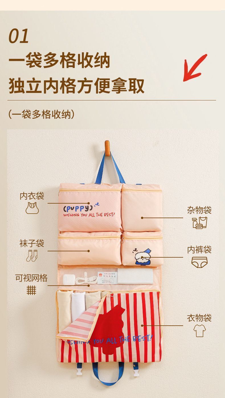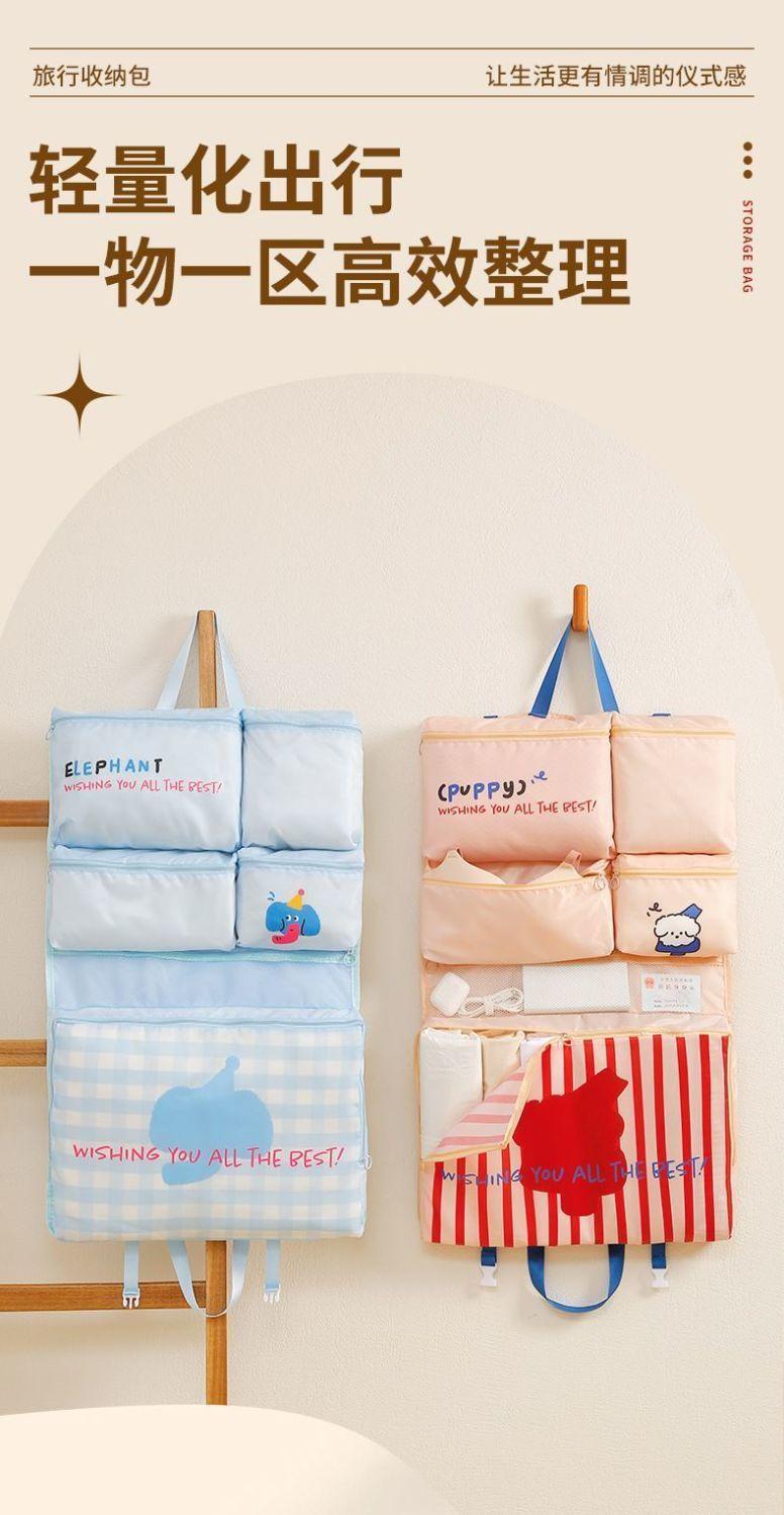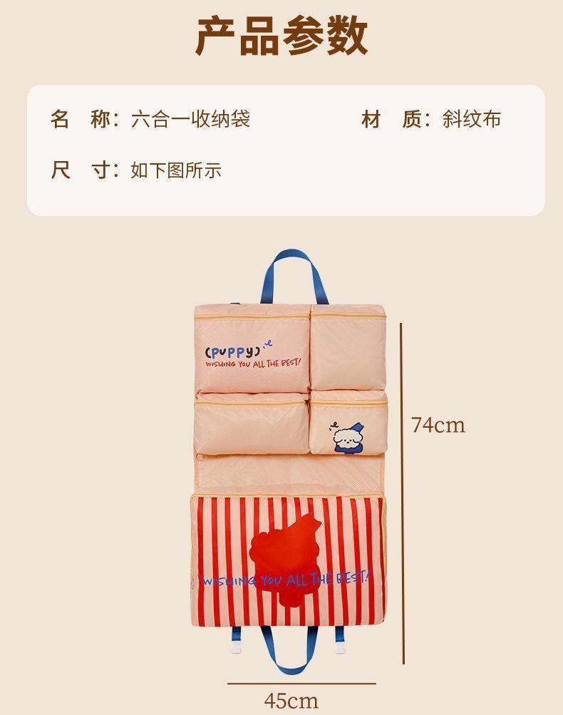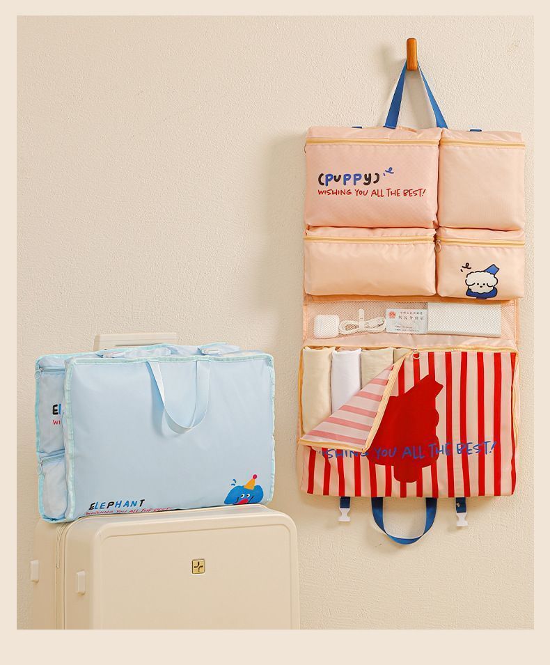 Long-nosed baby elephant [6-in-1] travel portable handbag, Scrawled puppy [6-in-1] travel portable tote bag