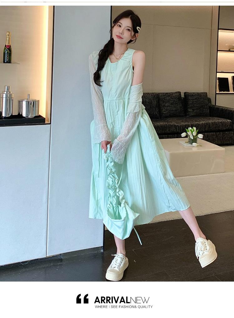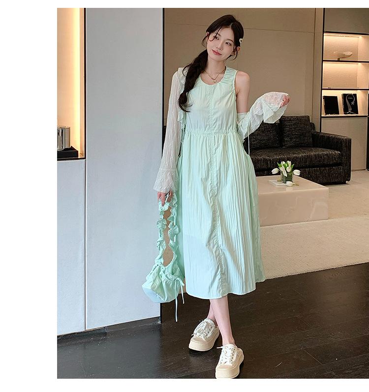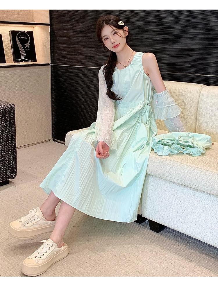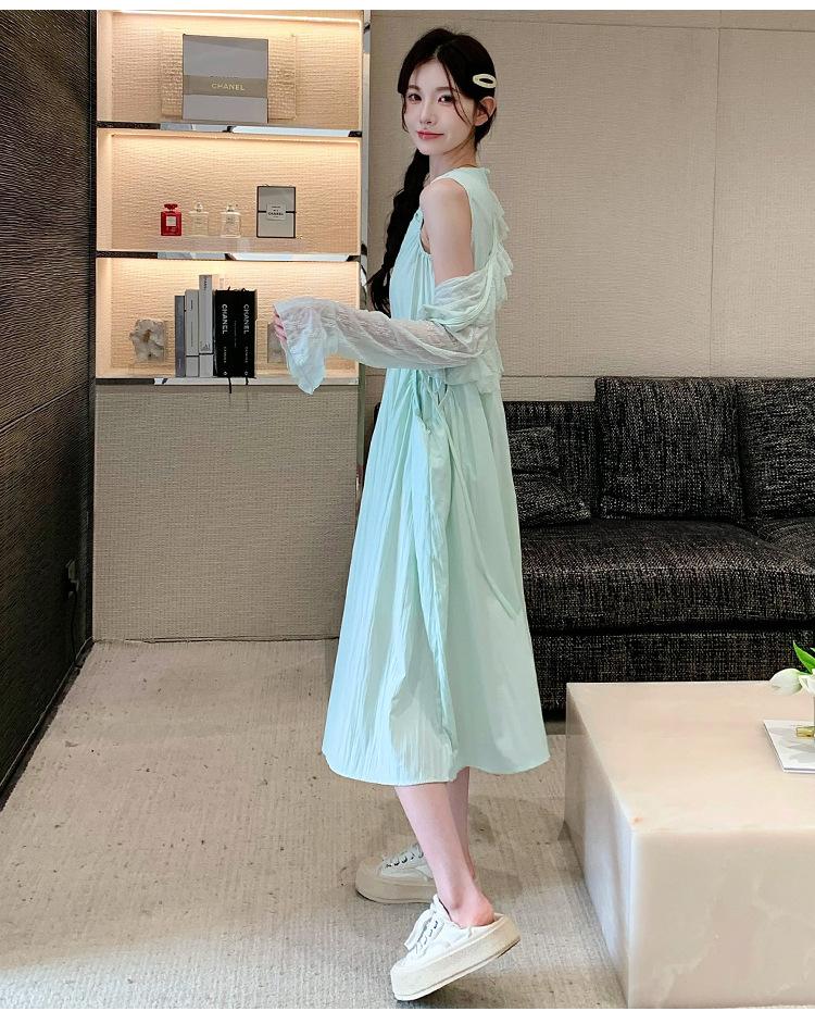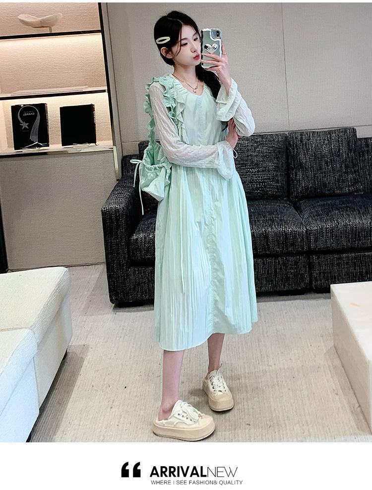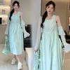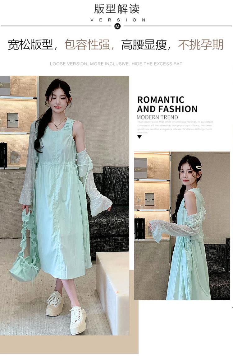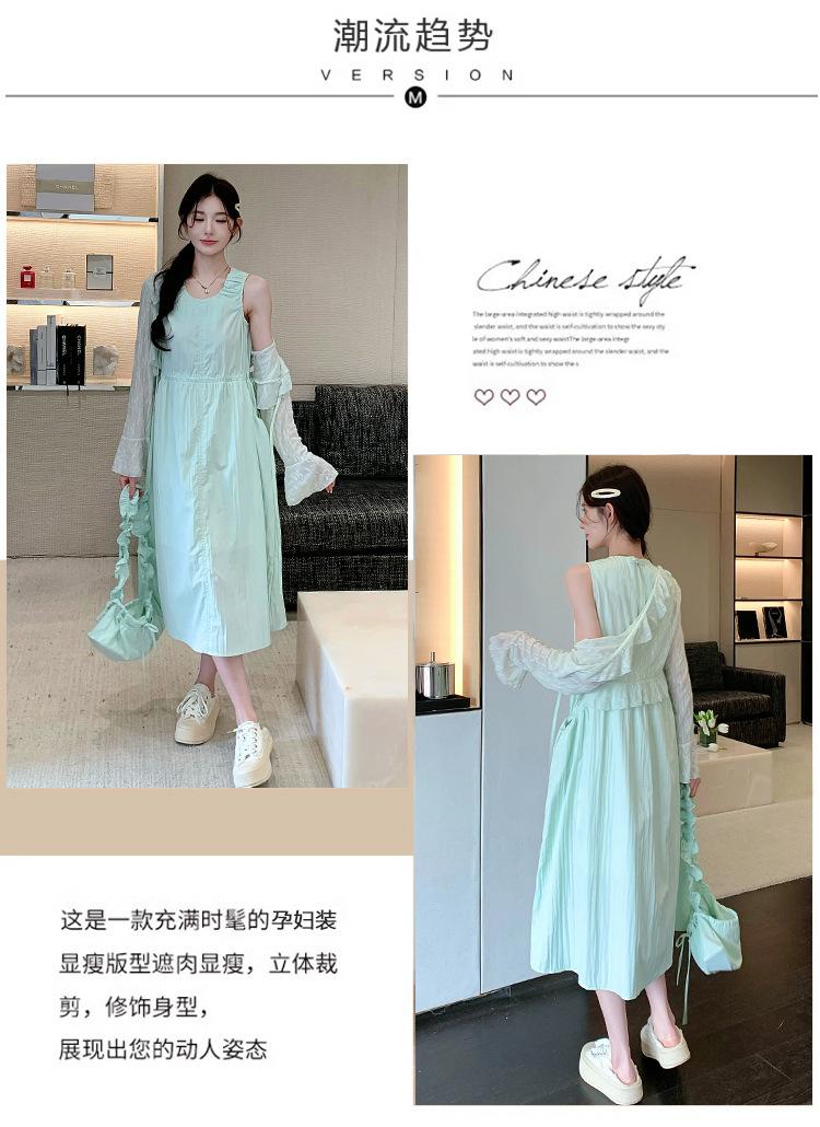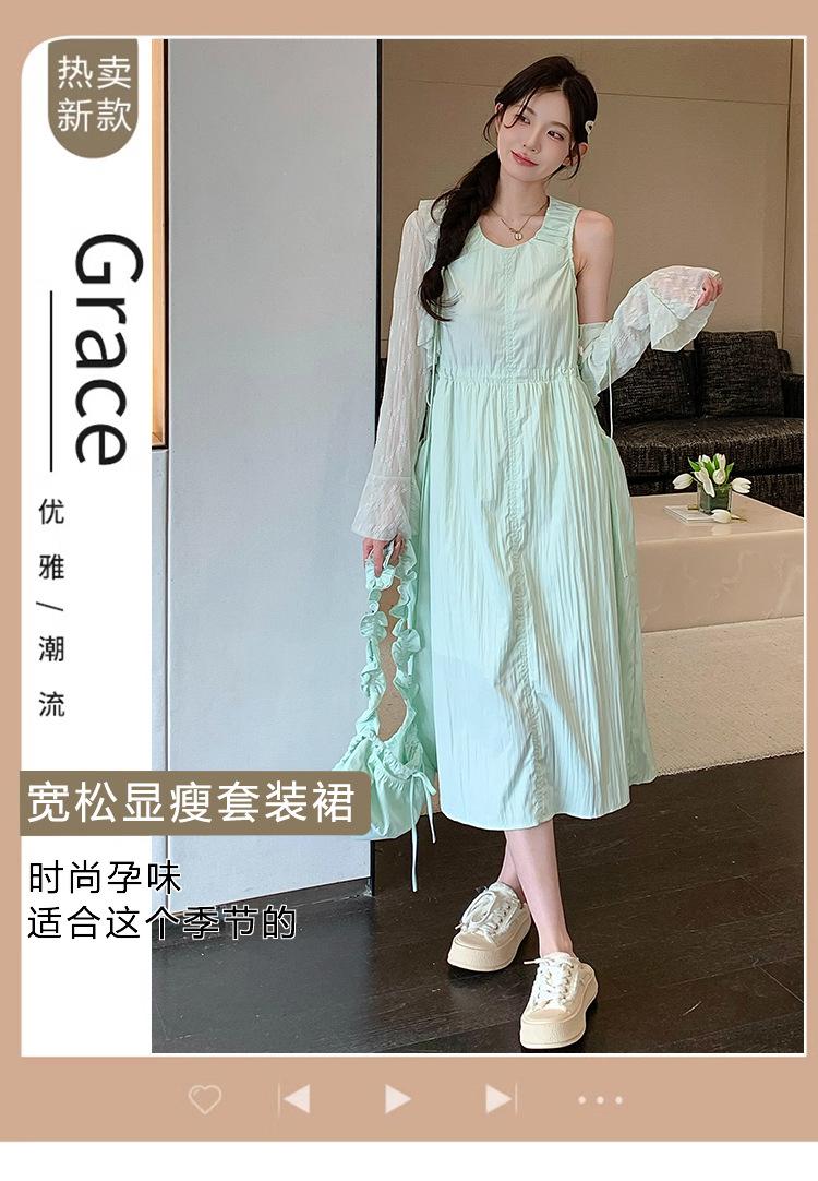 Ropa de Maternidad 2025 Nuevo Verano Dulce Encaje Vestido Chaleco + Cárdigan de Encaje Vestido de Maternidad de Dos Piezas