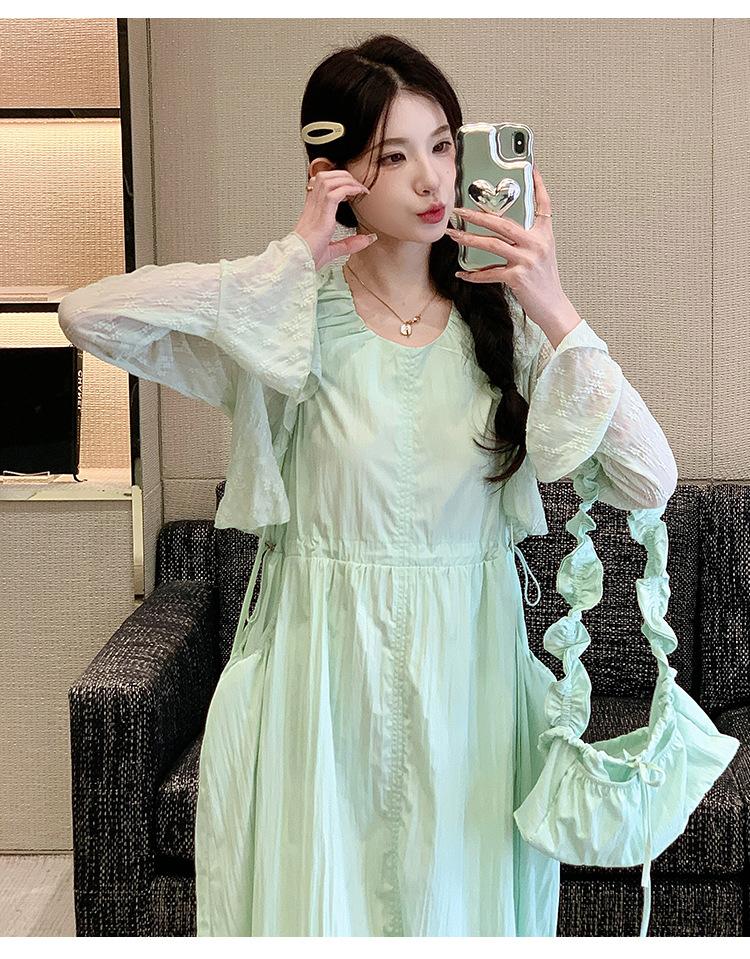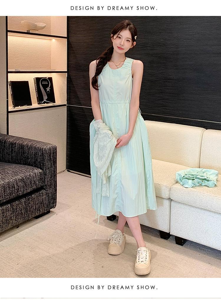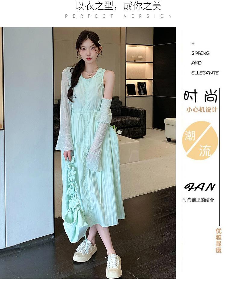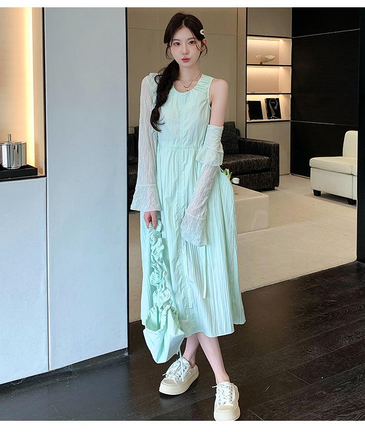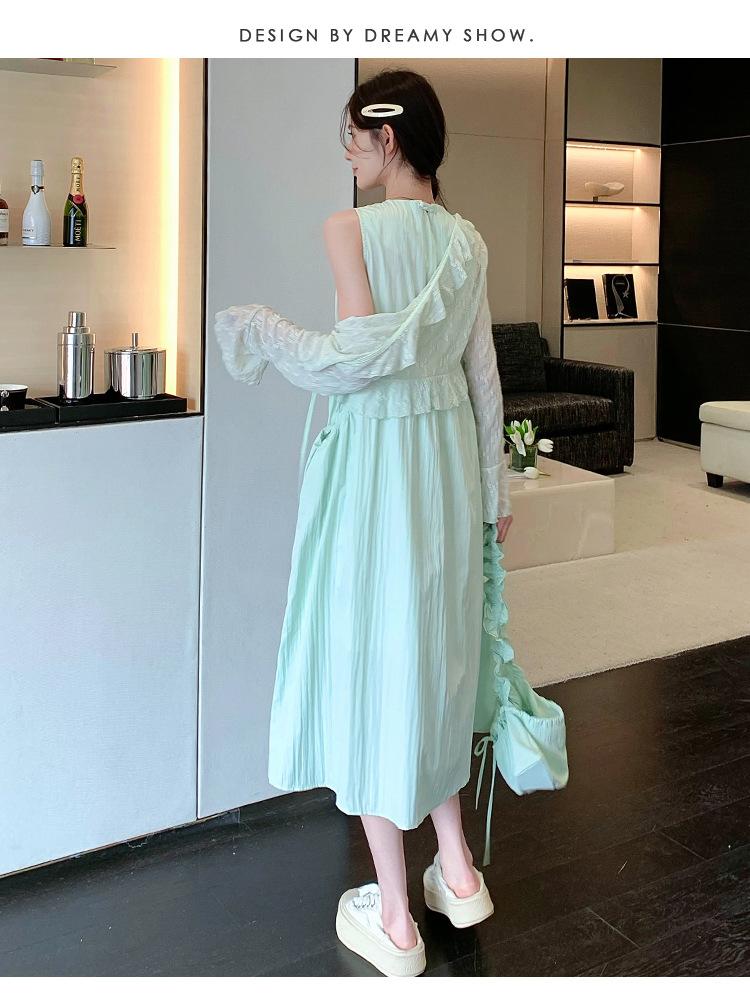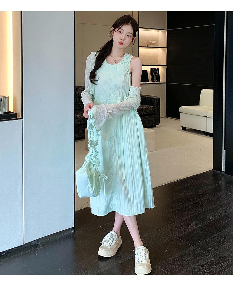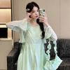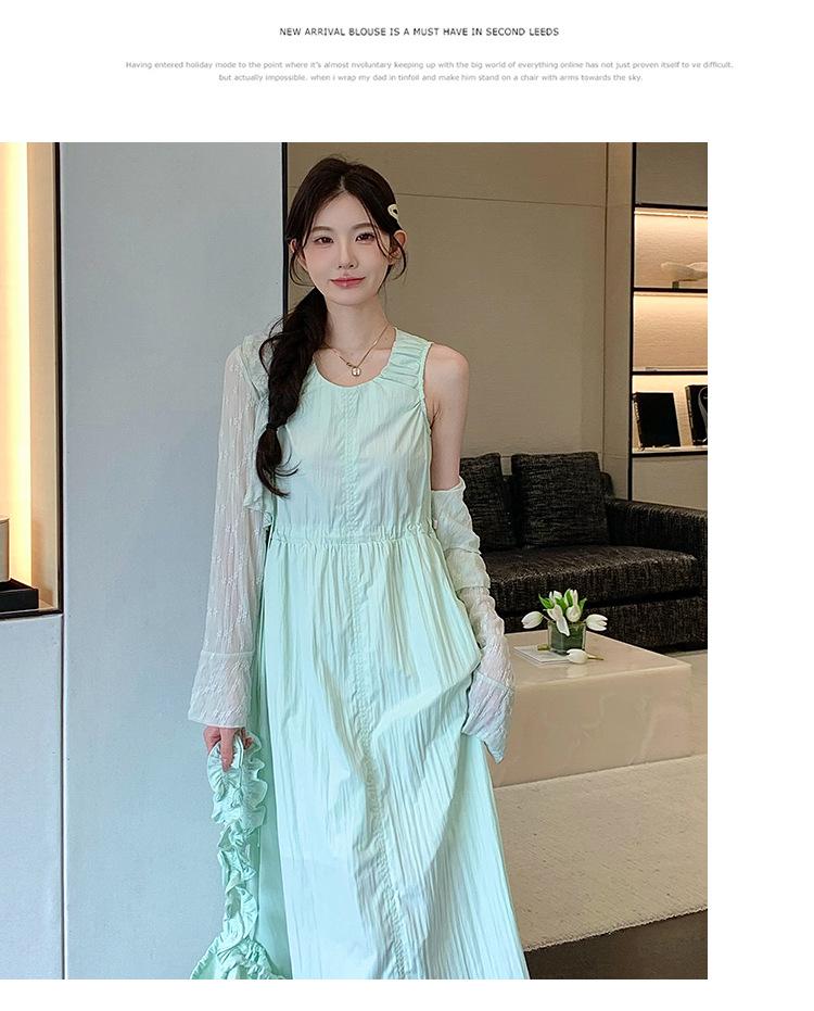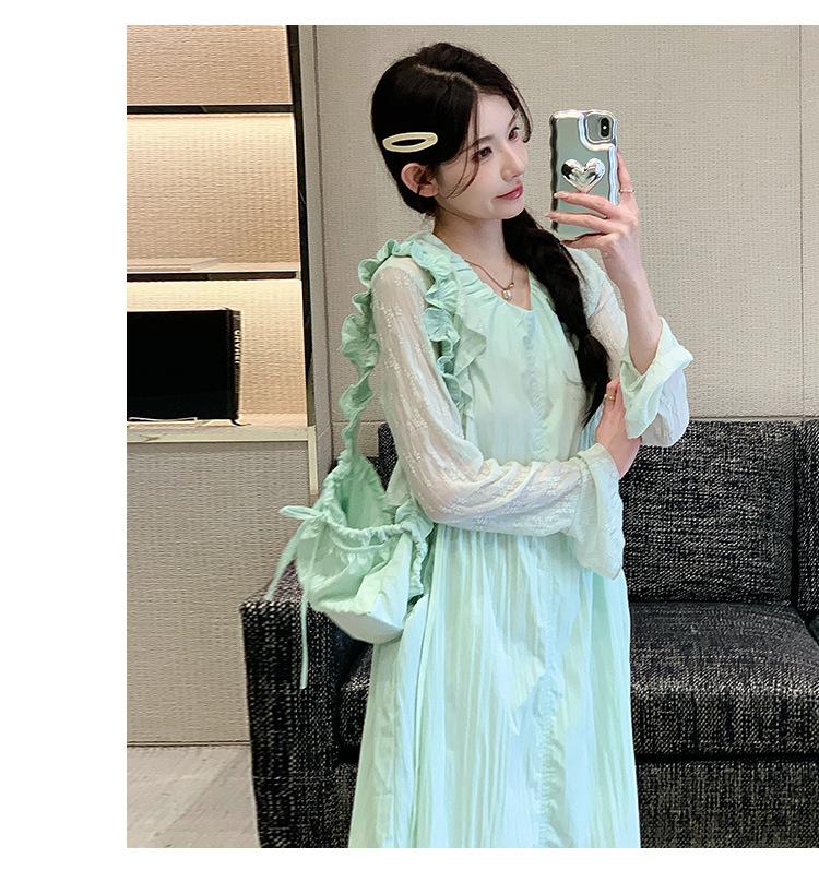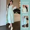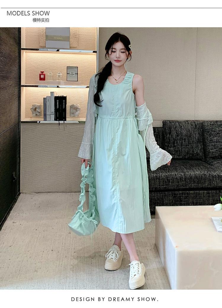 Ropa de Maternidad 2025 Nuevo Verano Dulce Encaje Vestido Chaleco + Cárdigan de Encaje Vestido de Maternidad de Dos Piezas