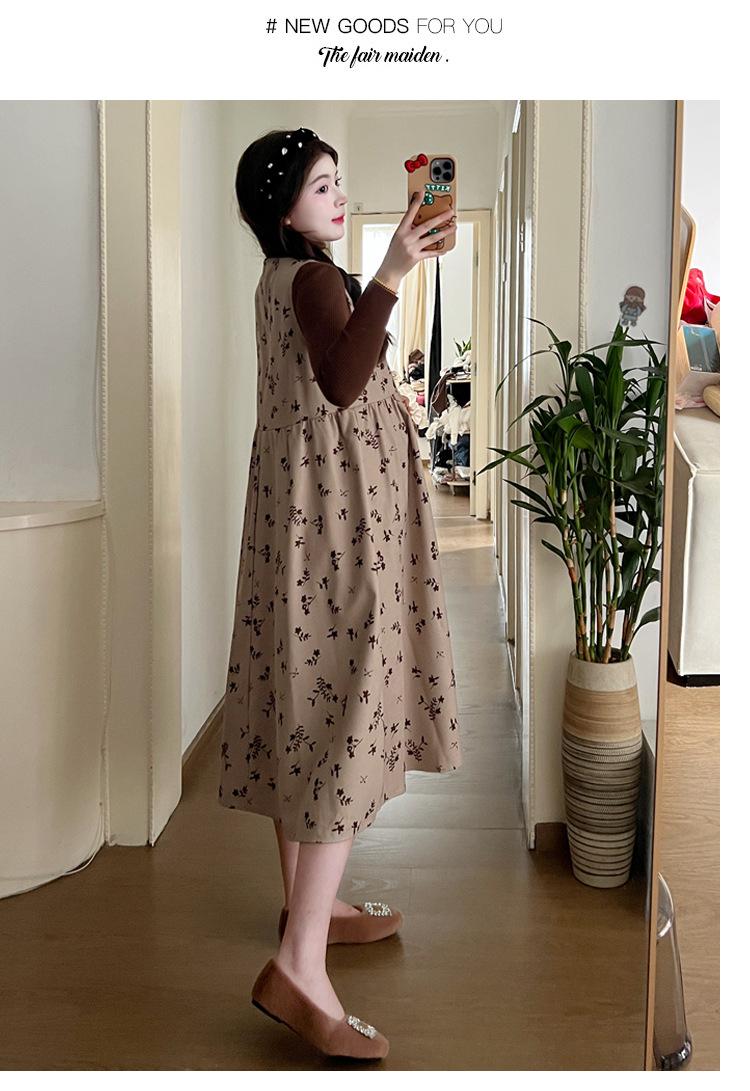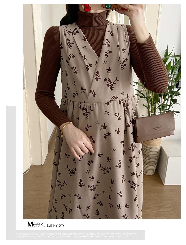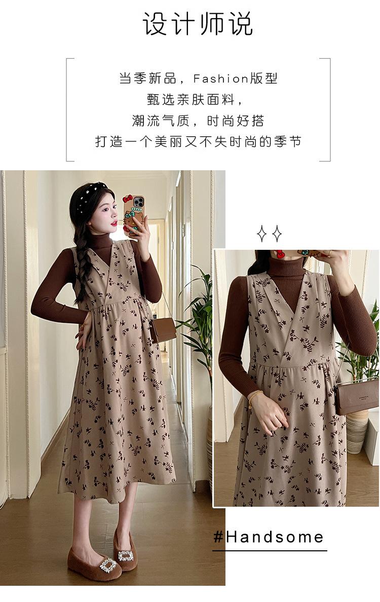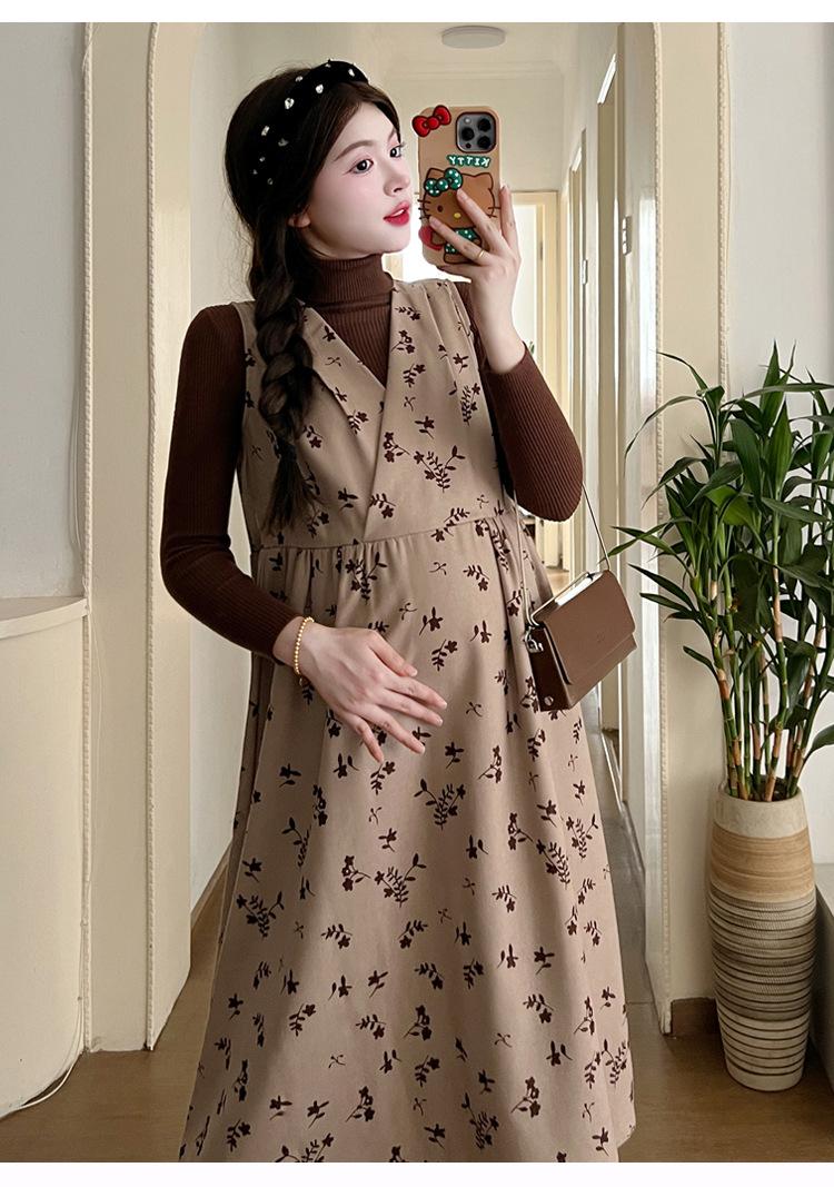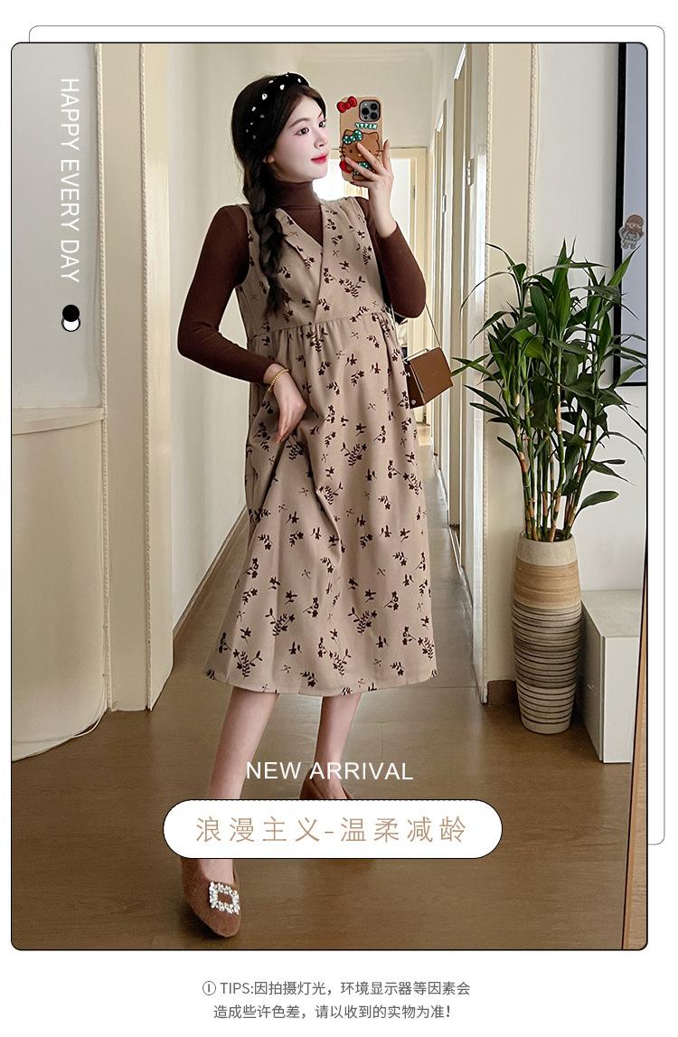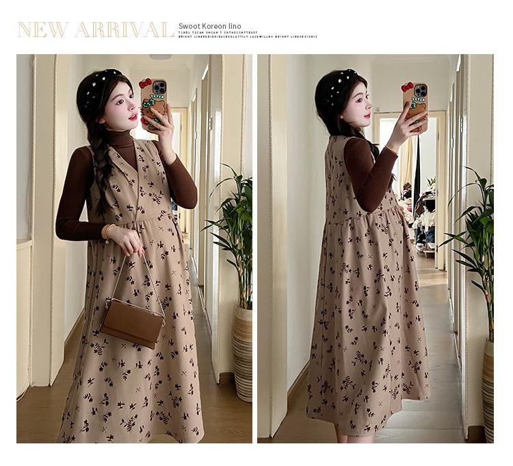 Ropa de maternidad primavera 2024 nuevo suéter de punto camisa de fondo chaleco floral falda conjunto de dos piezas vestido de mujer embarazada