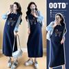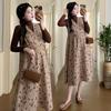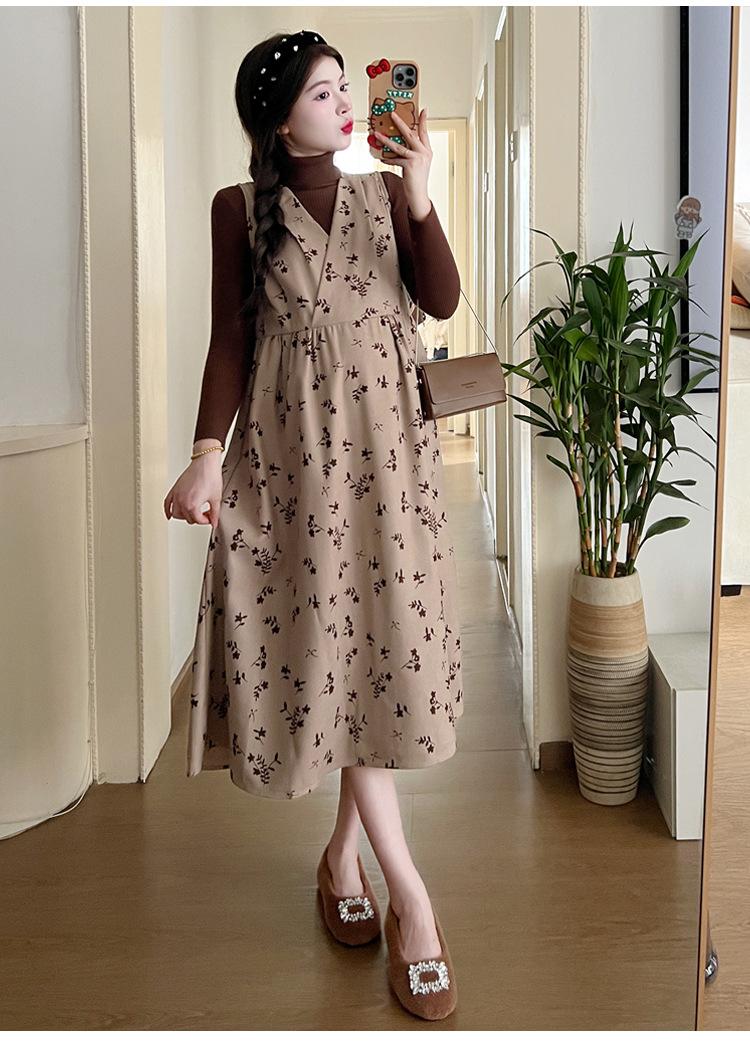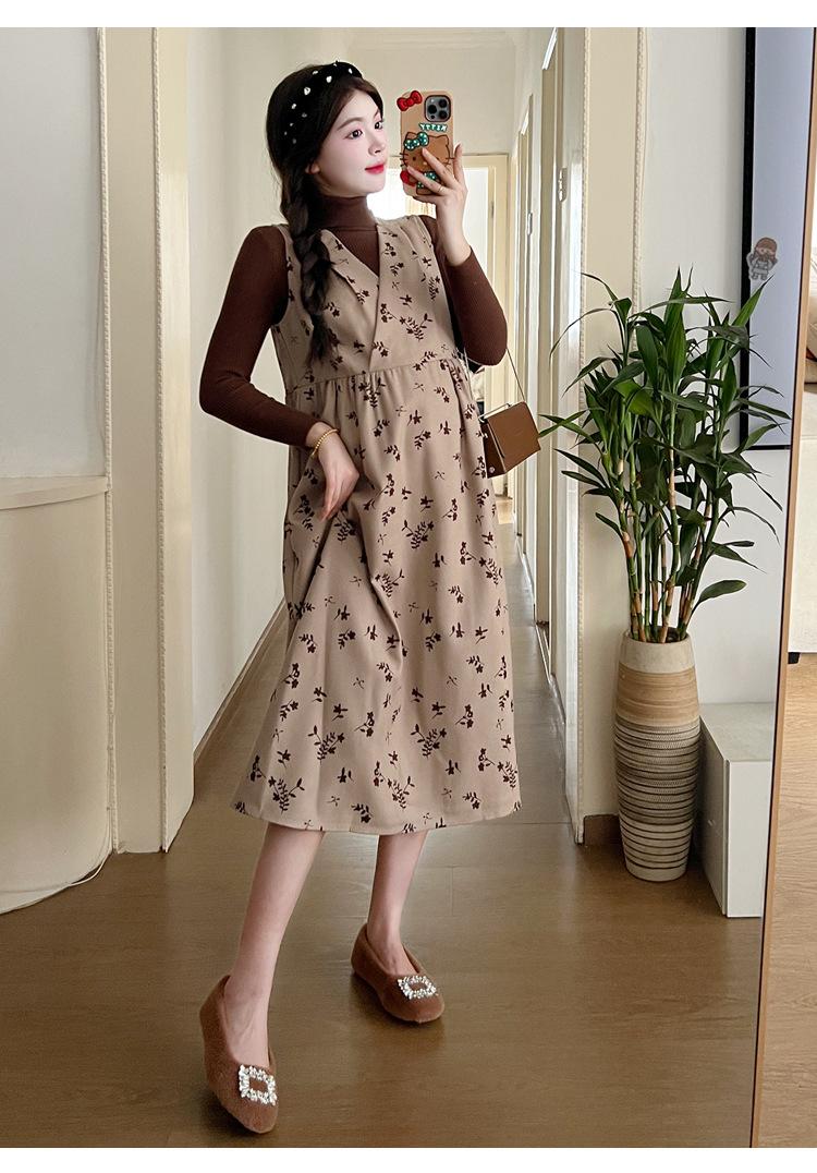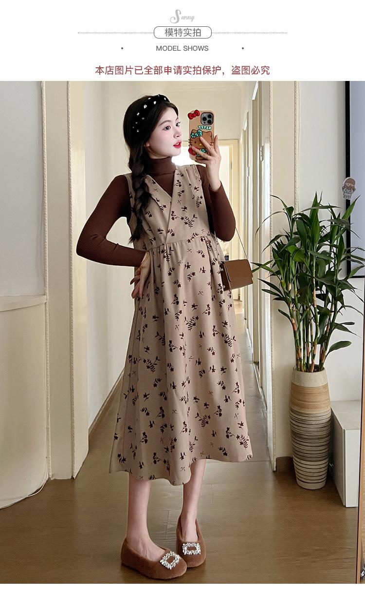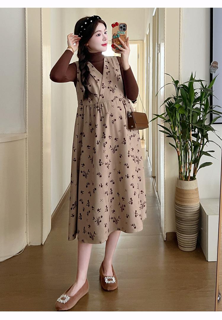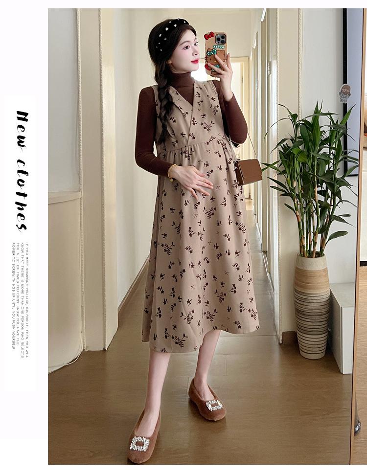 Ropa de maternidad primavera 2024 nuevo suéter de punto camisa de fondo chaleco floral falda conjunto de dos piezas vestido de mujer embarazada