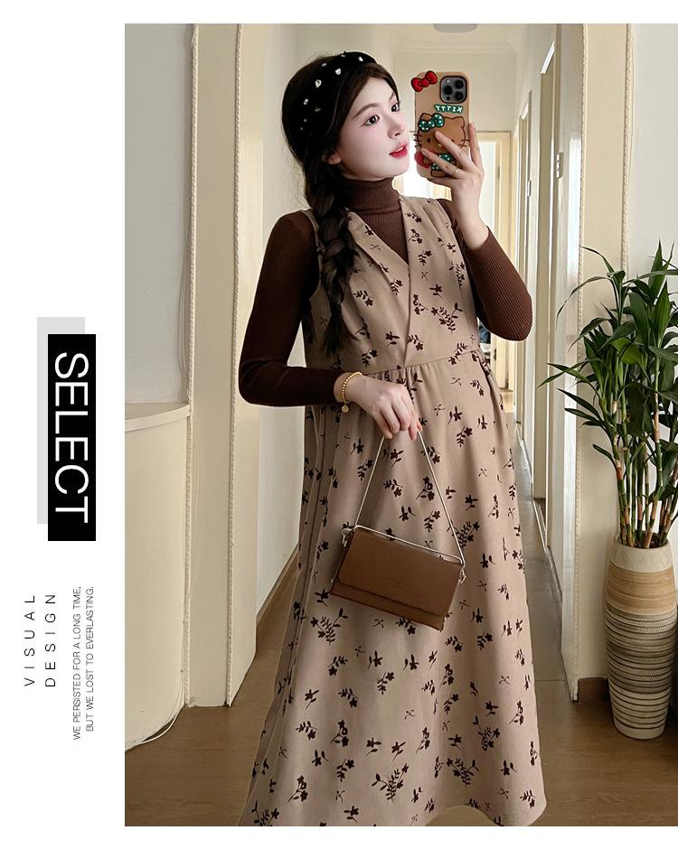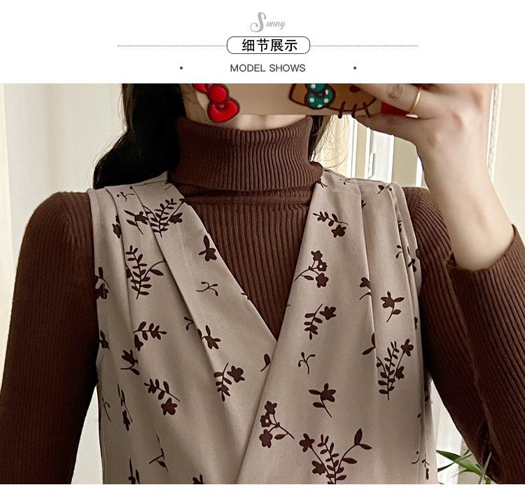 Same bottoming sweater, Floral vest skirt, Sweater Vest skirt suit