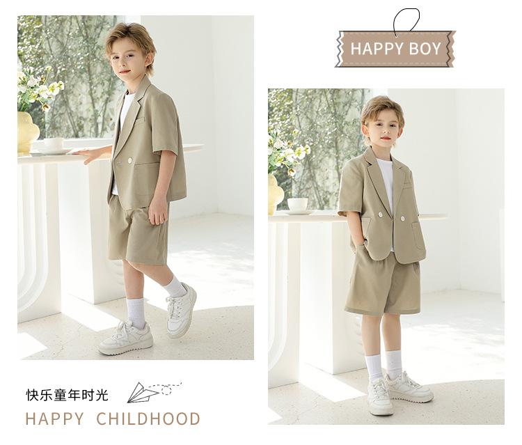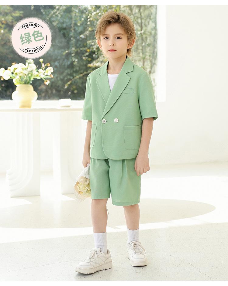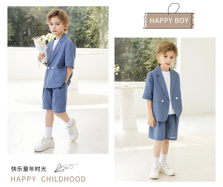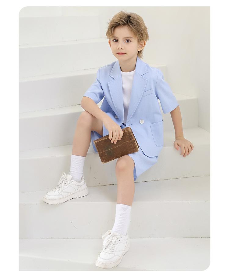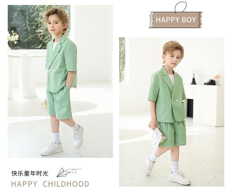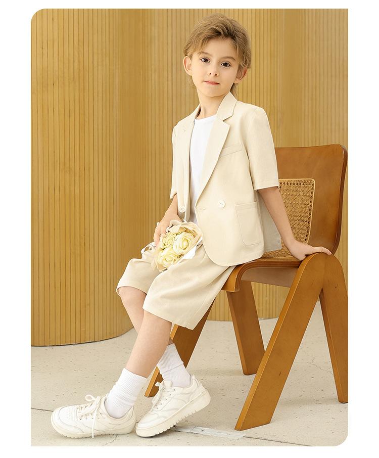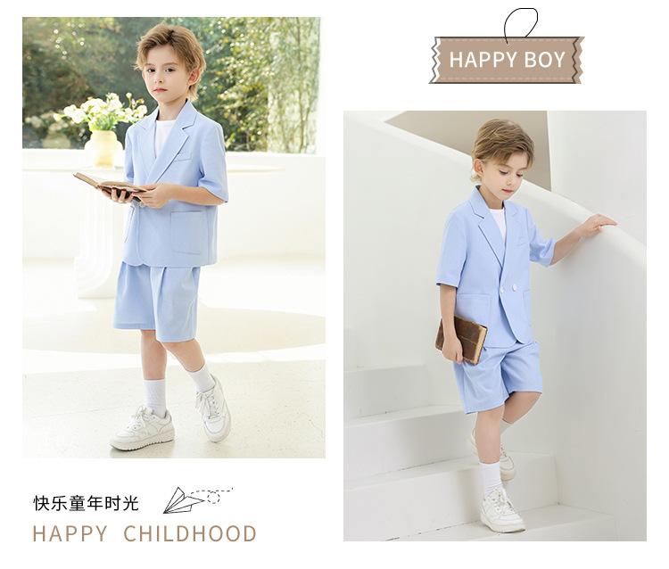 Traje casual para niños, traje casual de verano de manga corta, vestido de primer cumpleaños de niño flor, disfraz de actuación de anfitrión de pasarela para niño
