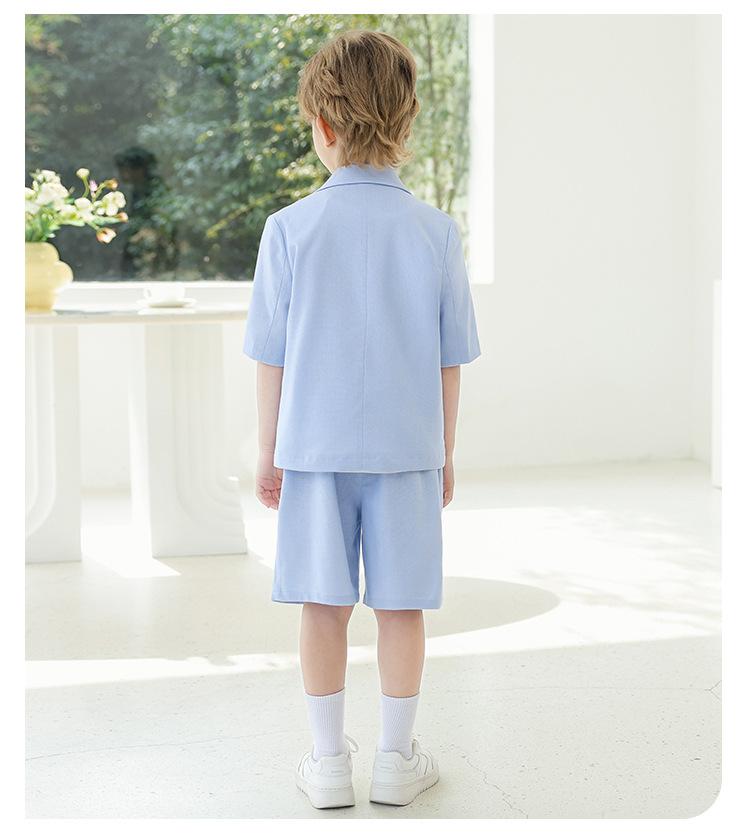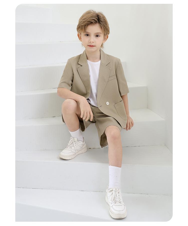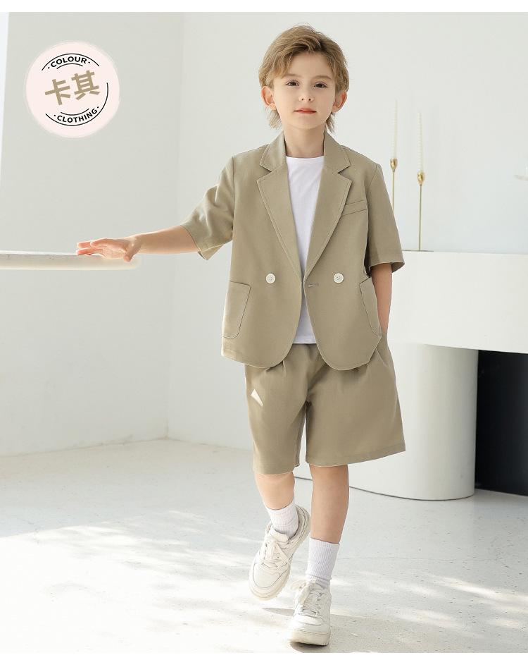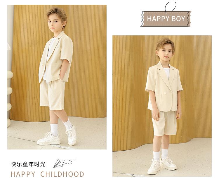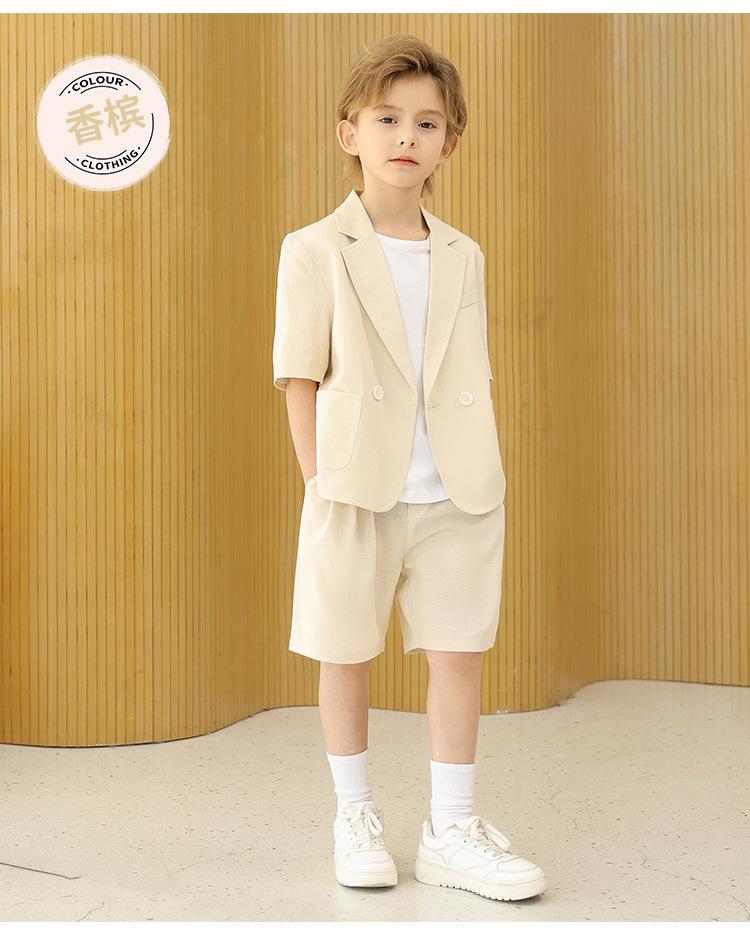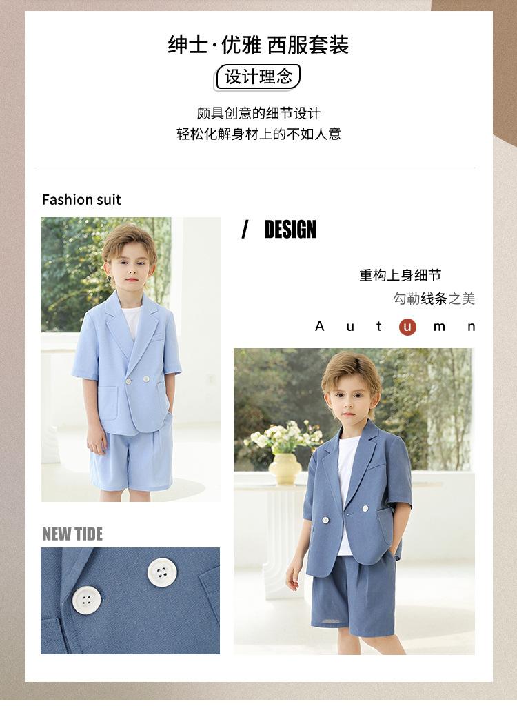 Traje casual para niños, traje casual de verano de manga corta, vestido de primer cumpleaños de niño flor, disfraz de actuación de anfitrión de pasarela para niño