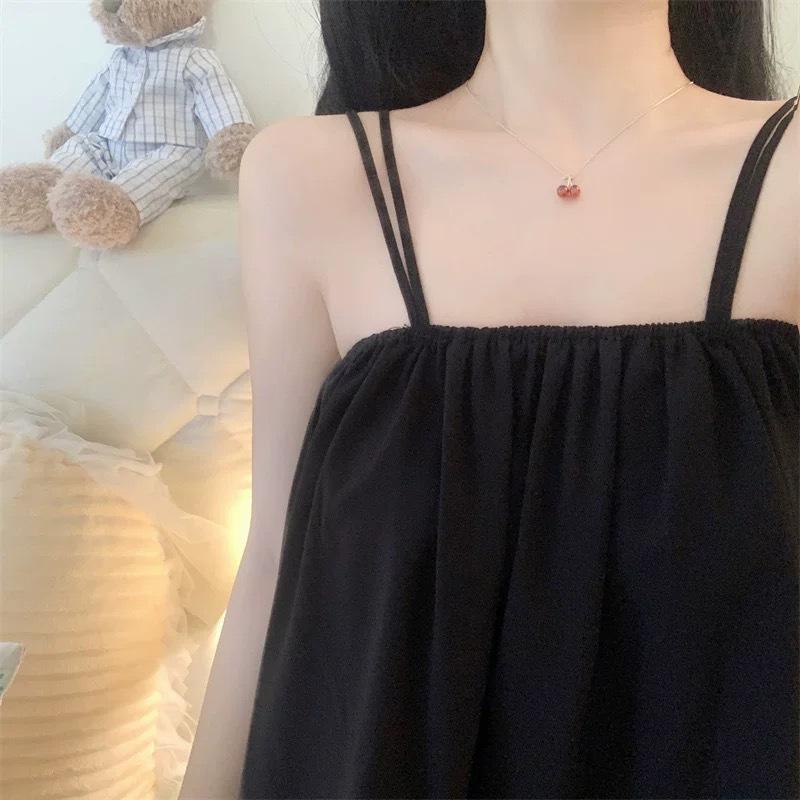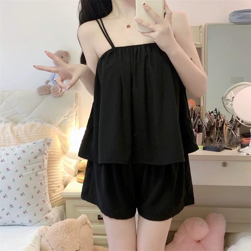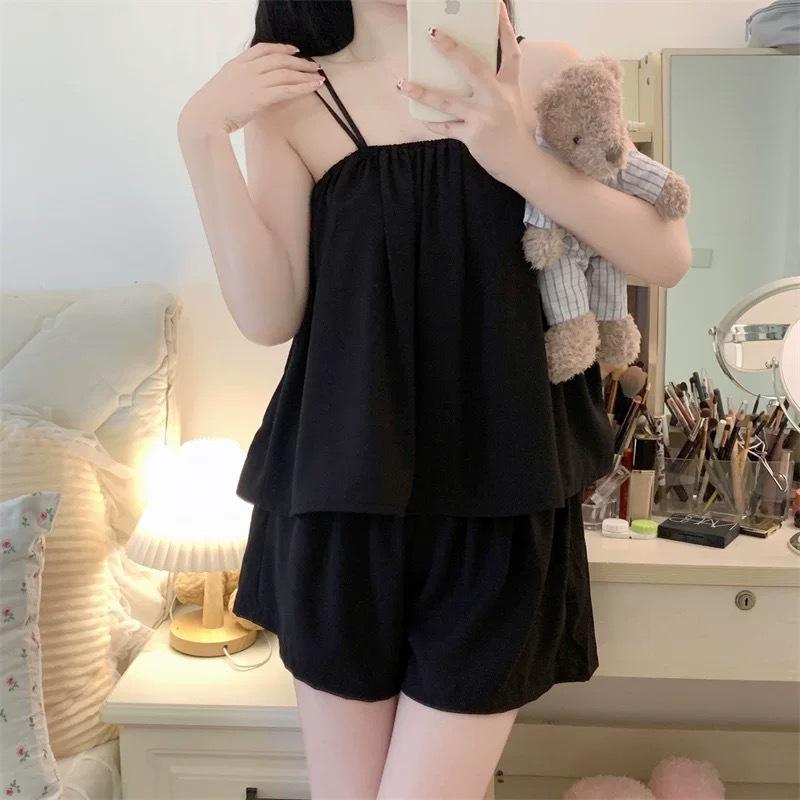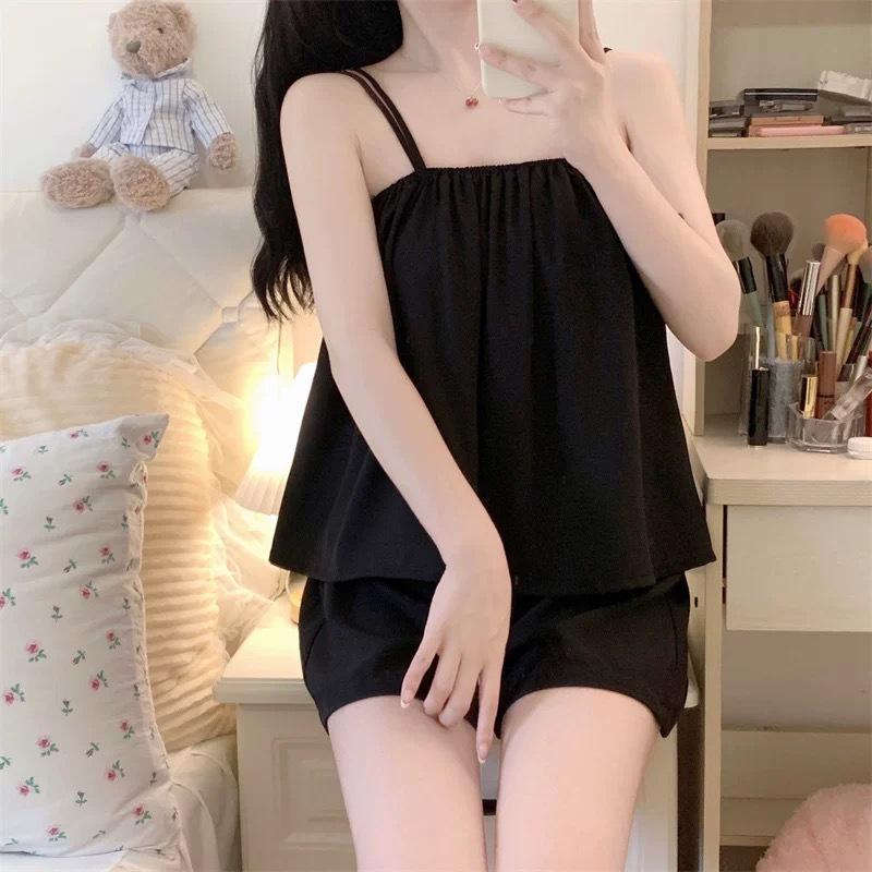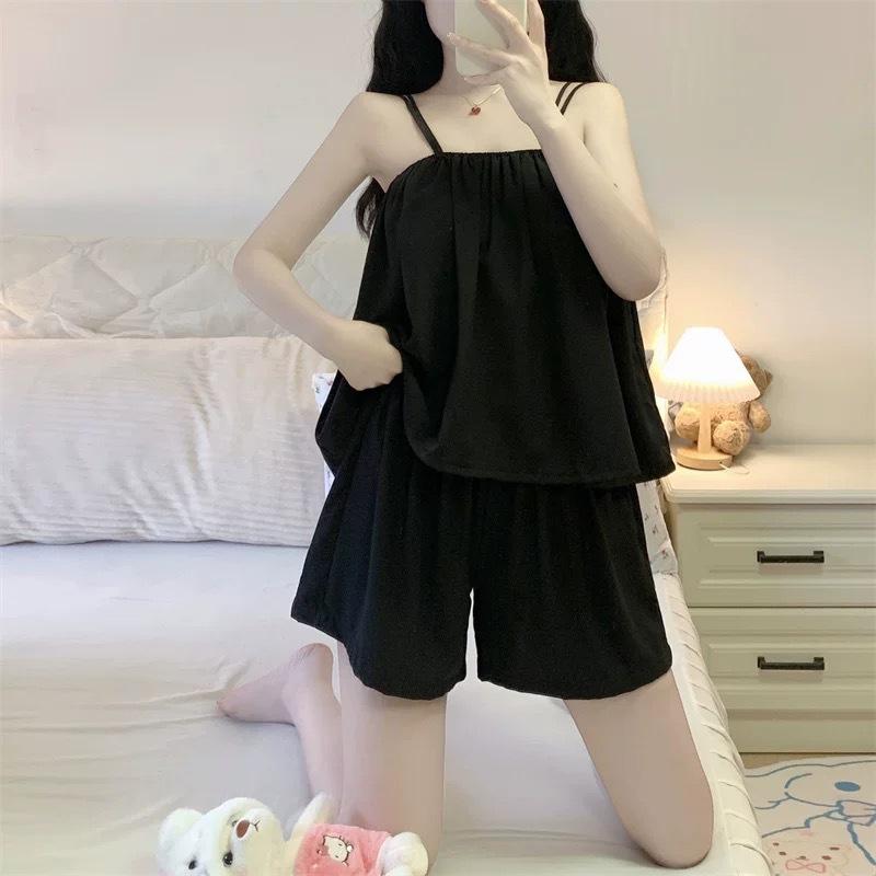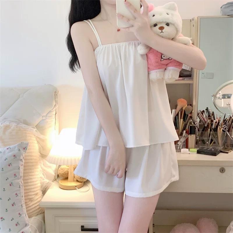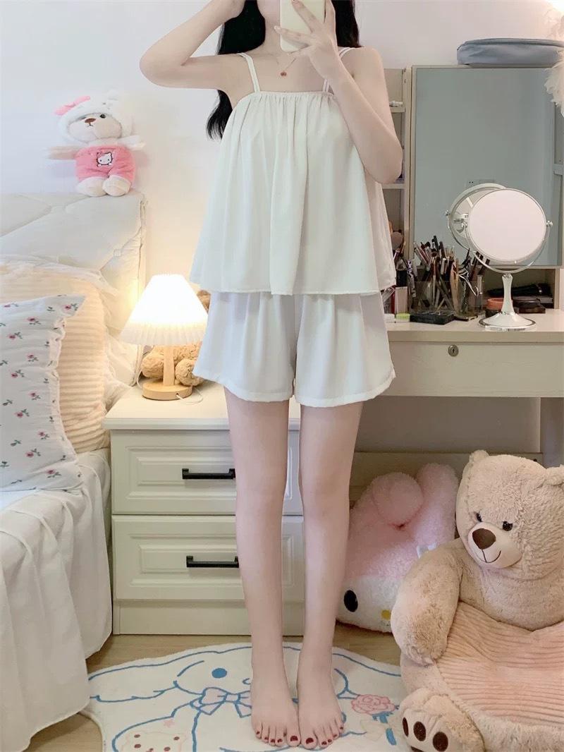 Conjunto de Pijama de Verano Dulce y Fresco Estilo Coreano con Tirantes para Mujer Holgado Color Puro Estilo Ins Dormitorio Pantalones Cortos Exteriores para Uso en Casa