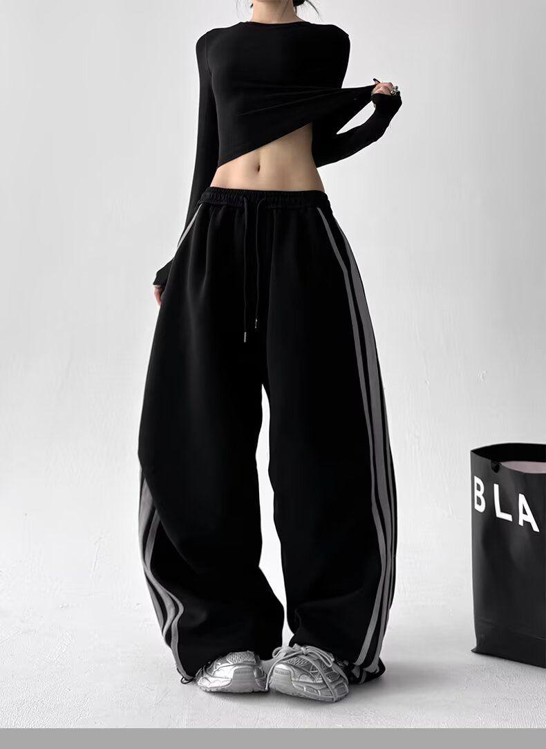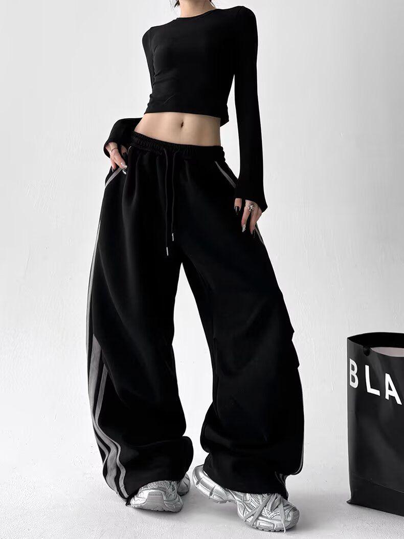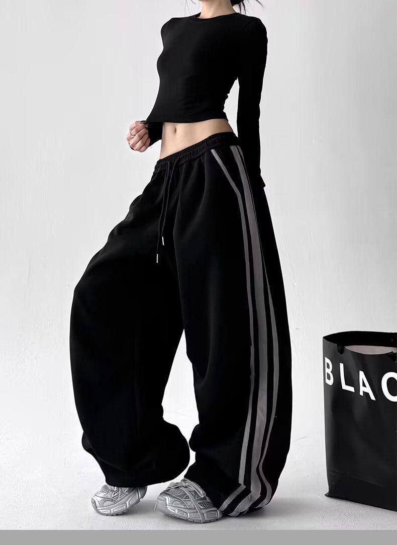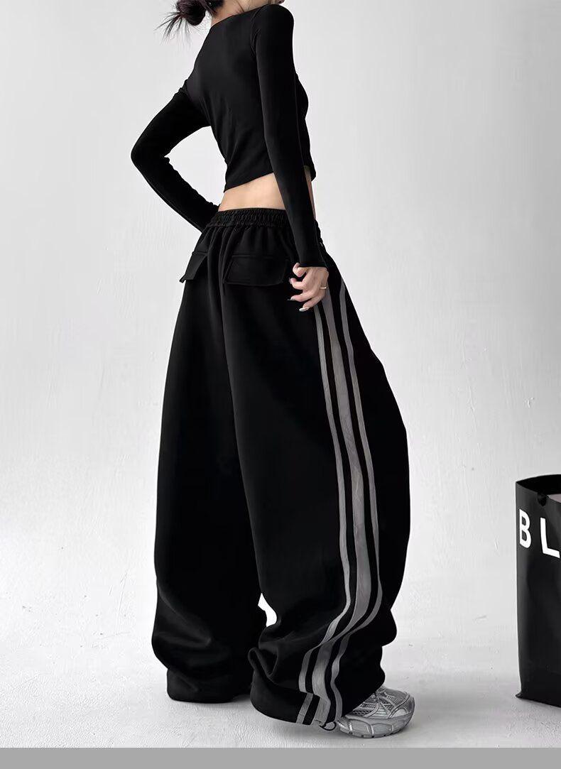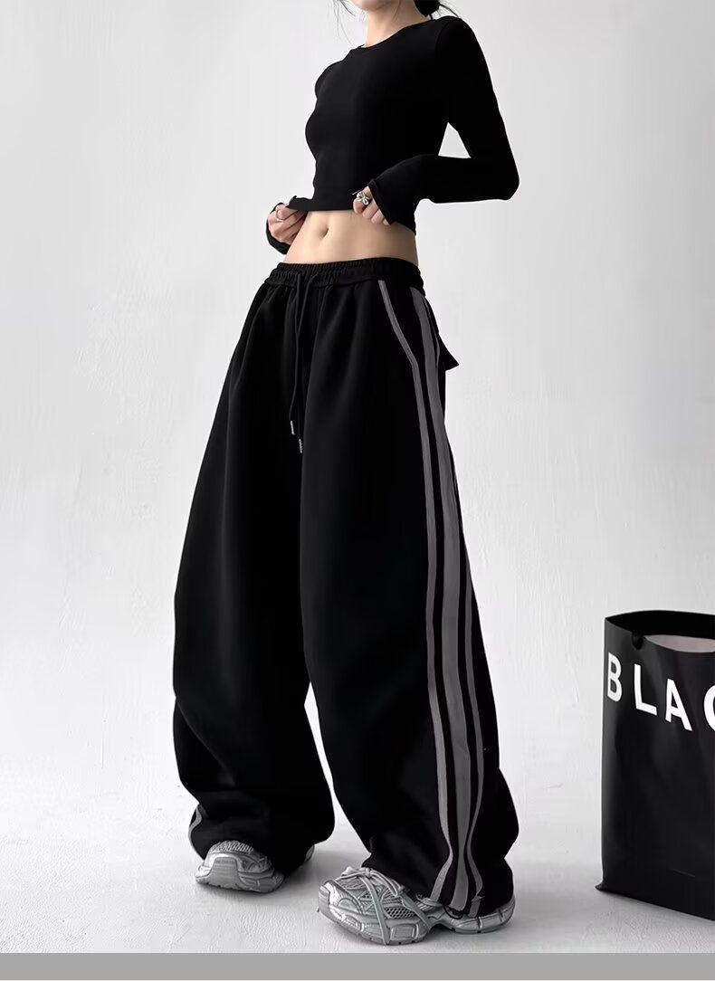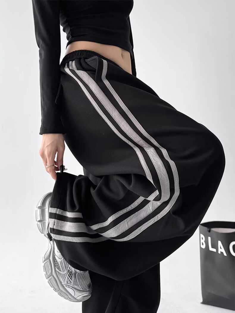 Pantalones Retro Americanos de Tres Rayas para Mujer Hip Hop Street Jazz Dance Raya Lateral Deportivos Pantalones de Sudor Pierna Recta Casuales