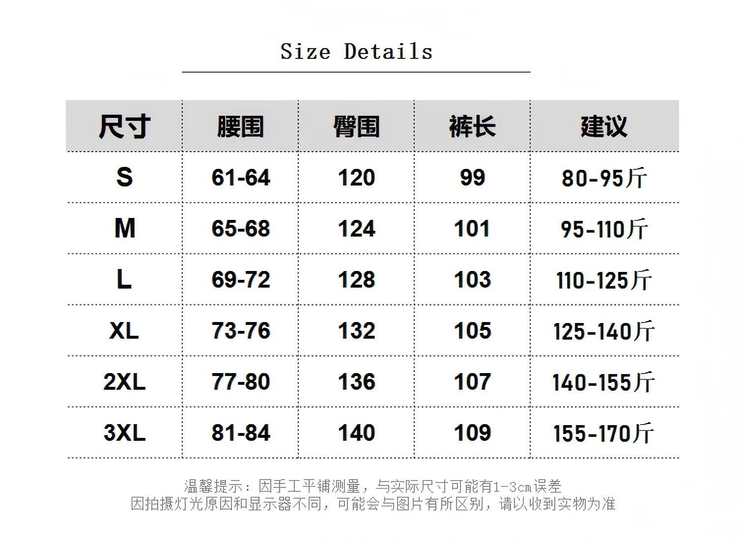 S, M, L, XL, 2XL, 3XL