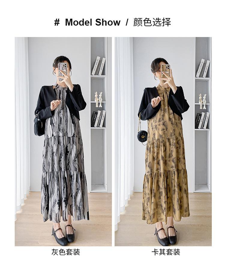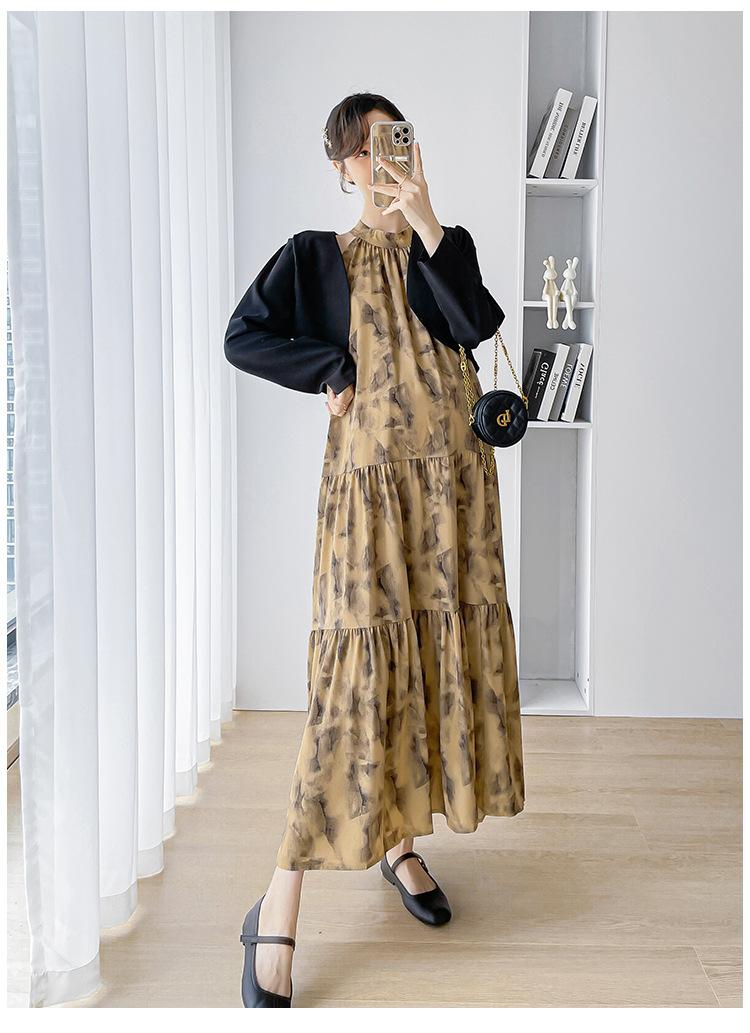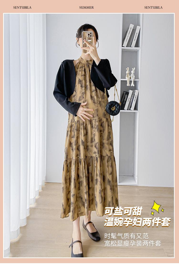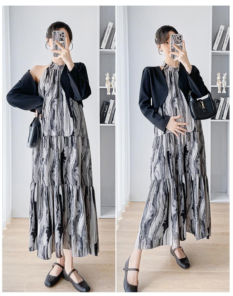 Vestido de maternidad 2024 primavera nuevo vestido halter con tirantes ajustables para el hombro chal vestido de maternidad de dos piezas