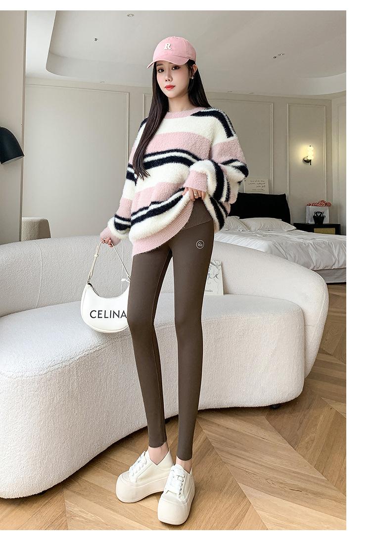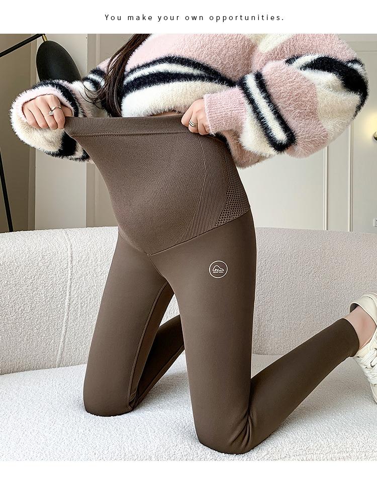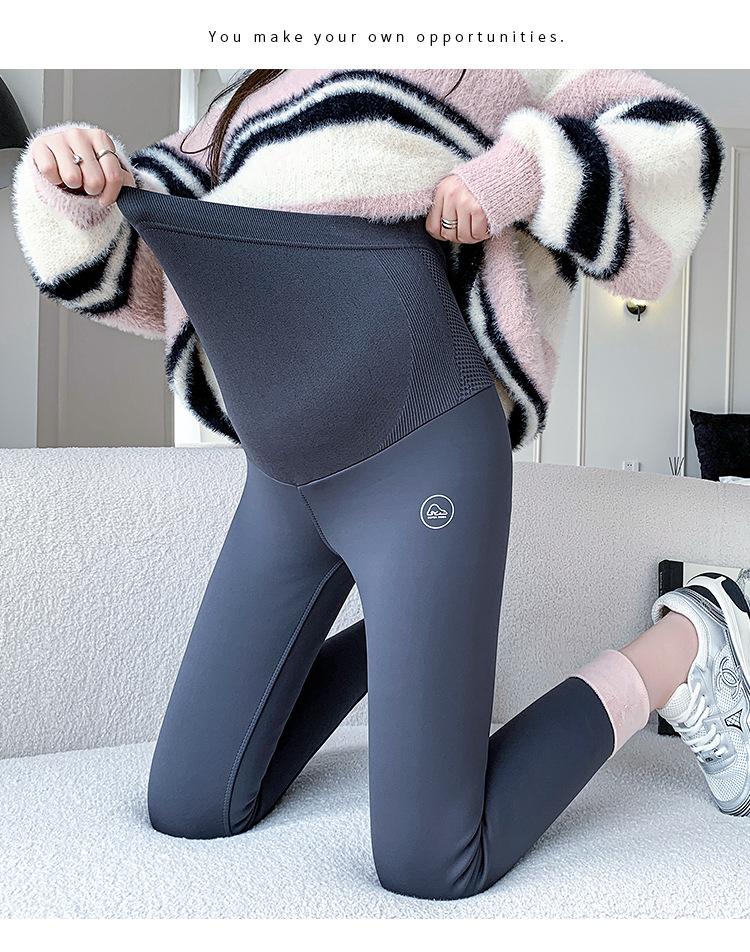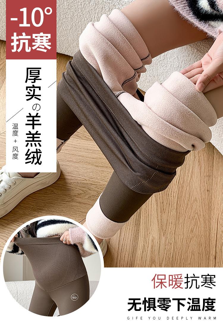Pantalones de maternidad 2024 piel de tiburón otoño e invierno leggings gruesos forrados de vellón pantalones de yoga ropa exterior lana de cordero pantalones Barbie