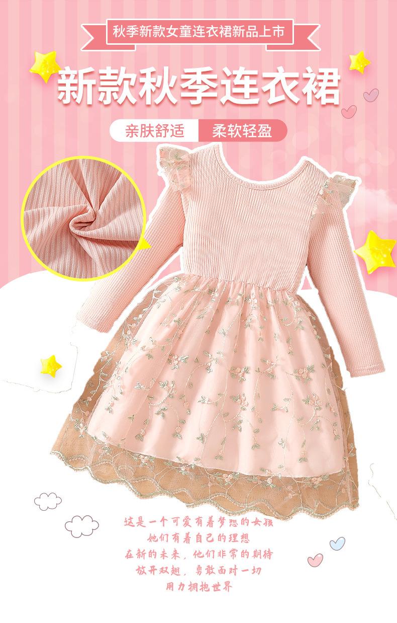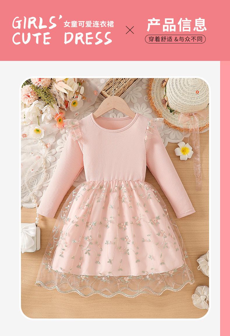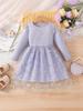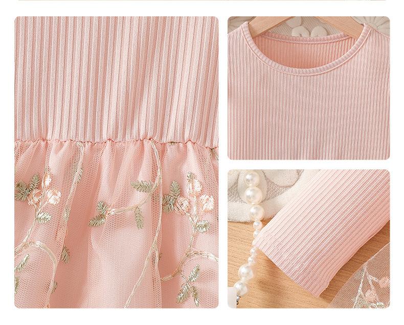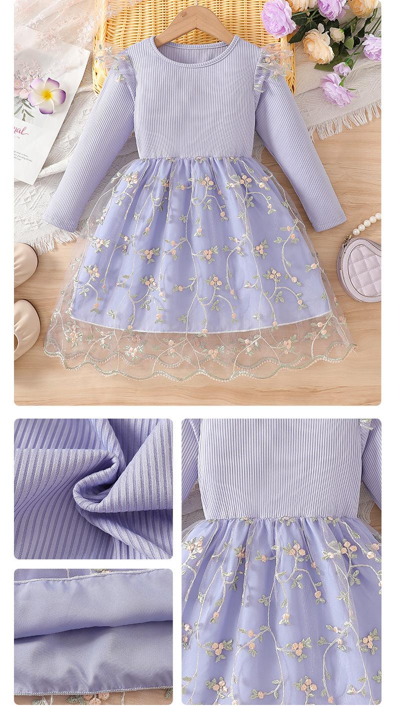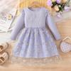 Comercio Exterior INS Vestido de Princesa de Primavera y Otoño para Niñas con Volantes Vestido Infantil de Manga Larga de Malla Floral con Parches