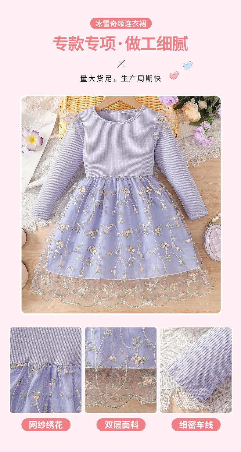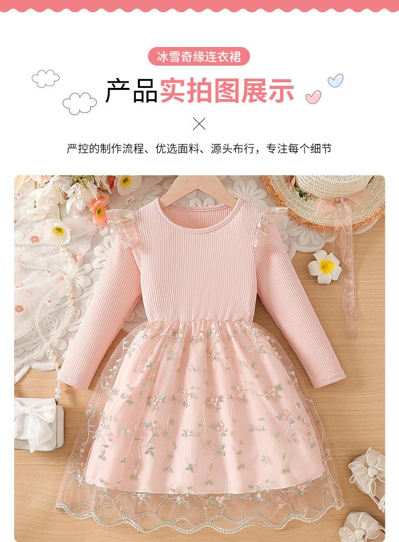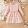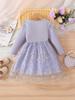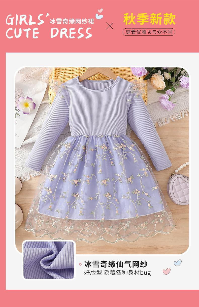 Comercio Exterior INS Vestido de Princesa de Primavera y Otoño para Niñas con Volantes Vestido Infantil de Manga Larga de Malla Floral con Parches