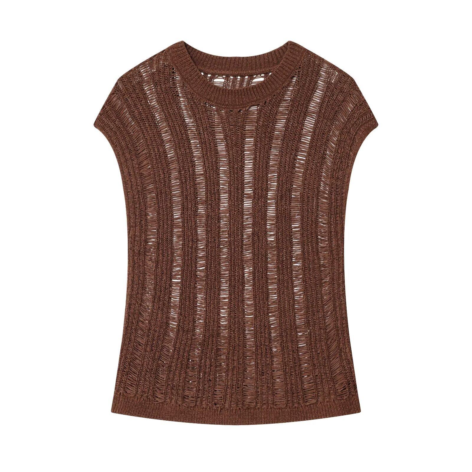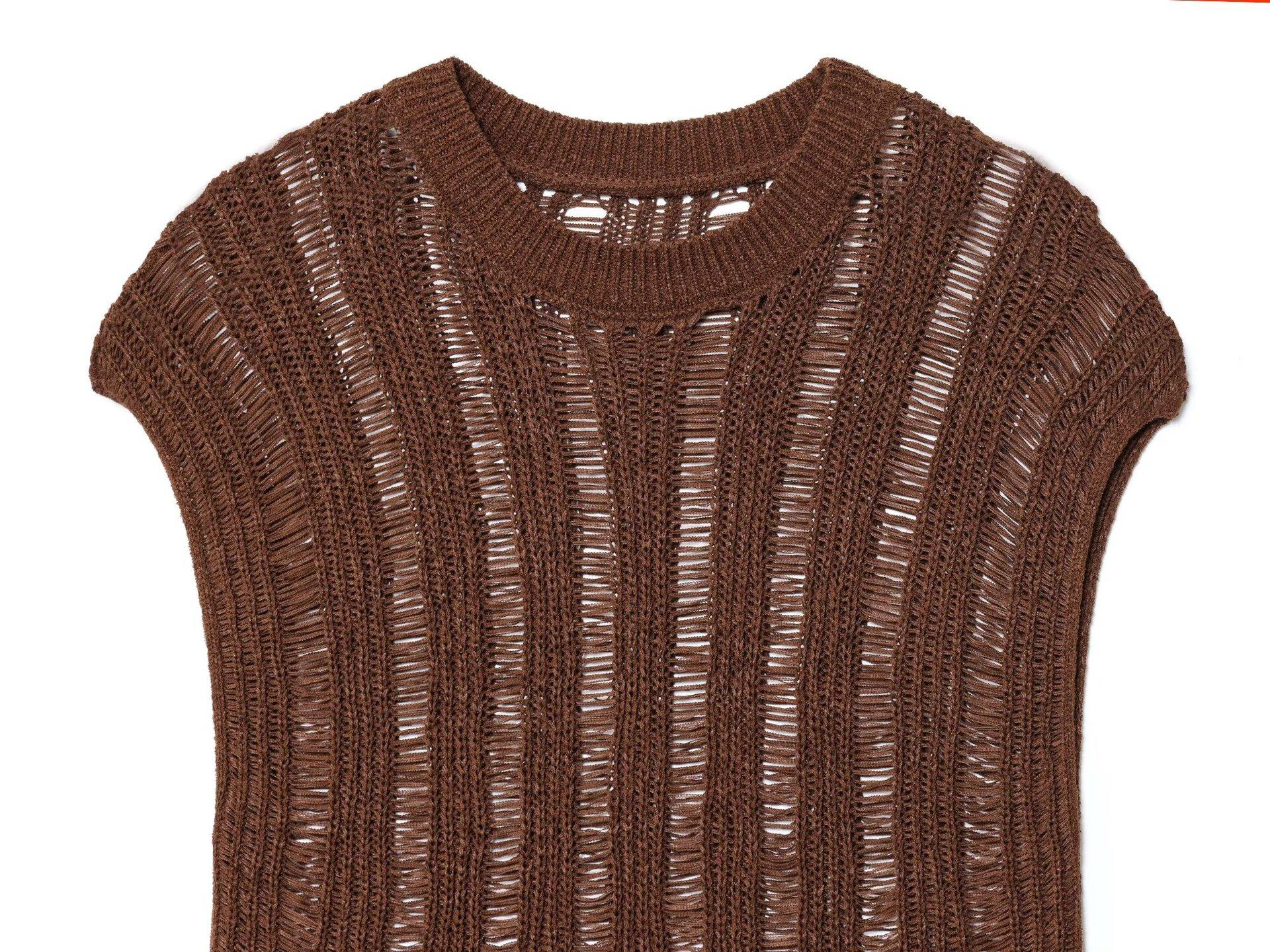 Transfronterizo Europa y América AliExpress Estilo Caliente Moda Europea y Americana Jersey de Punto sin Mangas con Cuello Redondo