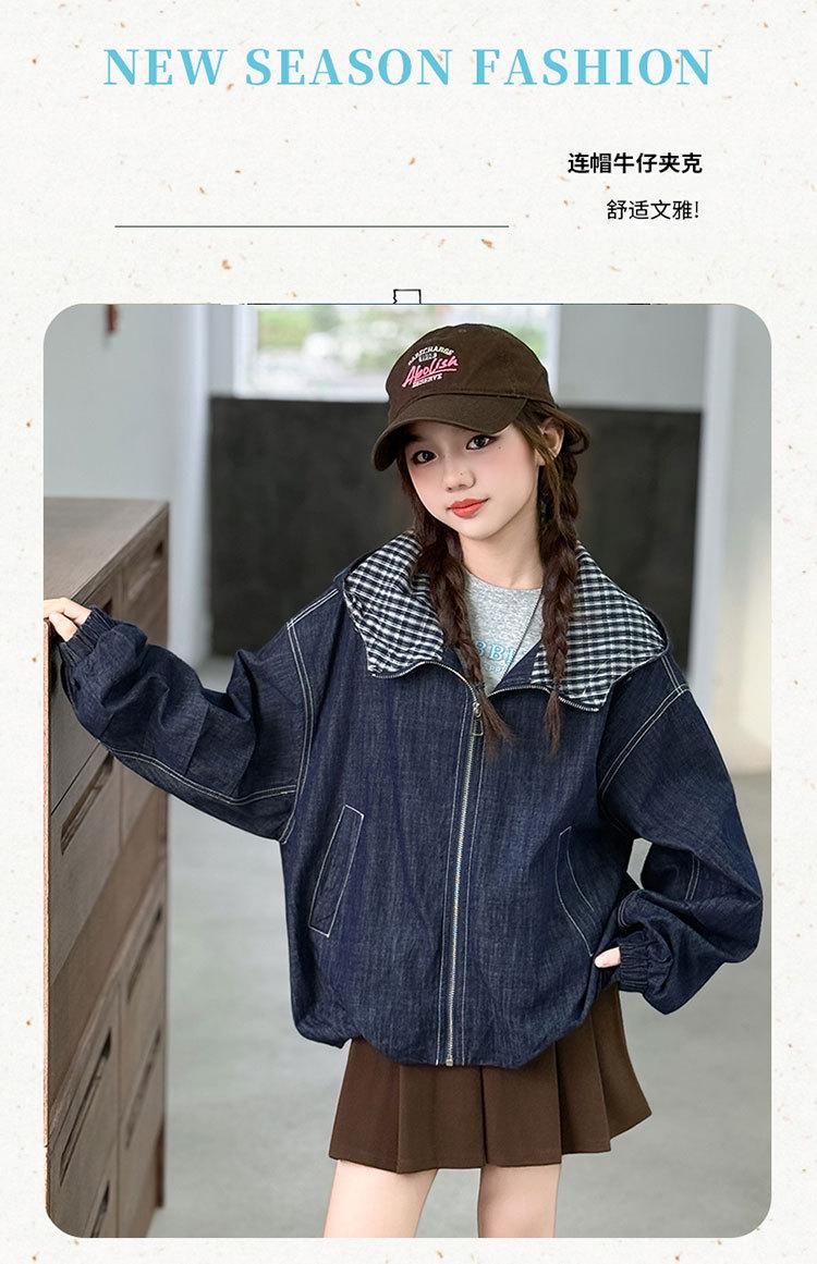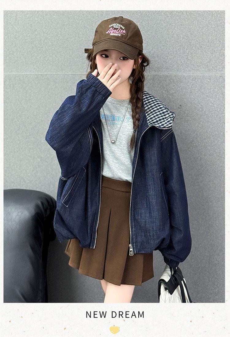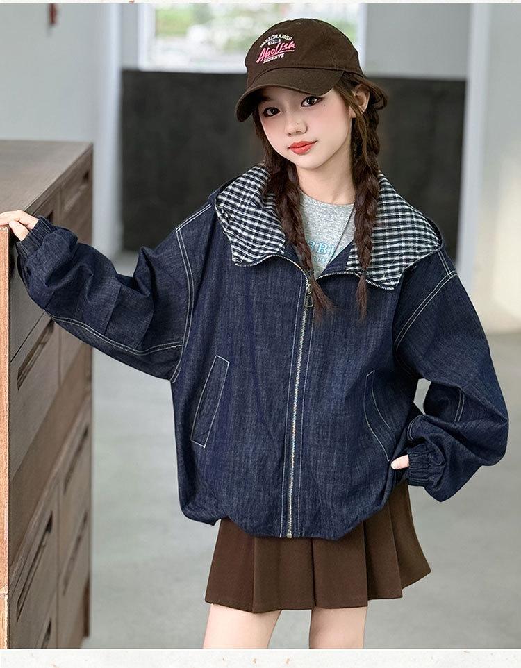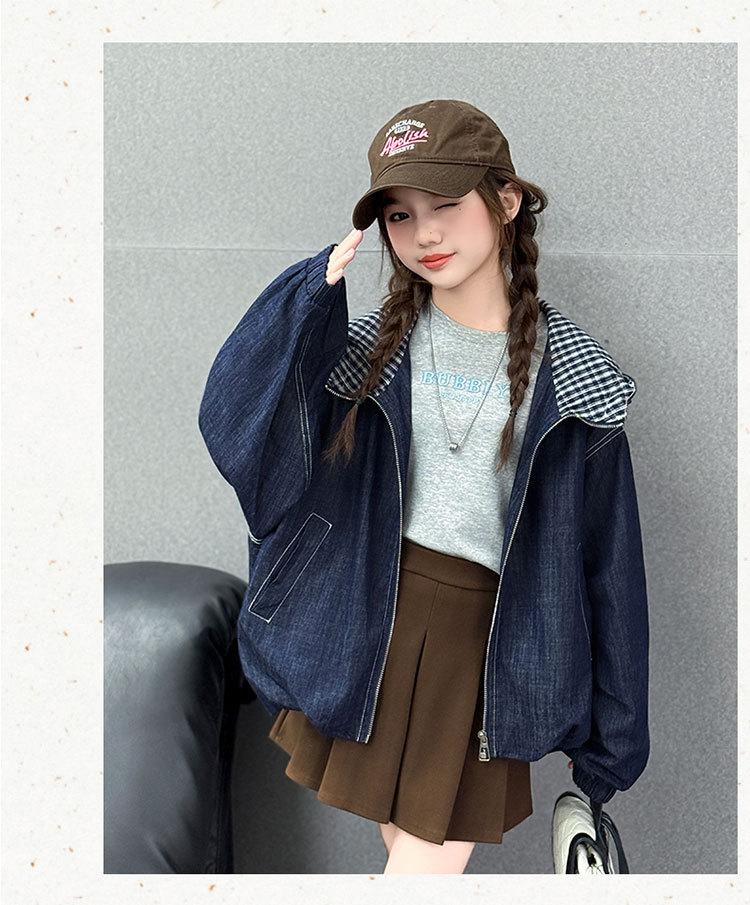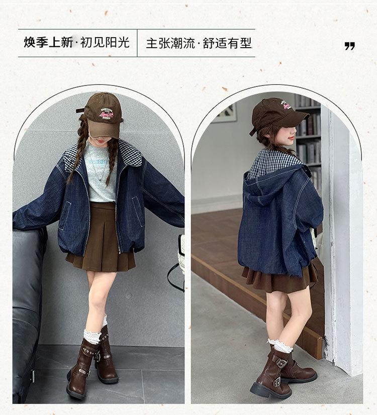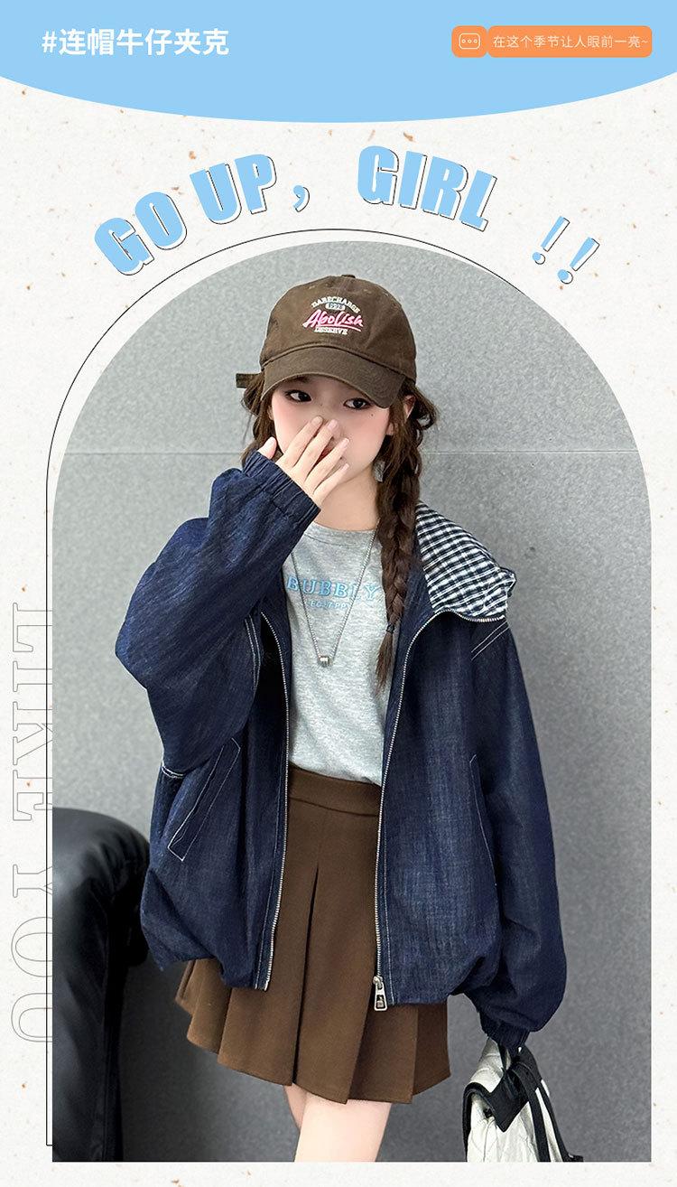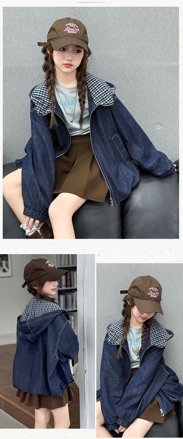 Chaqueta de mezclilla para niña 2025 Nuevo estilo infantil de primavera y otoño Top de estilo extranjero Ropa de otoño moderna Niños medianos y grandes Chaqueta con capucha