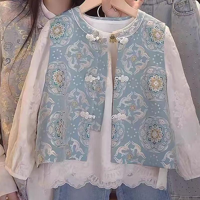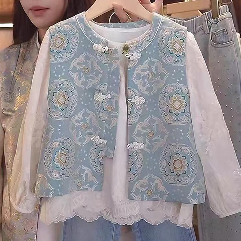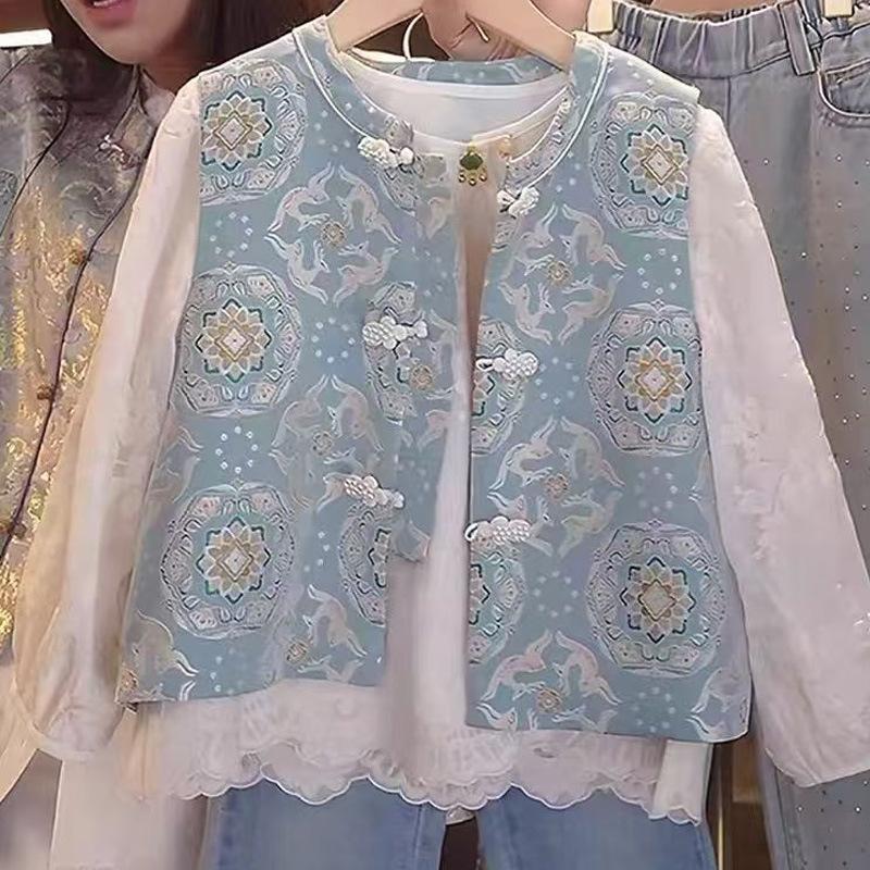 Chaleco chino nuevo para niñas Primavera y Otoño 2025 Nuevo estilo occidental Chaleco de estilo nacional para niños Chaleco jacquard con botones para niñas