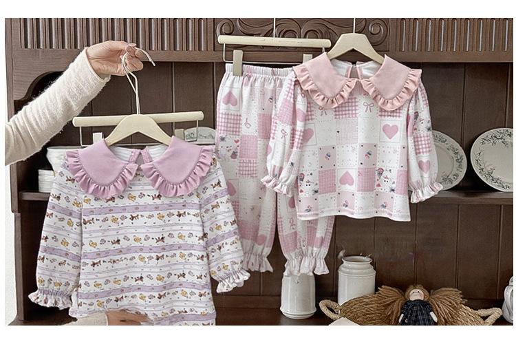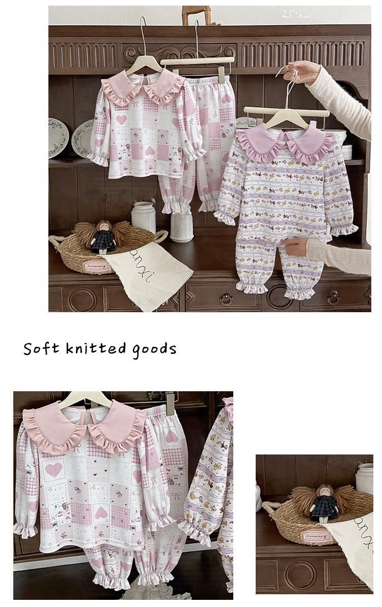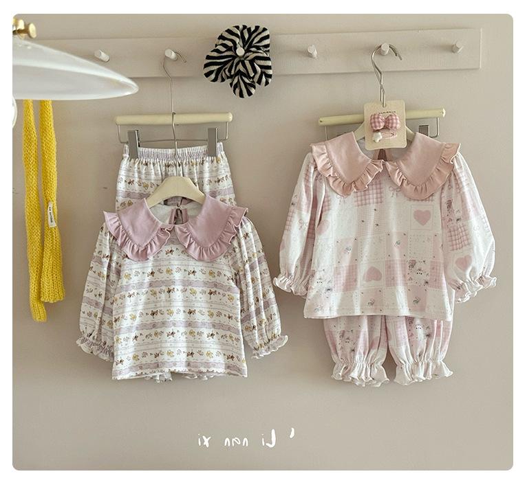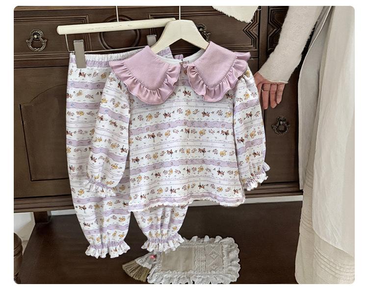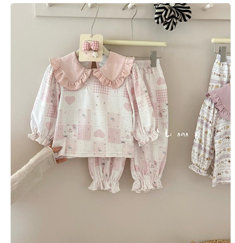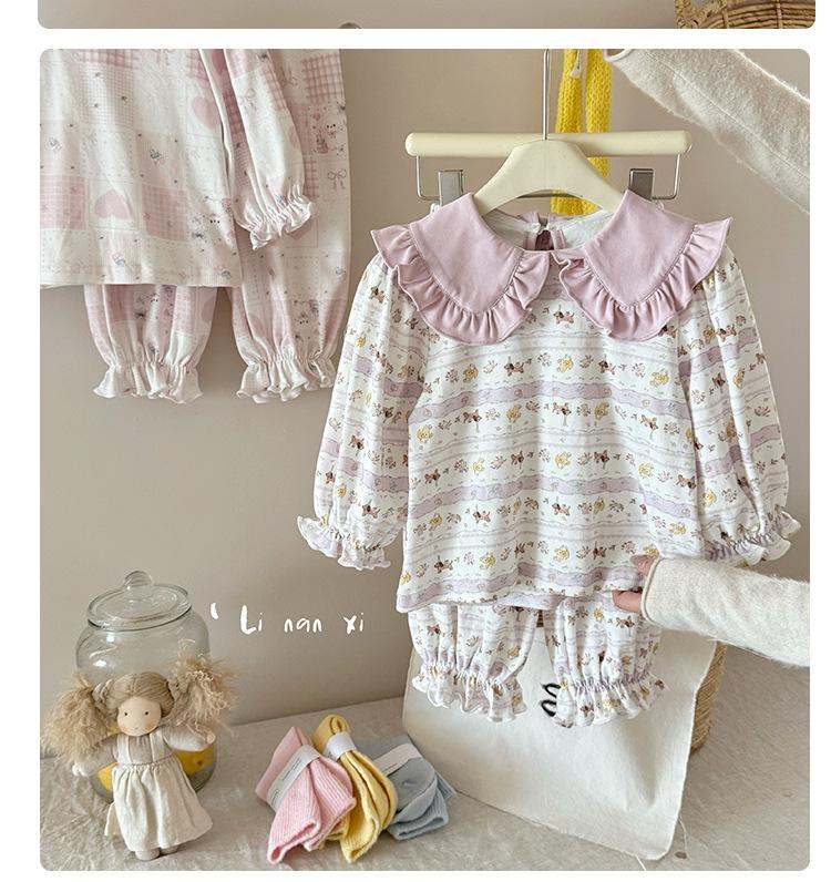 88268 Conjunto de Pijama de Otoño para Niñas 2025 Nuevo Conjunto de Ropa de Otoño para Bebé Algodón Pijama para Niños Medianos y Pequeños Ropa para el Hogar