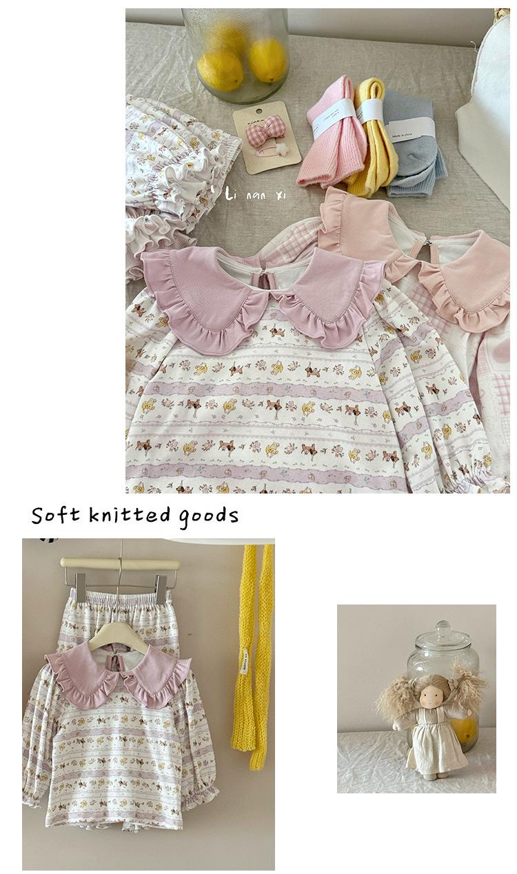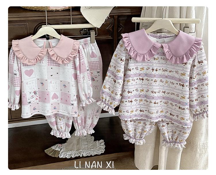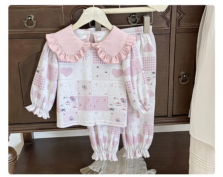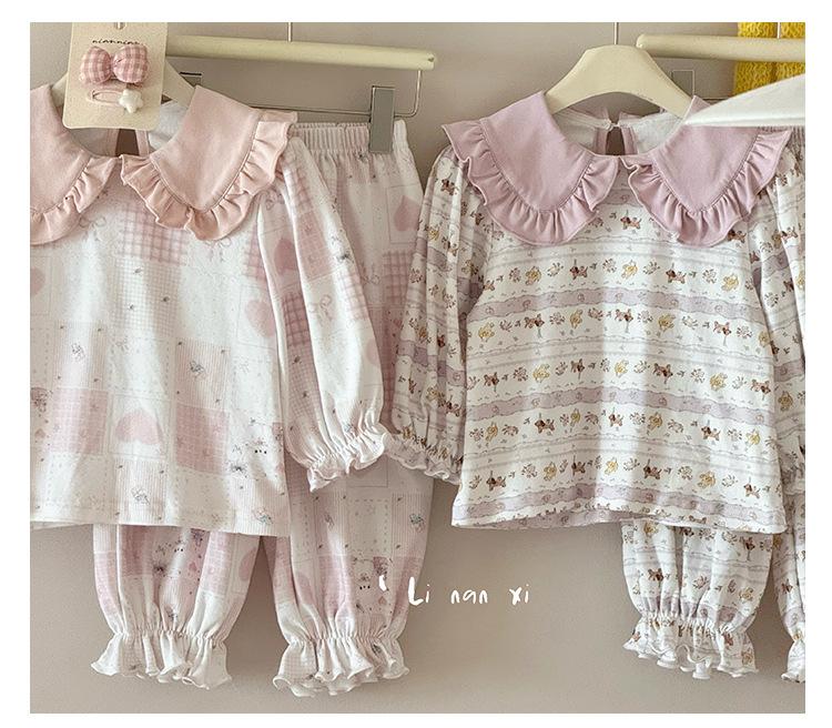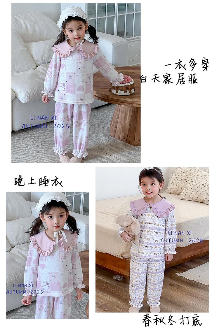 88268 Conjunto de Pijama de Otoño para Niñas 2025 Nuevo Conjunto de Ropa de Otoño para Bebé Algodón Pijama para Niños Medianos y Pequeños Ropa para el Hogar