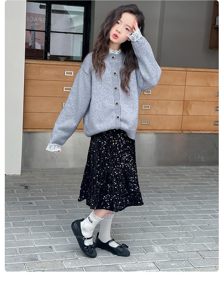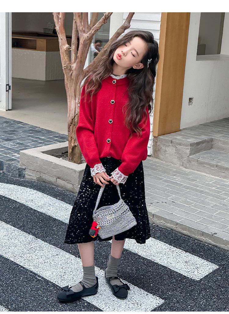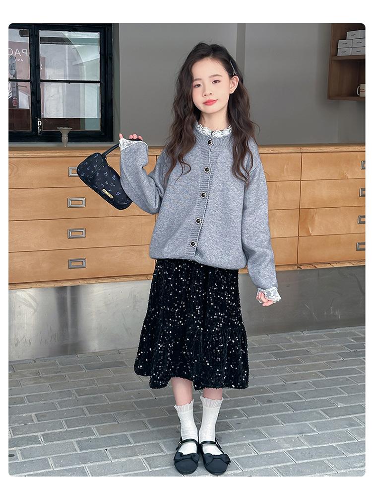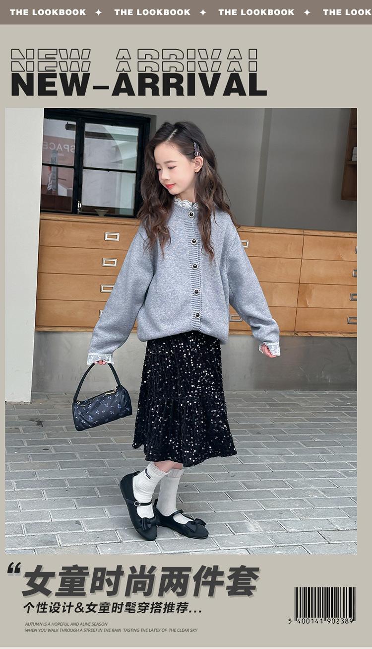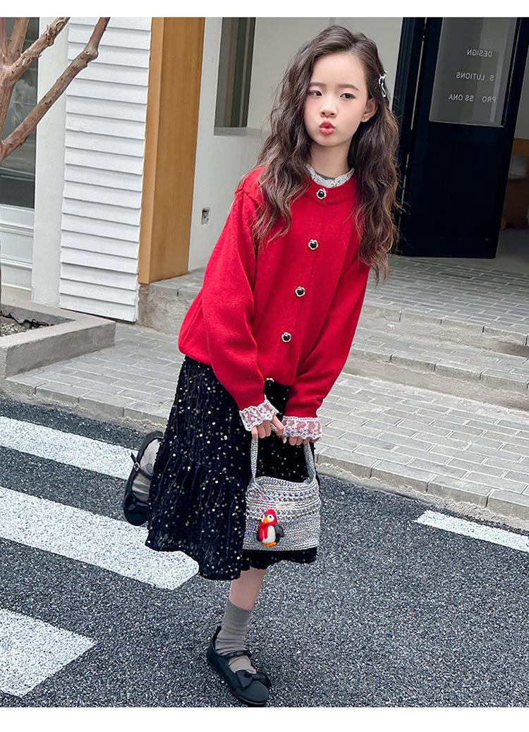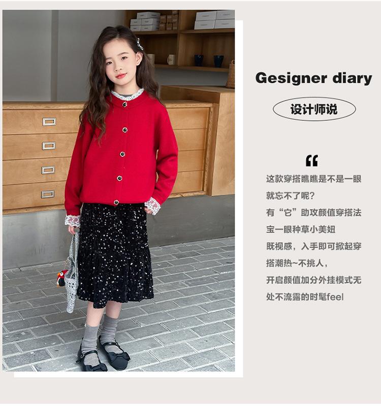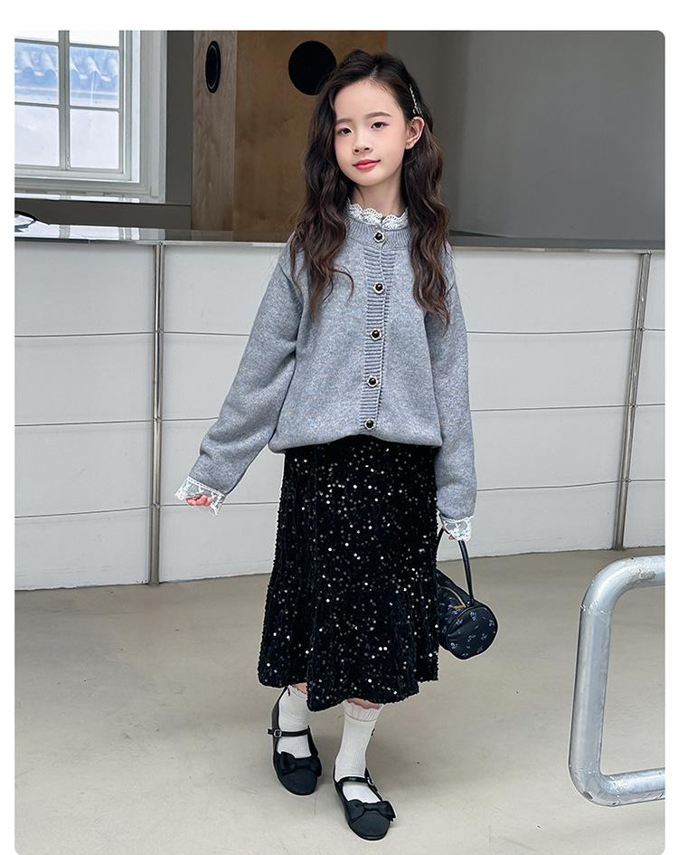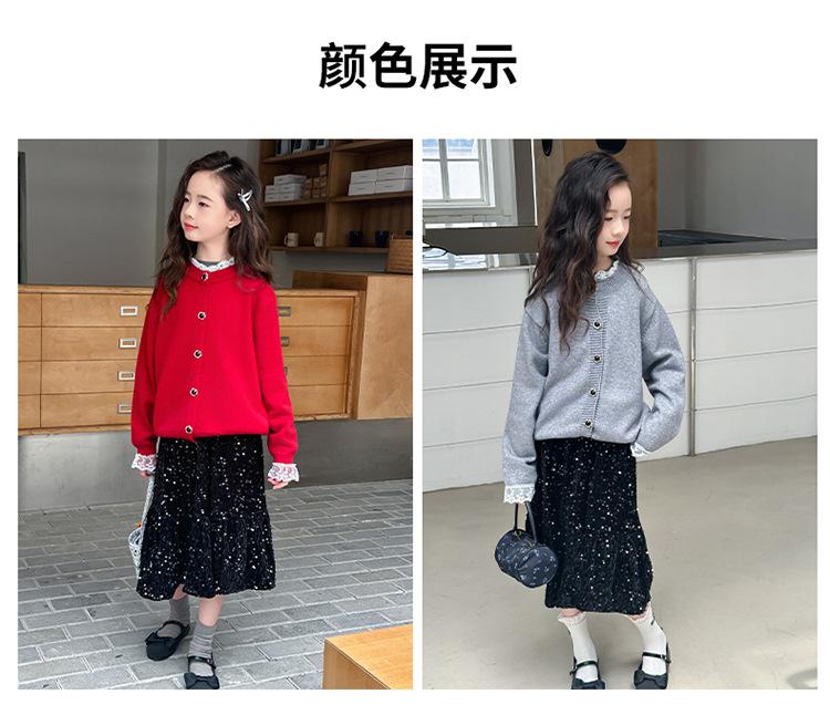 Ropa de Otoño para Niñas Suéter Estilo Pequeño Fragante 2025 Nuevo Cárdigan de Punto de Otoño para Niños Chaqueta con Encaje para Niños Medianos y Grandes