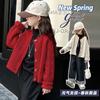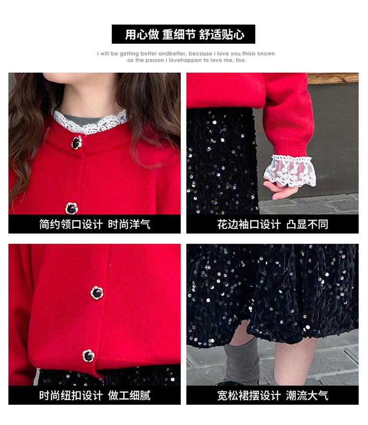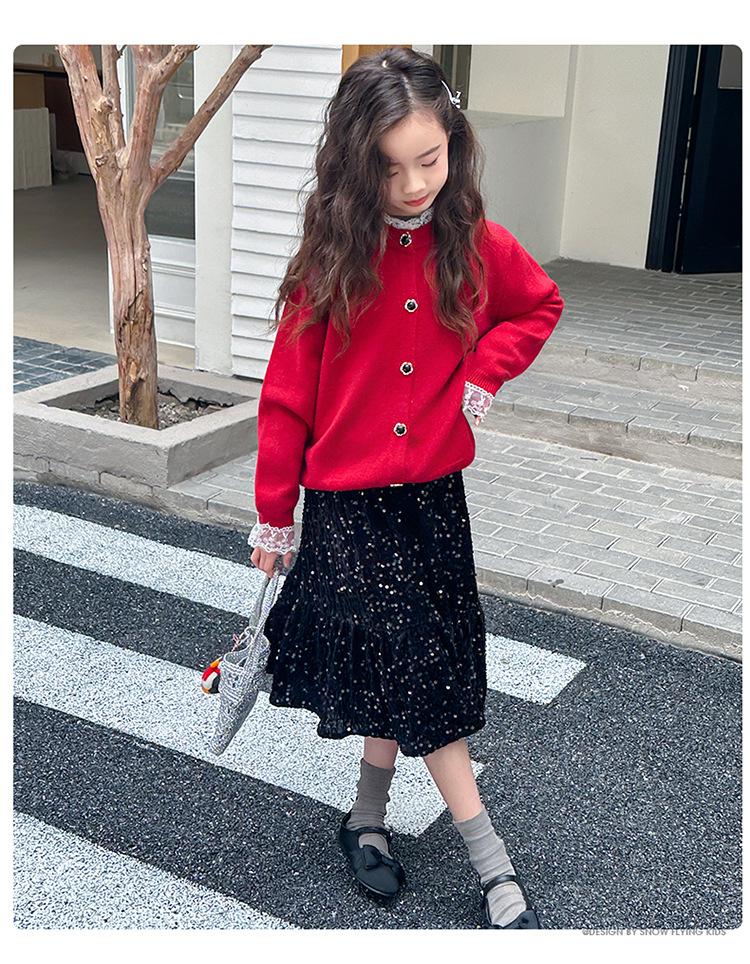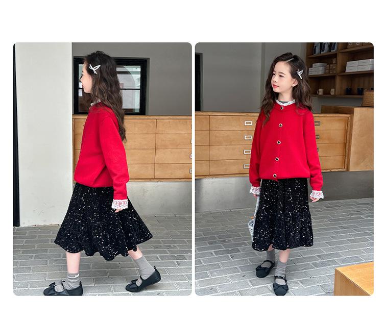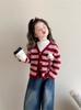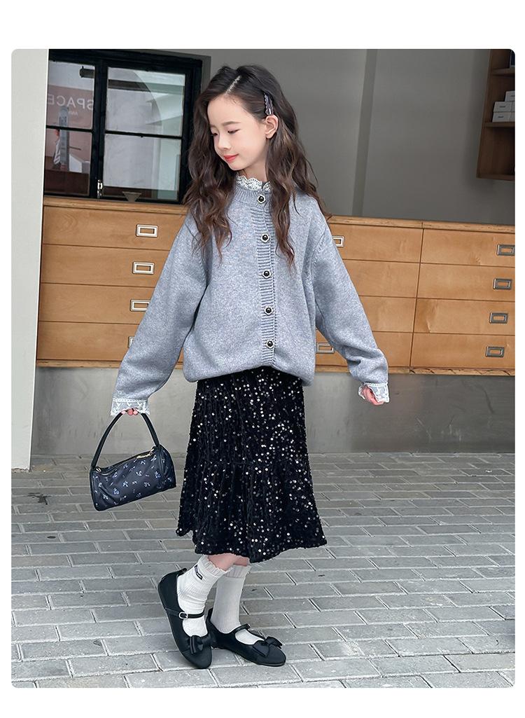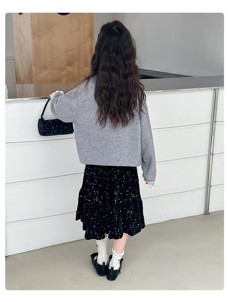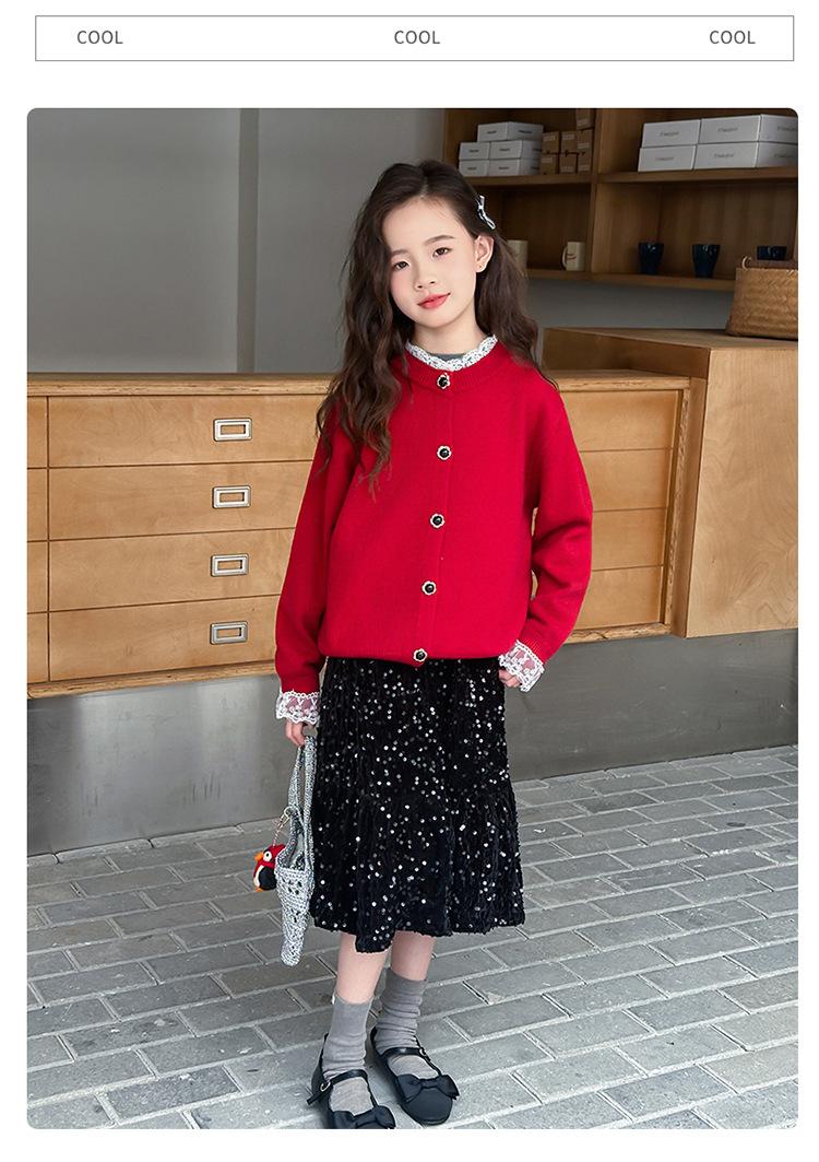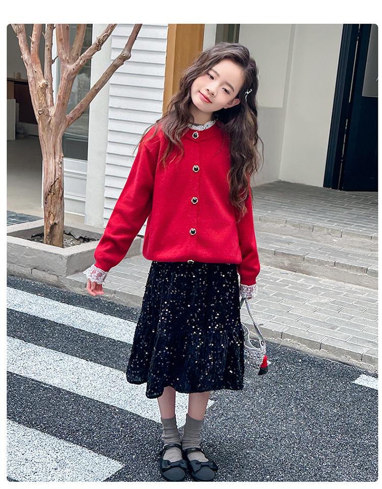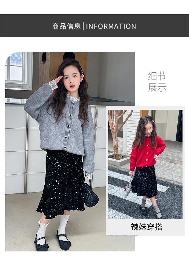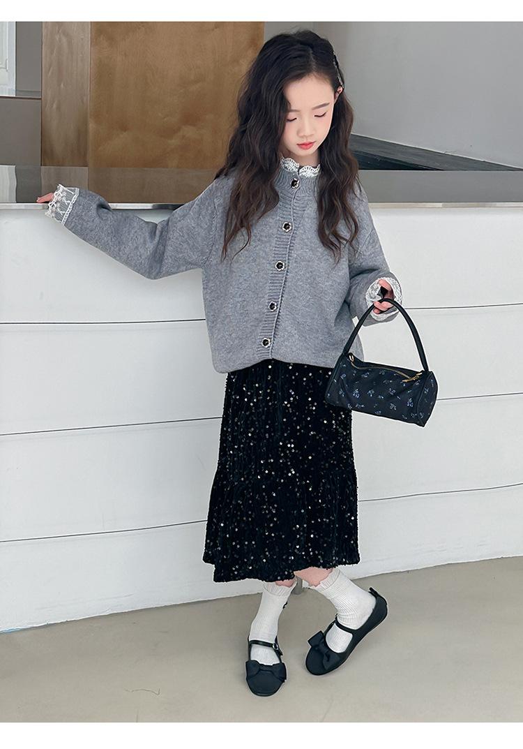 Ropa de Otoño para Niñas Suéter Estilo Pequeño Fragante 2025 Nuevo Cárdigan de Punto de Otoño para Niños Chaqueta con Encaje para Niños Medianos y Grandes