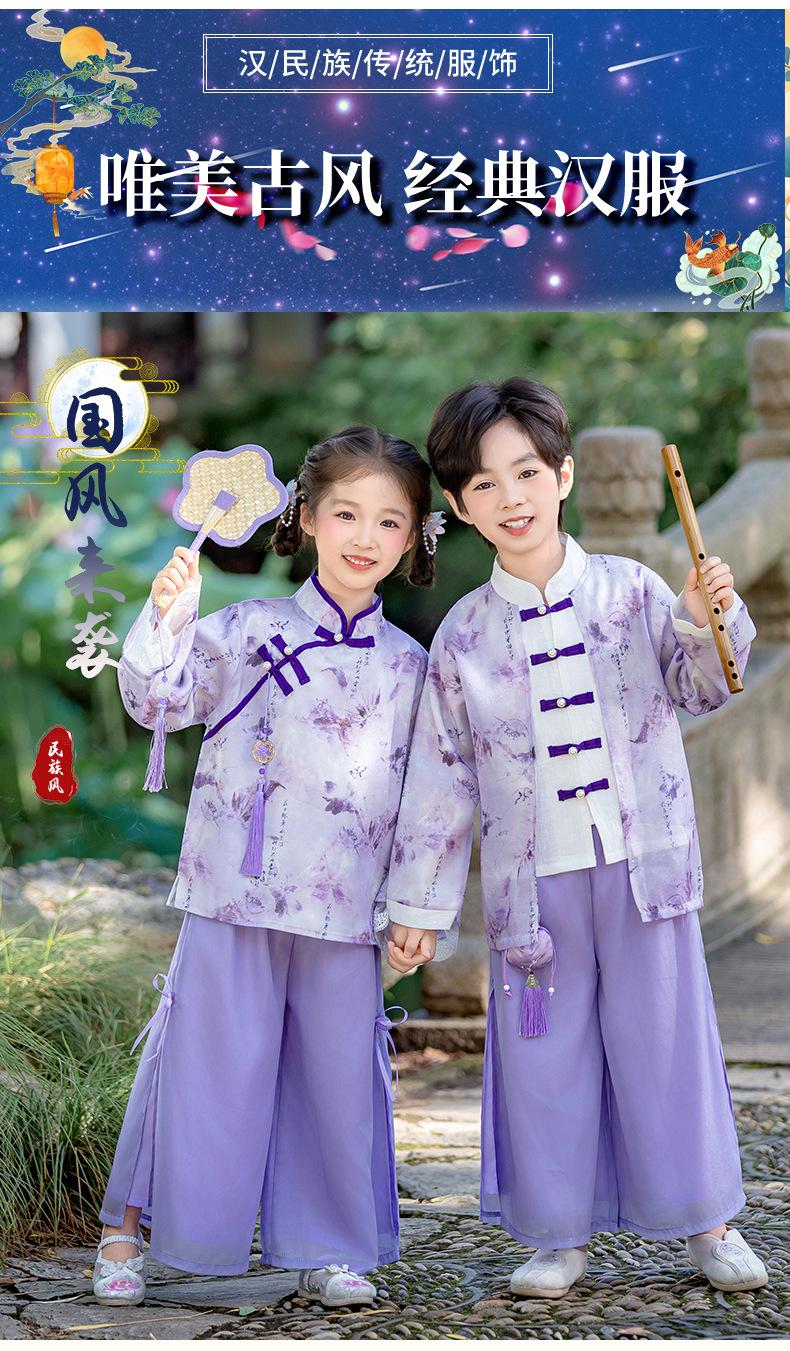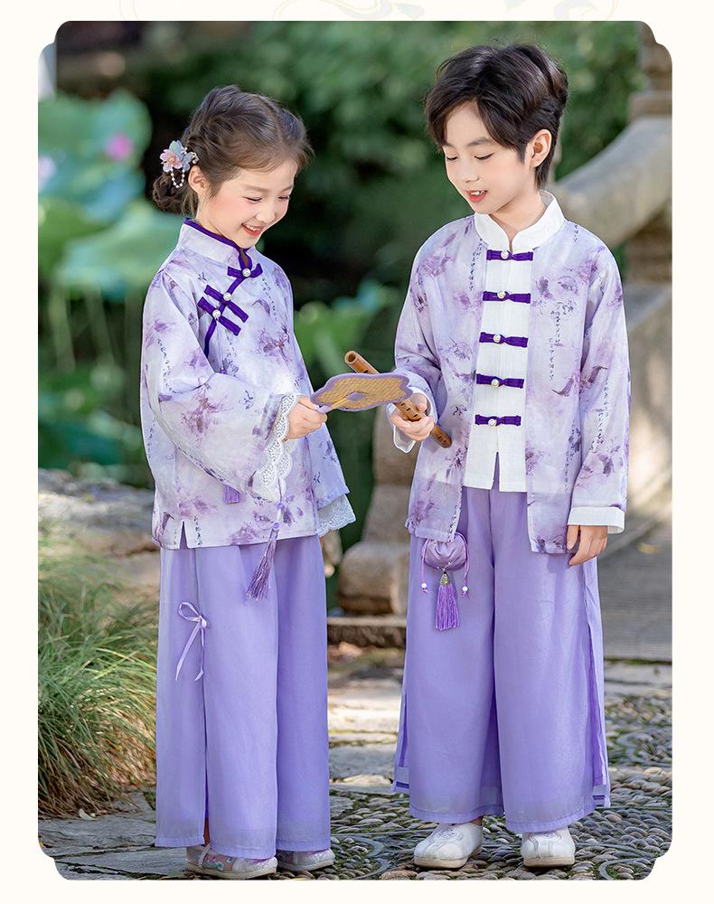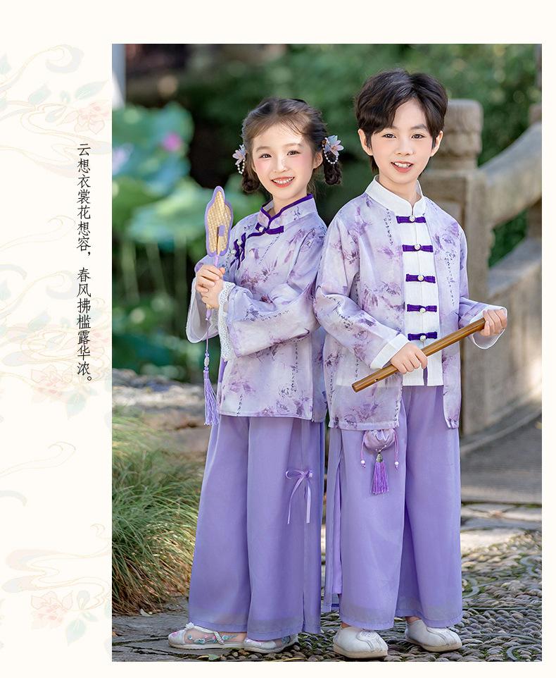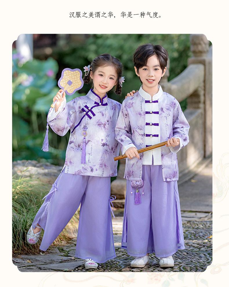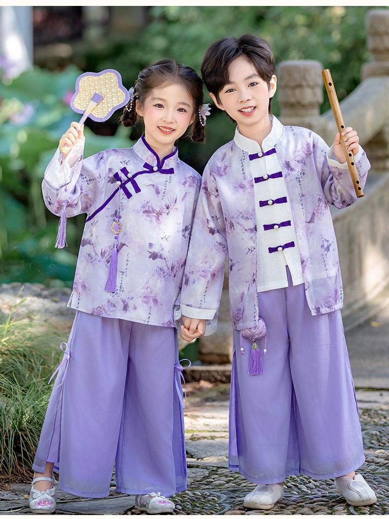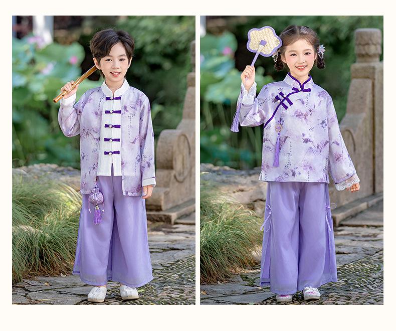 Conjunto Hanfu Orquídea Púrpura para Niños y Niñas Otoño y Primavera Nuevo Disfraz de Actuación para el Día Nacional de los Niños Traje Tang de Disfraz Antiguo de Moda Actuación