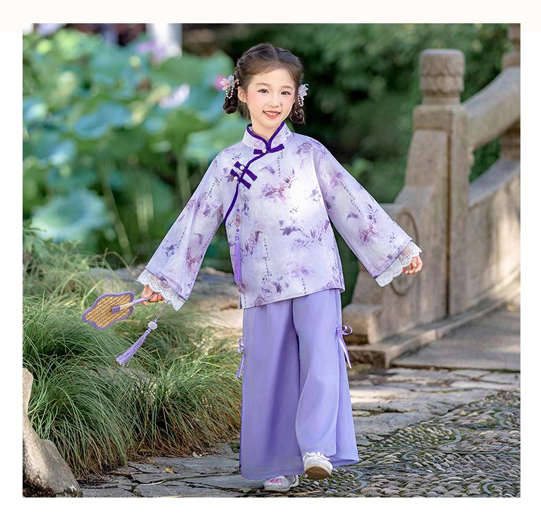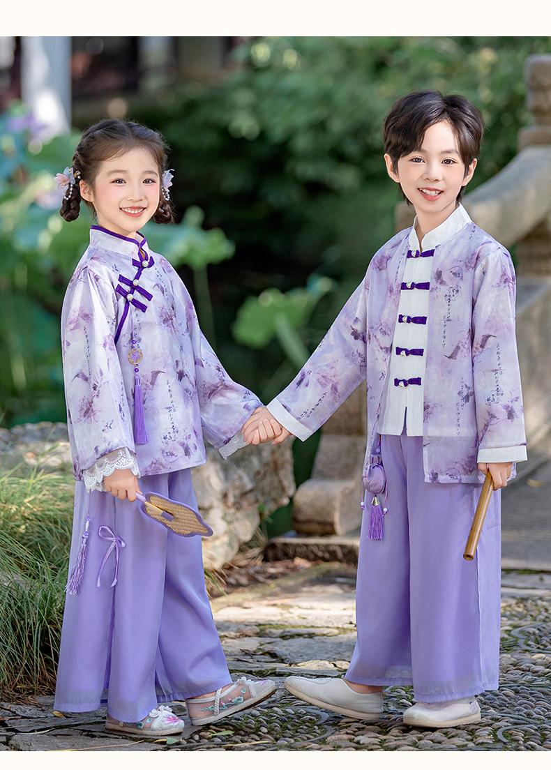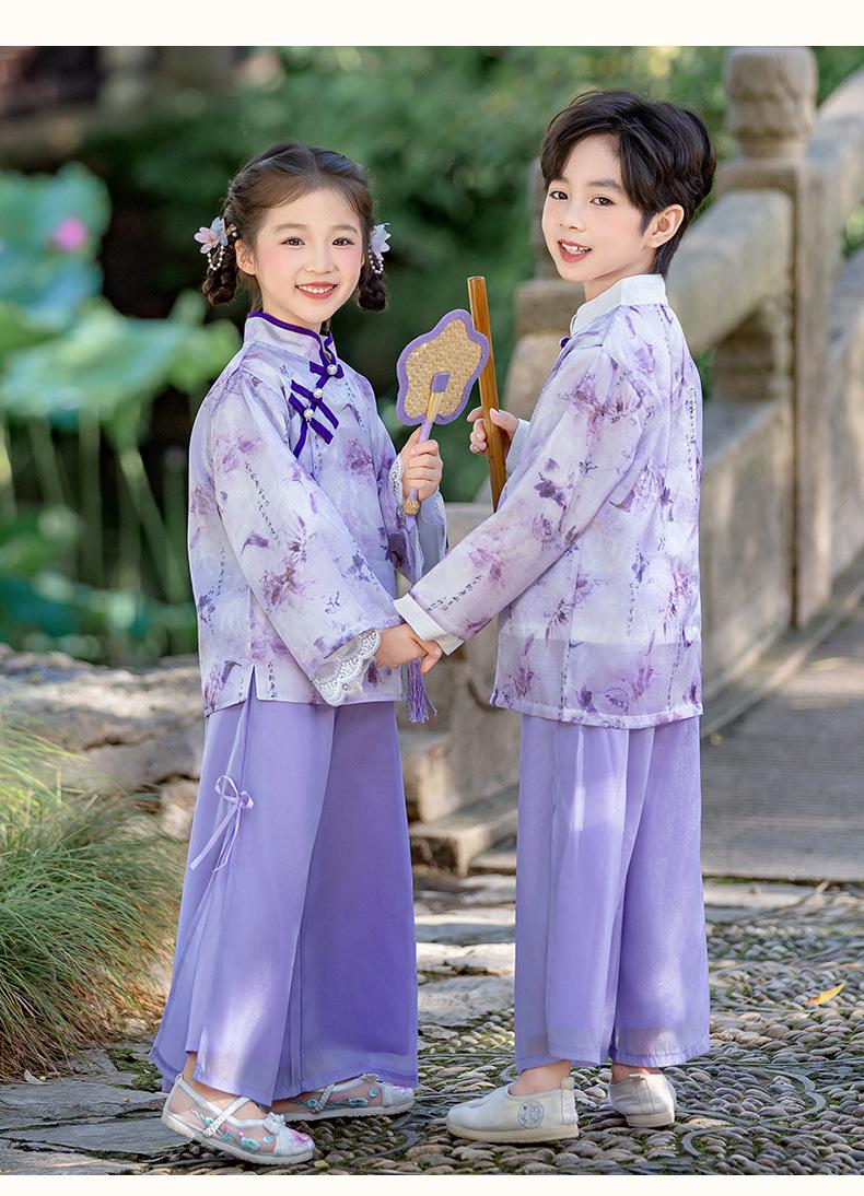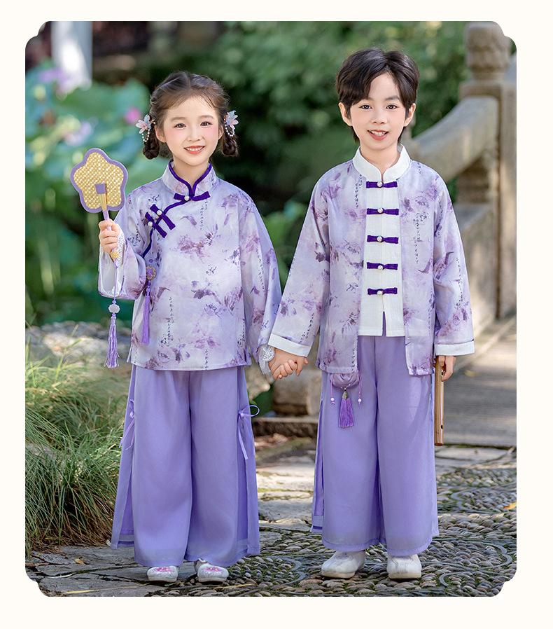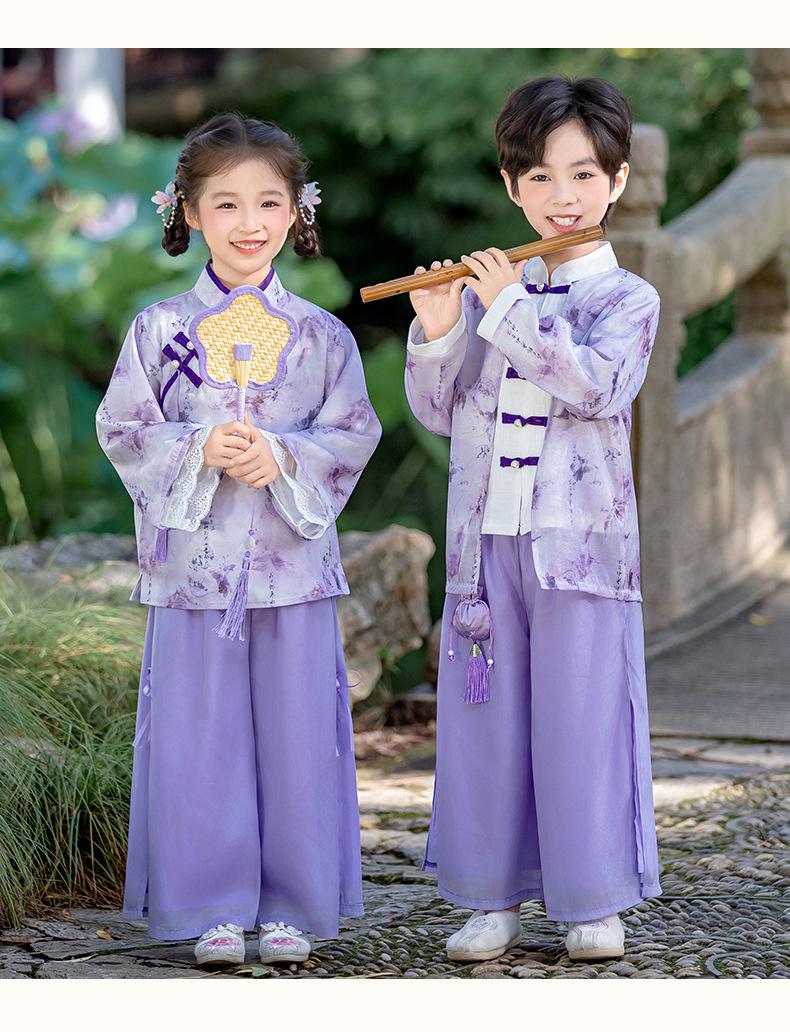 Conjunto Hanfu Orquídea Púrpura para Niños y Niñas Otoño y Primavera Nuevo Disfraz de Actuación para el Día Nacional de los Niños Traje Tang de Disfraz Antiguo de Moda Actuación