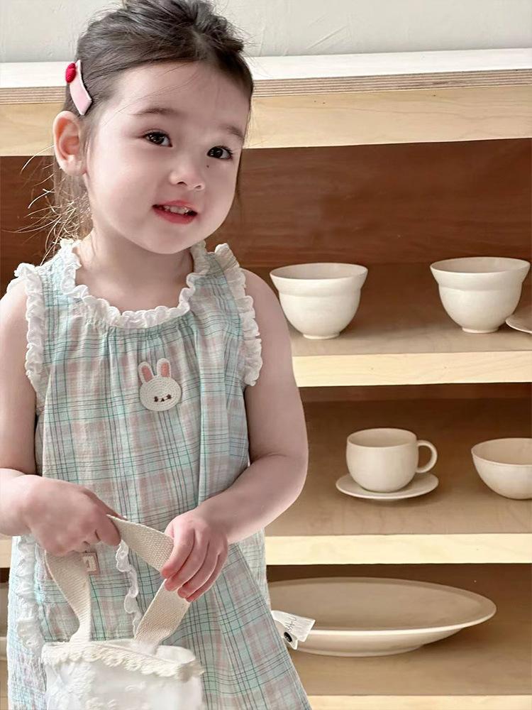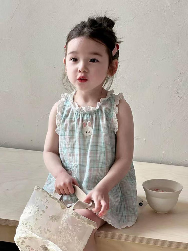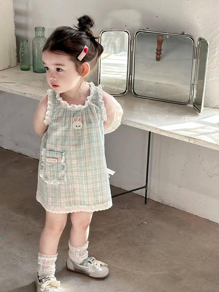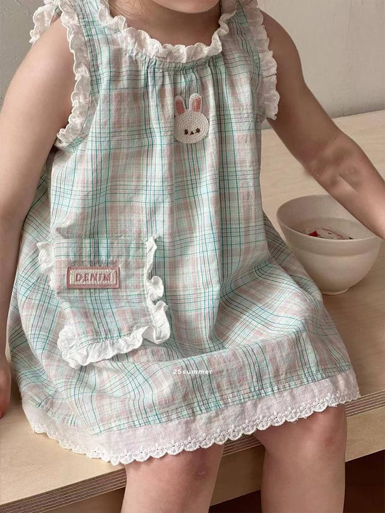 Vestido Infantil de Comercio Exterior Verano 2025 Bebé Dulce Encaje Vestido Chaleco de Encaje Niñas Estilo Occidental Lindo Vestido de Conejo