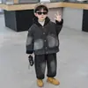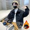Ropa de Otoño para Niños Chaqueta de Mezclilla para Niños 2025 Nuevo Estilo Niño Grande Moderno Rebelde Chico Guapo Invierno Forro Polar Grueso