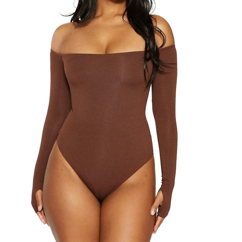 Body ajustado de estilo europeo y americano nuevo de primavera y otoño 2025, mono de manga larga con un hombro descubierto, top de body sexy