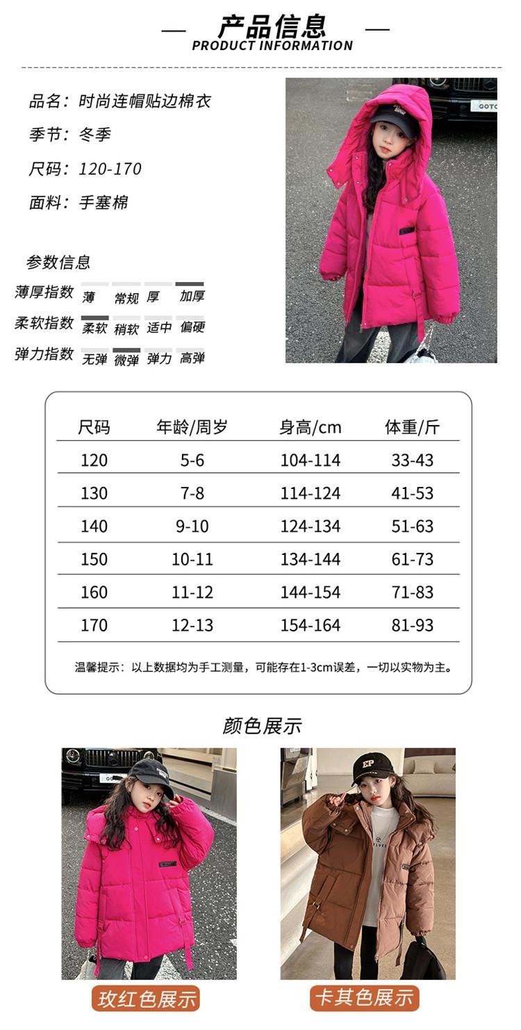 Abrigo de Algodón de Invierno para Niñas Abrigo 2024 Nuevo Estilo Estilo Occidental Niños Medianos y Grandes Abrigo de Algodón Casual Abrigo de Algodón Cálido Grueso para Niñas Moderno