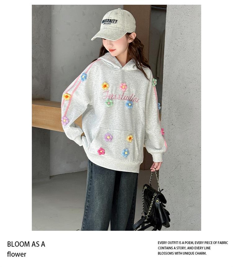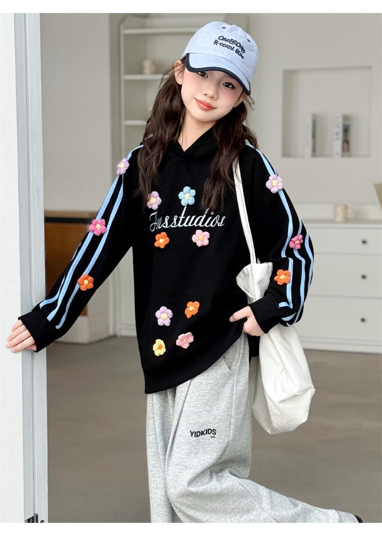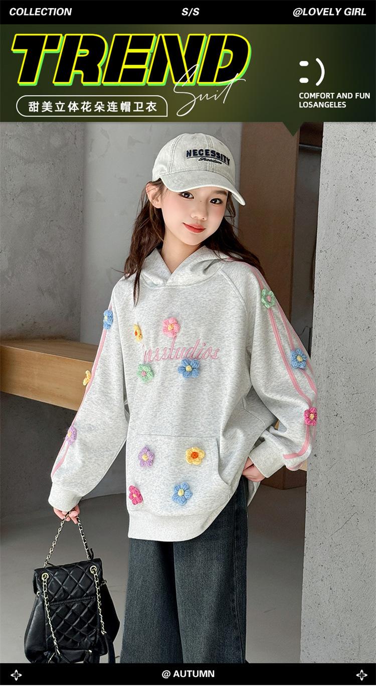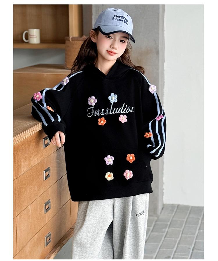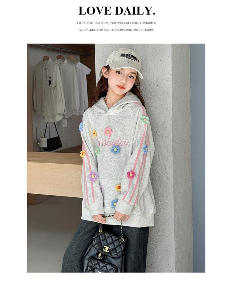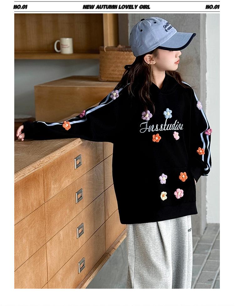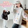 Sudadera con capucha para niñas de primavera y otoño 2025 Nuevo estilo coreano Moda infantil Casual Holgada Estilo extranjero Versátil Top para estudiante