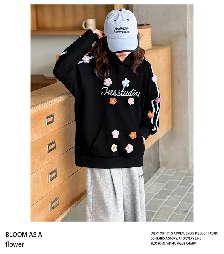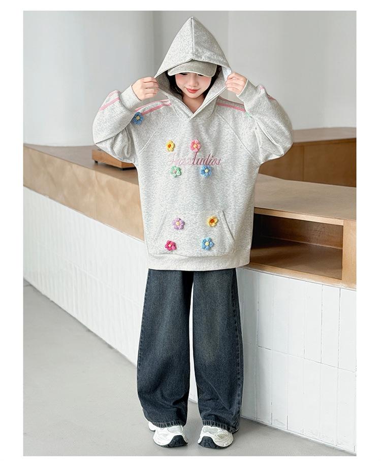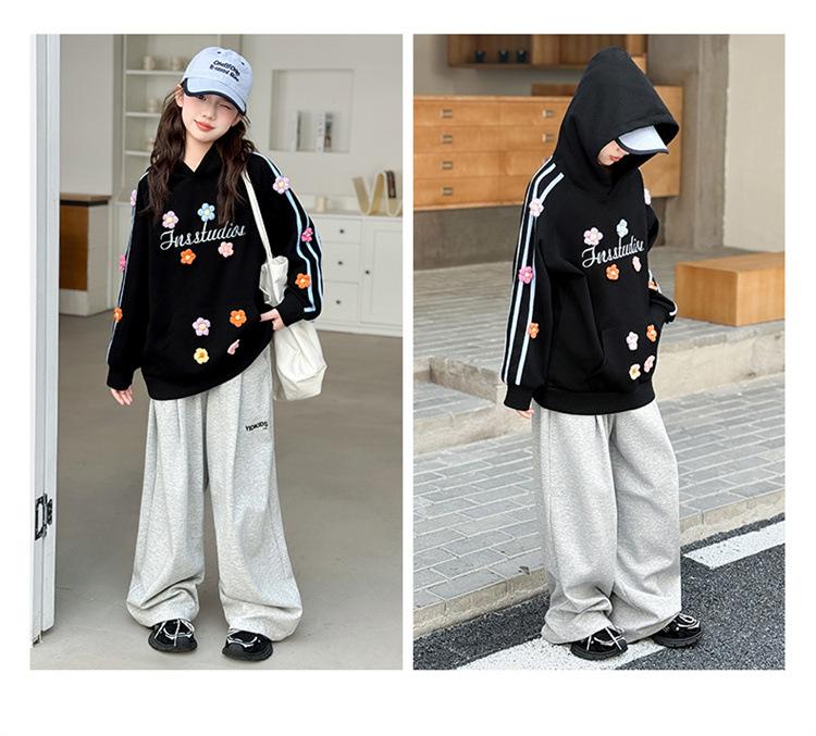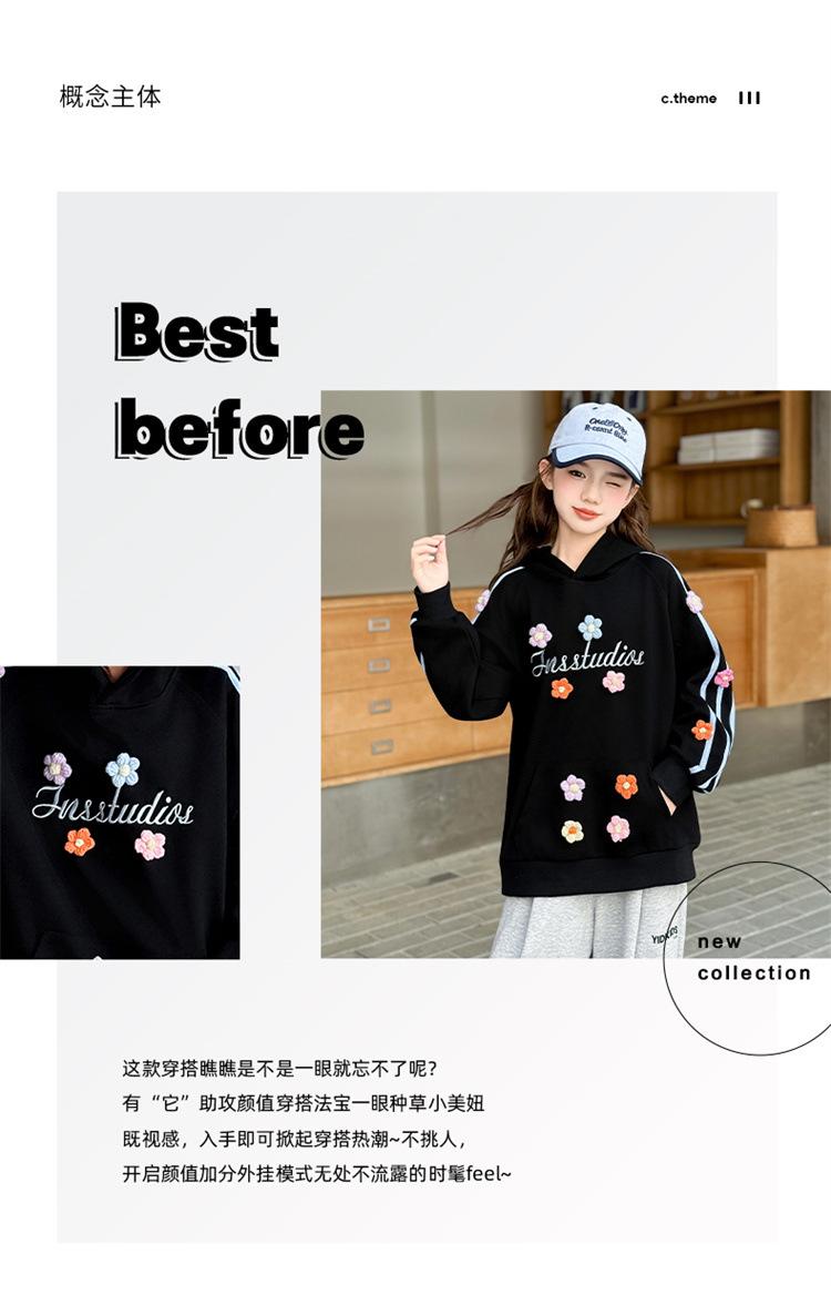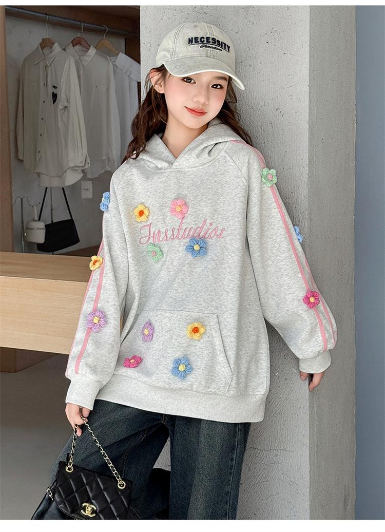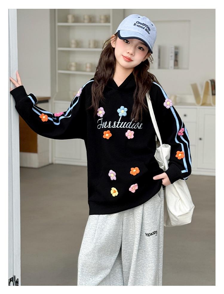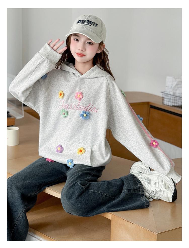 Sudadera con capucha para niñas de primavera y otoño 2025 Nuevo estilo coreano Moda infantil Casual Holgada Estilo extranjero Versátil Top para estudiante