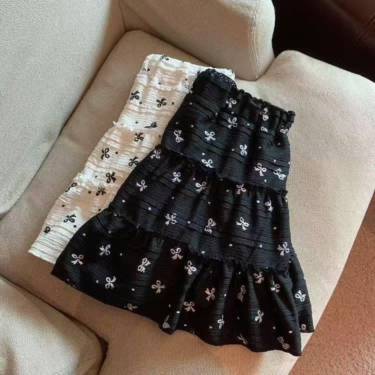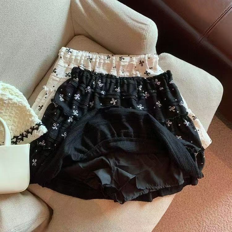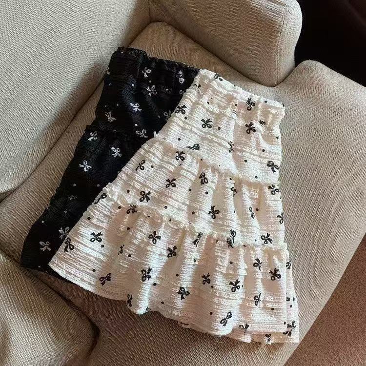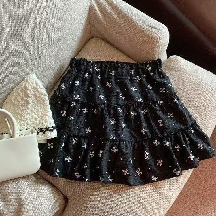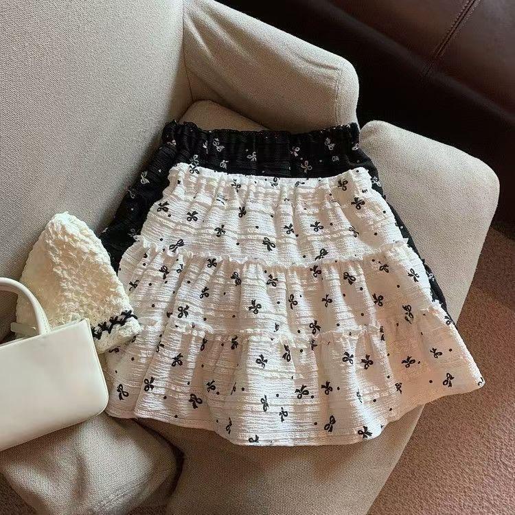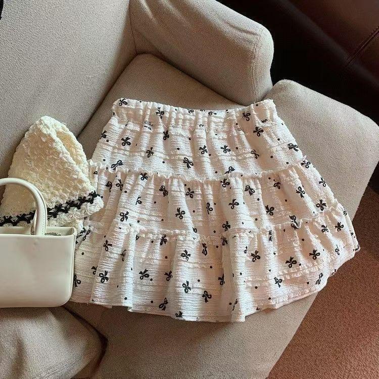 2025 Nueva Falda Corta Estampado Floral para Niñas Falda Midi Francesa Línea A Cintura Alta Casual Falda Pastel Falda Abullonada Dulce