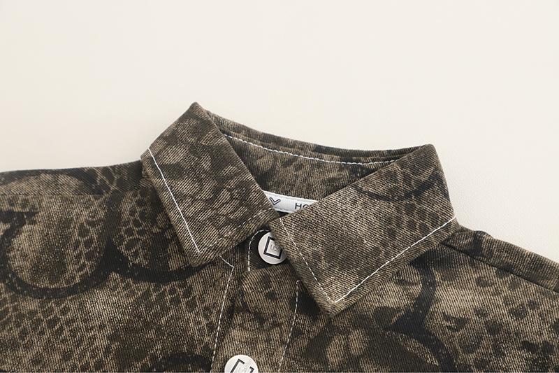 Coffee B2507131 Long Sleeve Snakeskin Casual Three-Piece Set, Black B2507131 Long Sleeve Snakeskin Casual Three-Piece Set