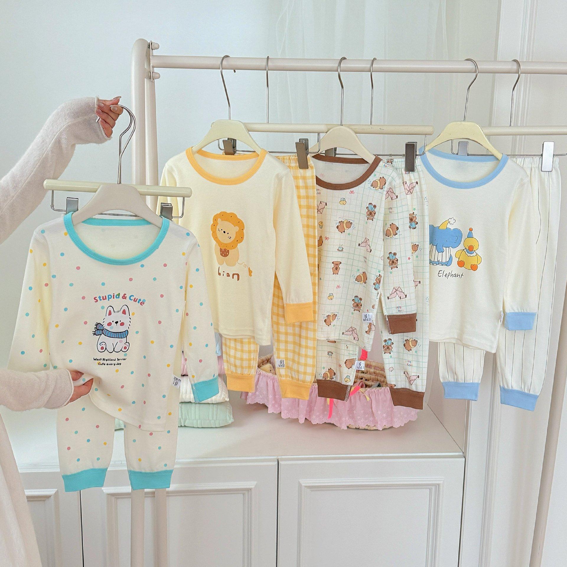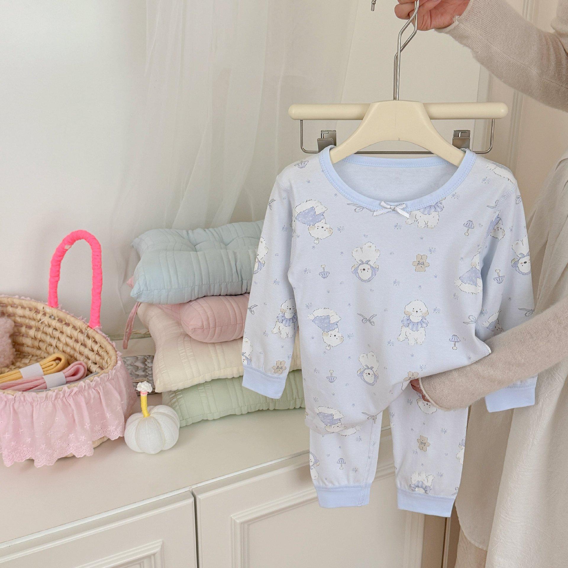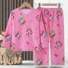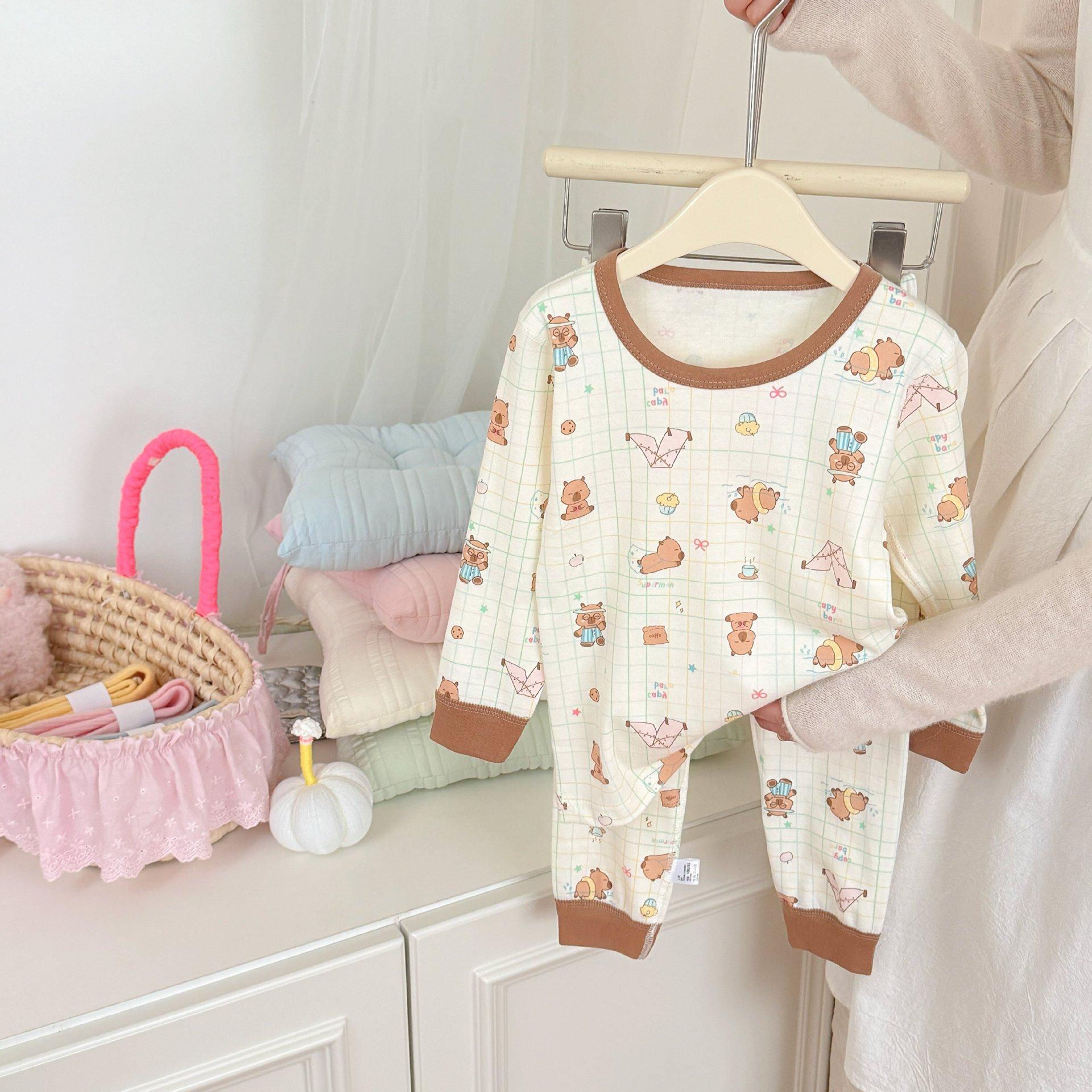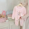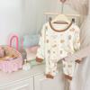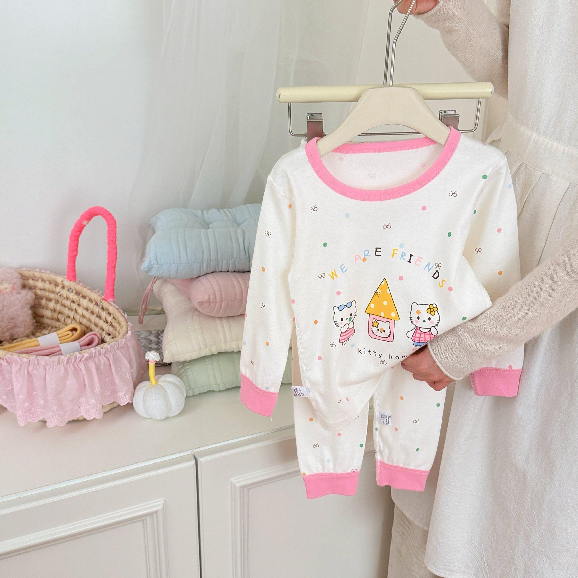 Pijamas para niños de algodón puro para niños, ropa para el hogar de primavera y otoño, manga larga, talla pequeña y mediana, conjunto lindo de dibujos animados para niños, ropa de otoño para niñas y pantalones