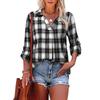 Europeo y Americano 2025 Primavera y Otoño Nuevo Jersey de Cuello en V Cuello Vuelto Suelto para Mujer a Cuadros de Manga Larga