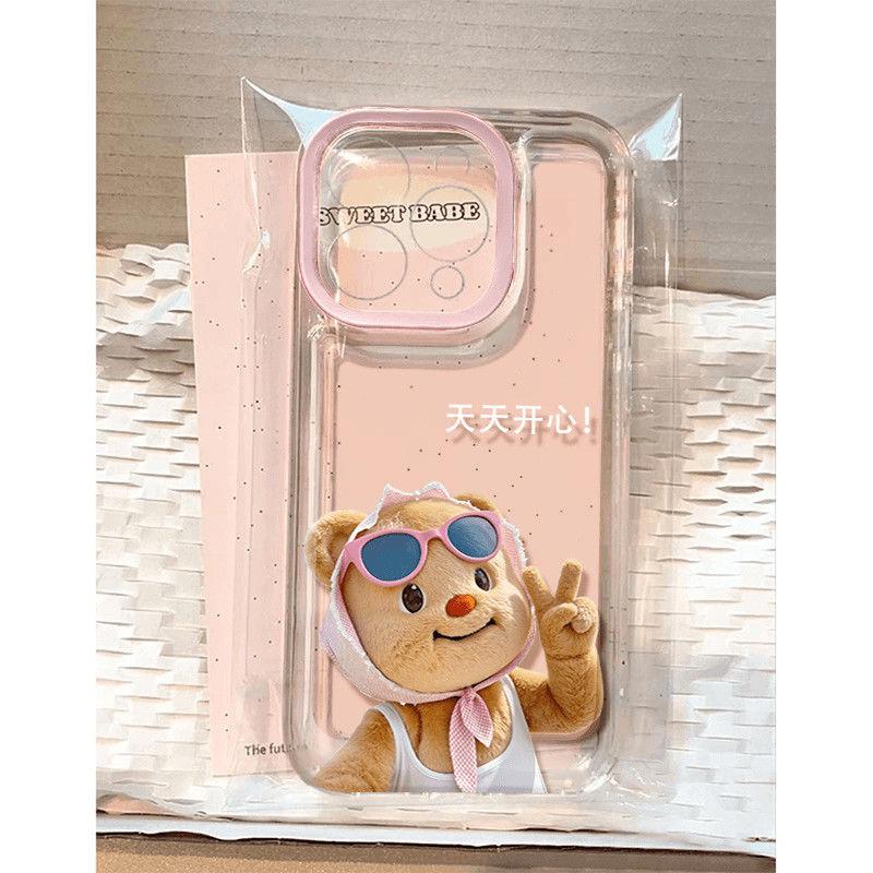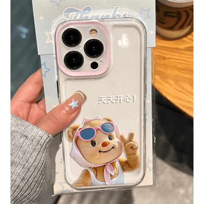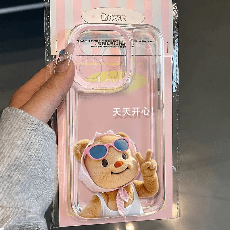 Happy Butter Bear para iPhone17promax Apple 16 Funda para teléfono 15Plus Transparente 13 Cobertura completa 12