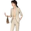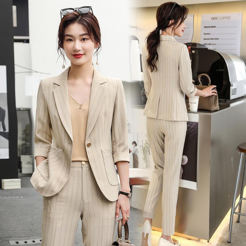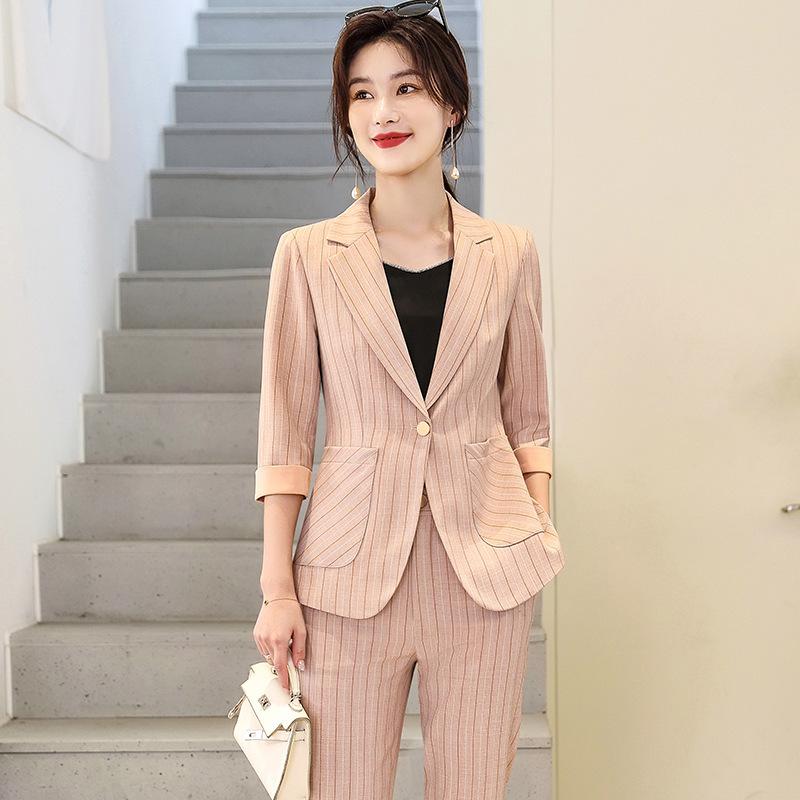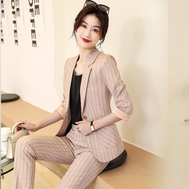 Chaqueta de Traje a Rayas para Mujer 2023 Nuevo Elegante a la Moda Estilo Coreano Cintura Manga Siete Puntos Top Conjunto de Traje Profesional