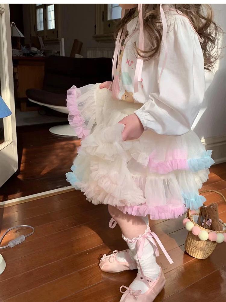 Falda Tutú Degradada para Niñas 2025 Otoño Nuevo Bebé Falda Esponjosa Niña Pastel Malla Falda de Princesa