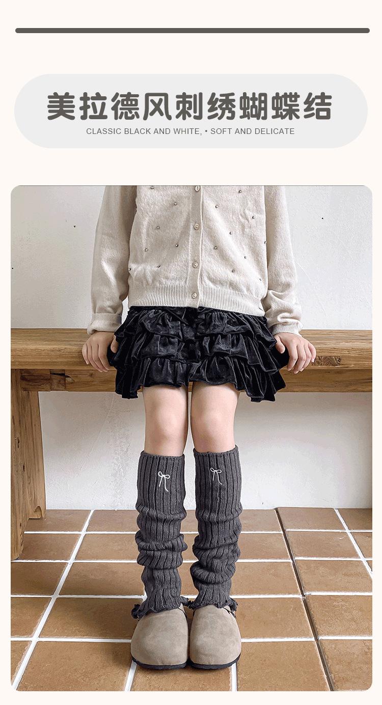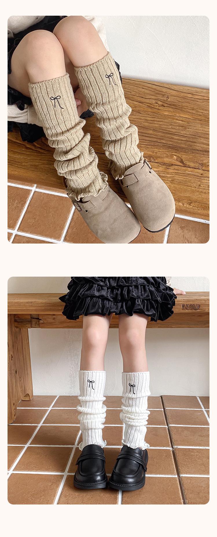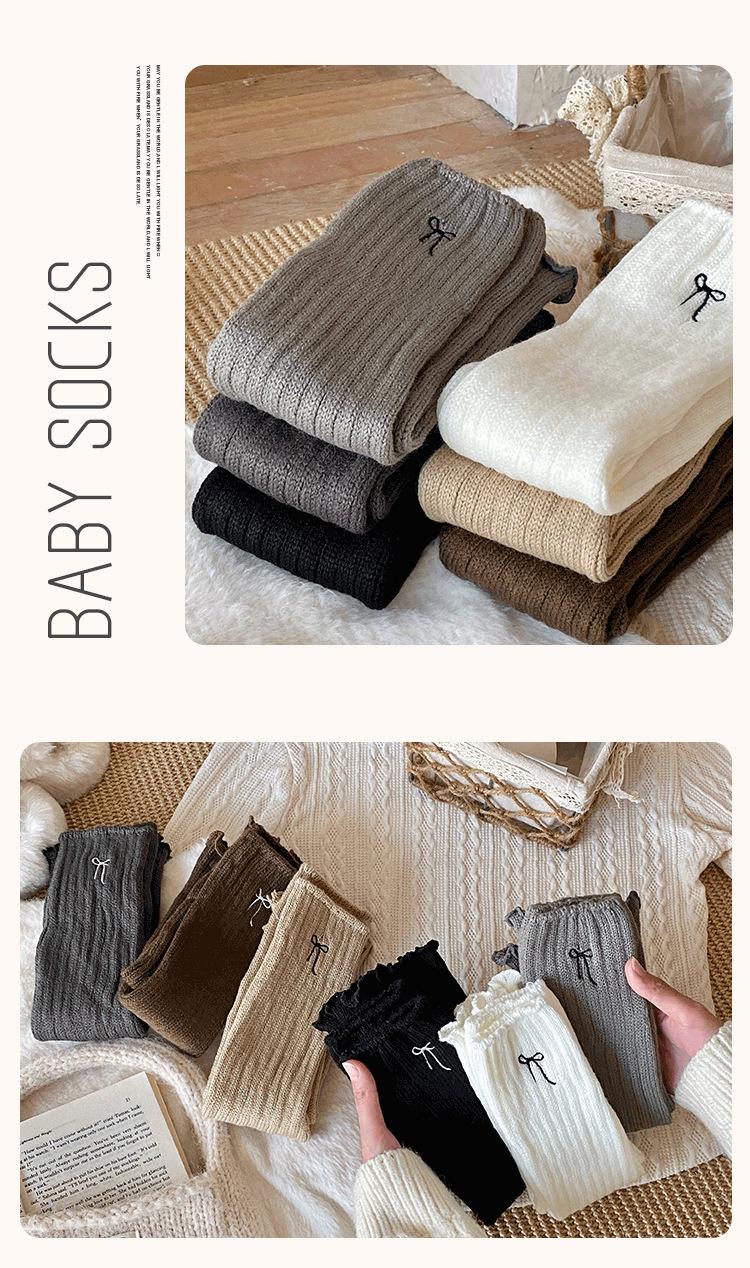 Calentadores de Pierna para Niñas 2025 Estilo Primavera y Otoño Lazo Bordado Calcetines Media Pantorrilla Estilo Coreano Color Retro Tejido Lana Cálido Apilado