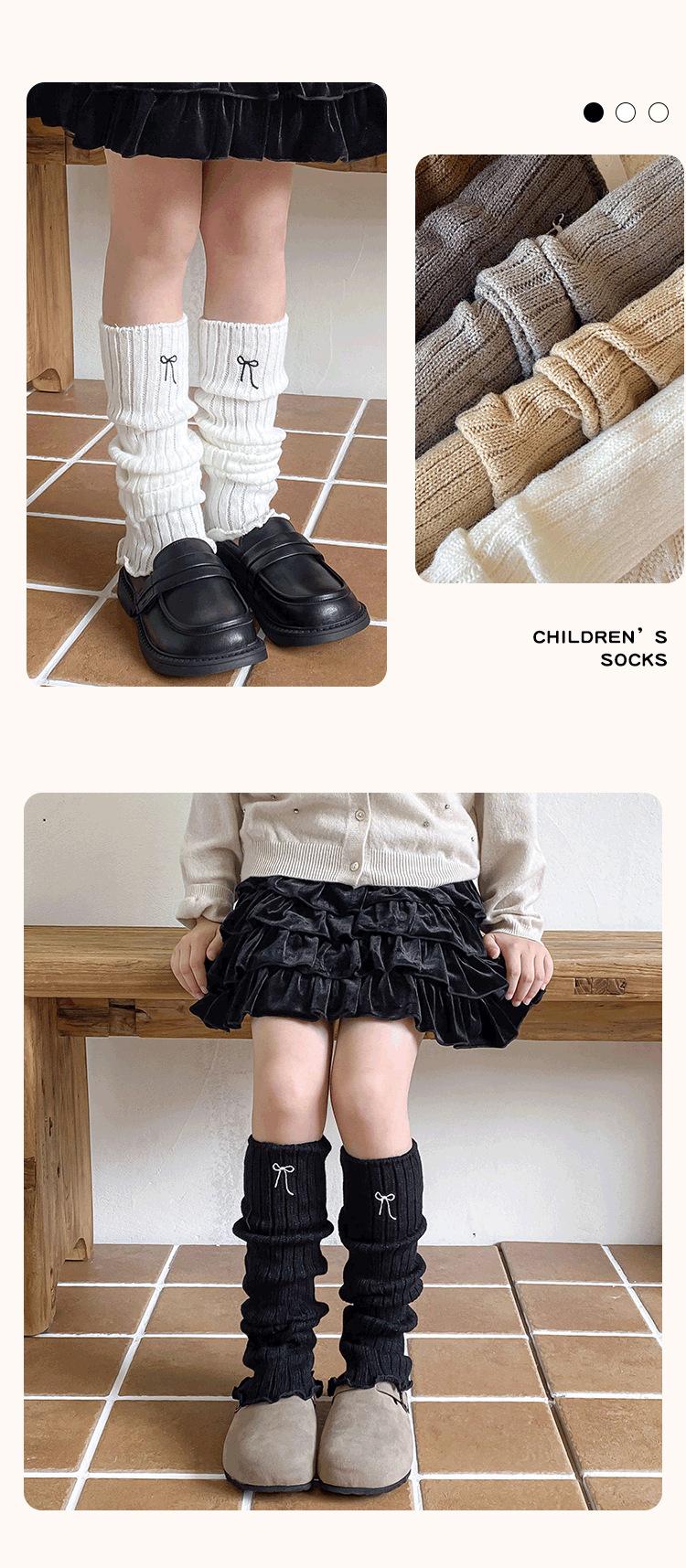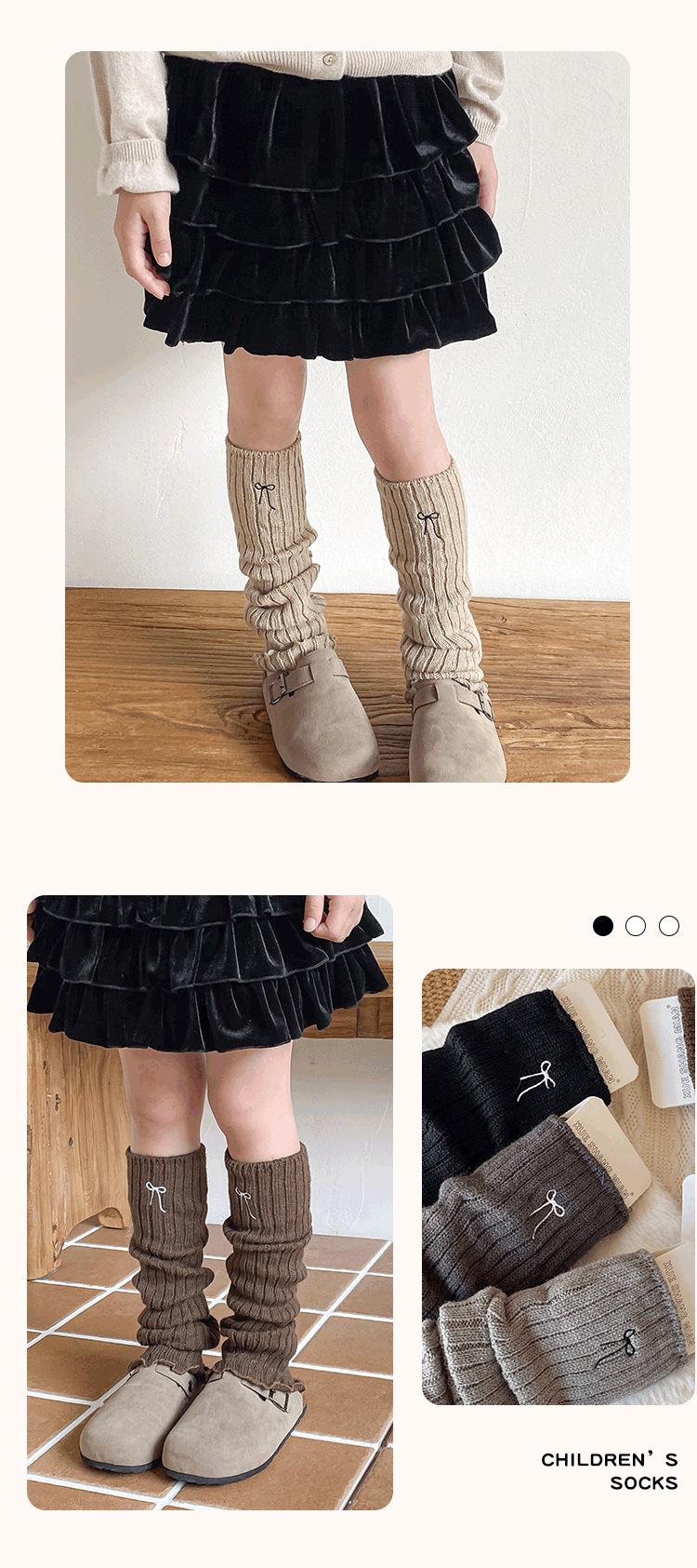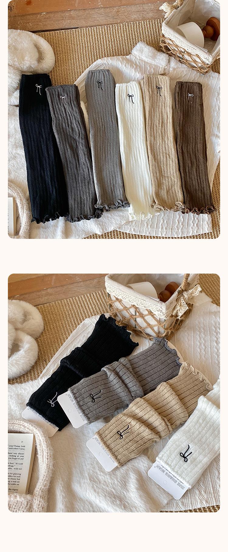 Calentadores de Pierna para Niñas 2025 Estilo Primavera y Otoño Lazo Bordado Calcetines Media Pantorrilla Estilo Coreano Color Retro Tejido Lana Cálido Apilado