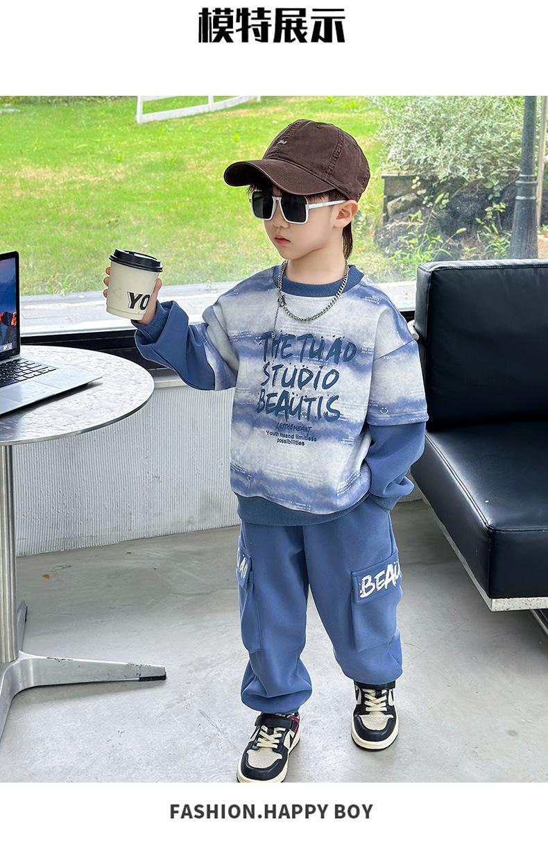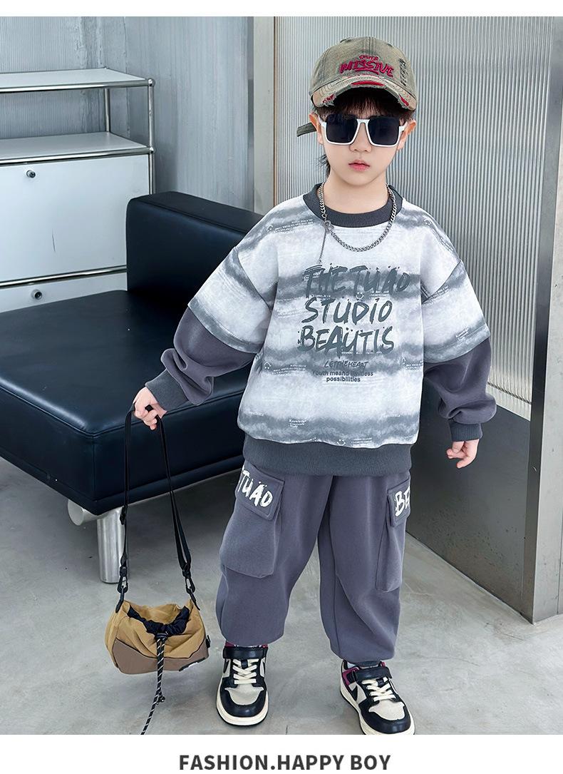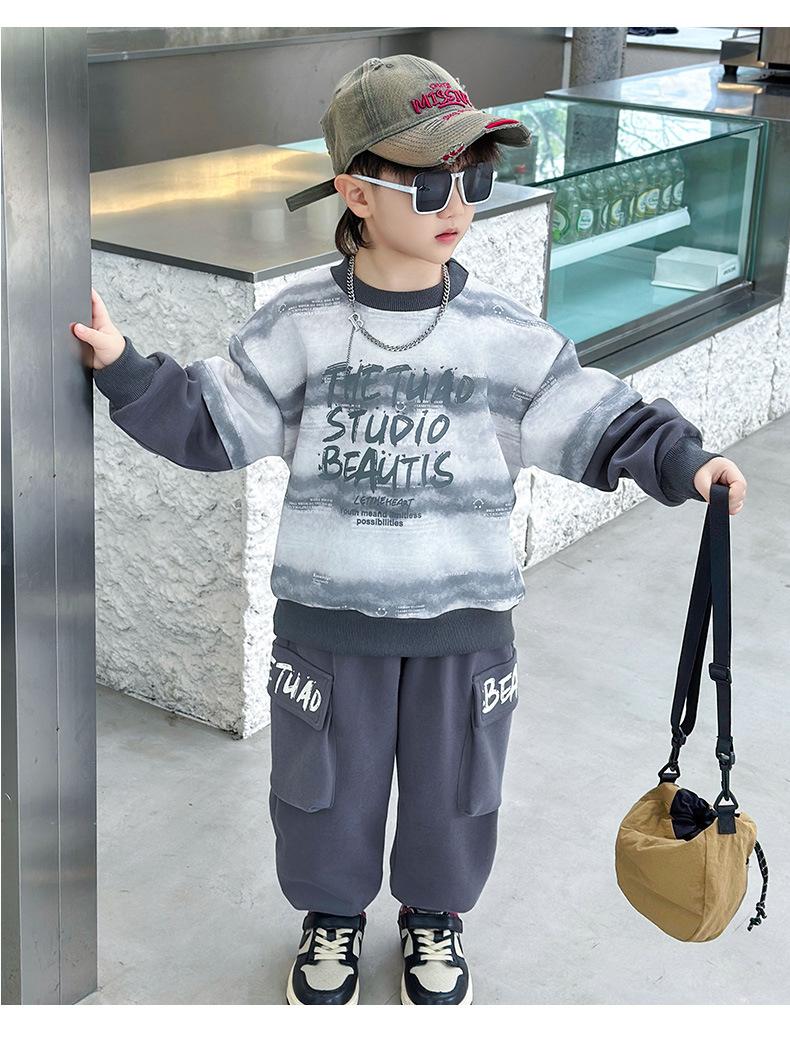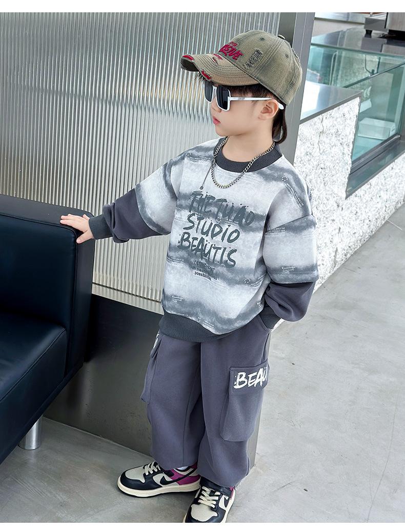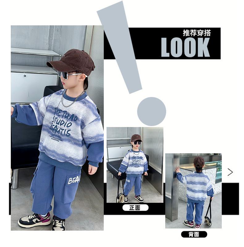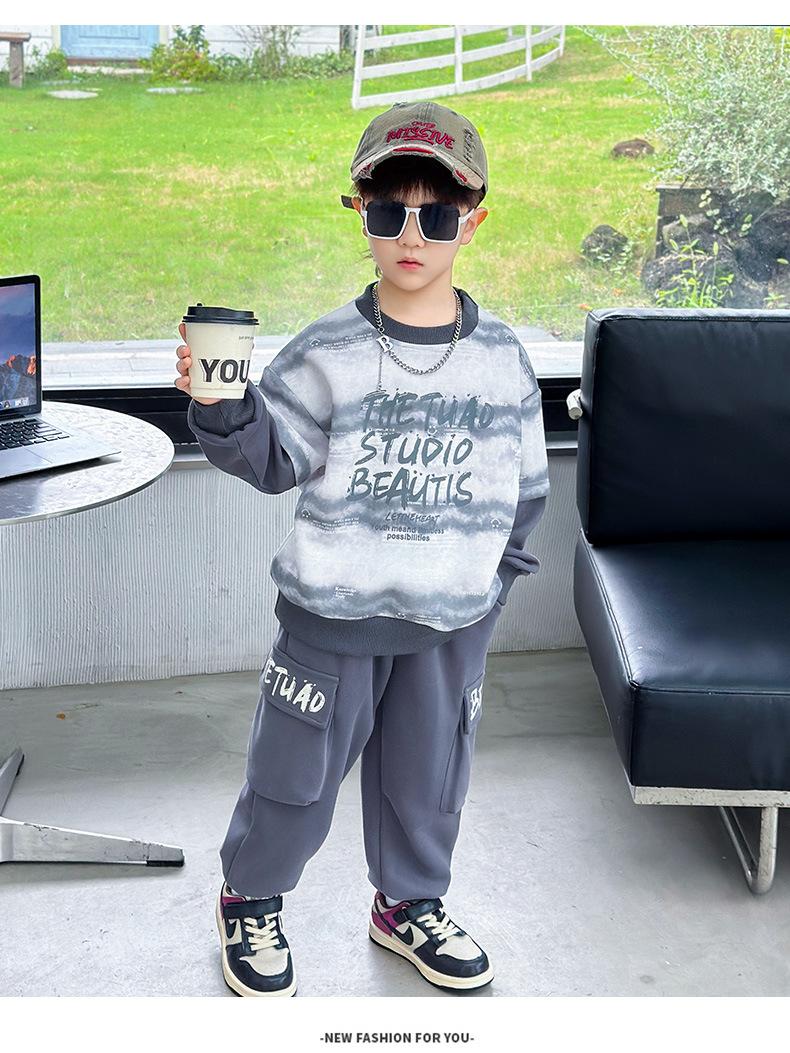 Conjunto para Niños 2025 Otoño Nuevo Estilo Sudadera para Niños Conjunto de Dos Piezas Estilo Otoño Bebé Niño Otoño Ropa Fresca y Guapa