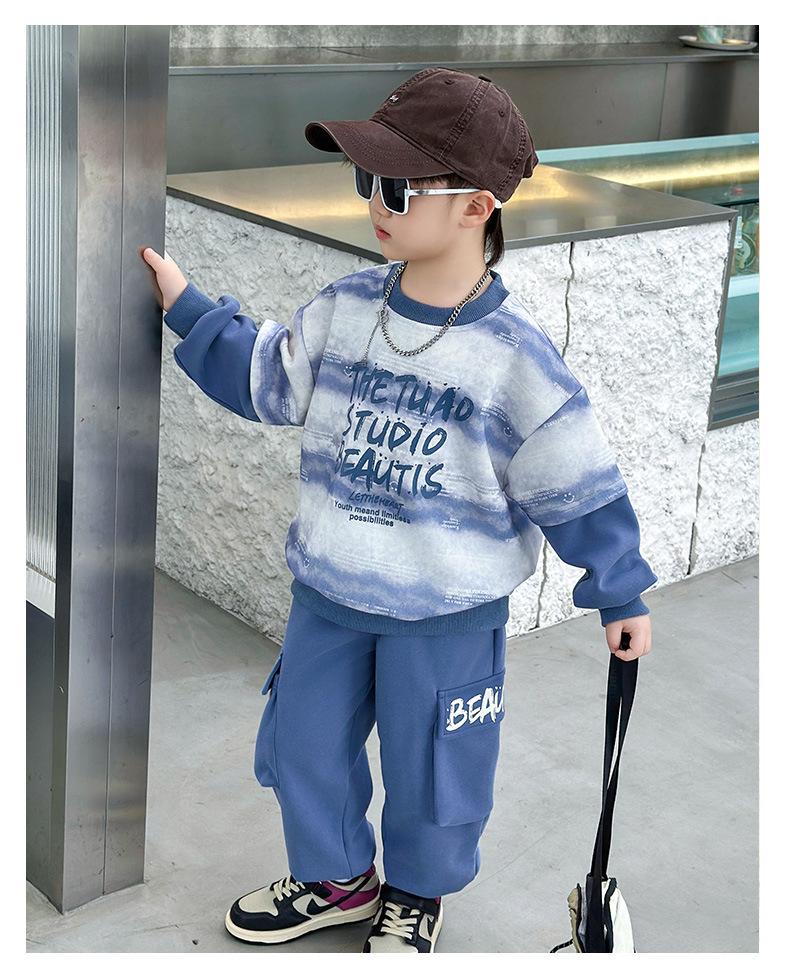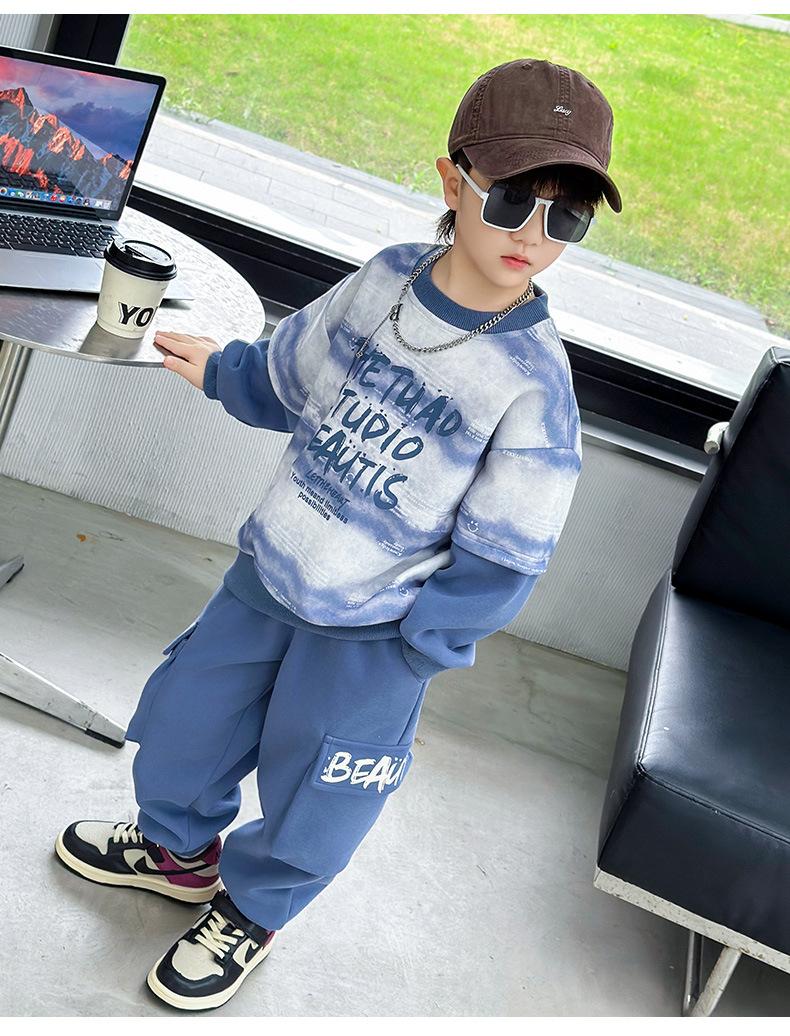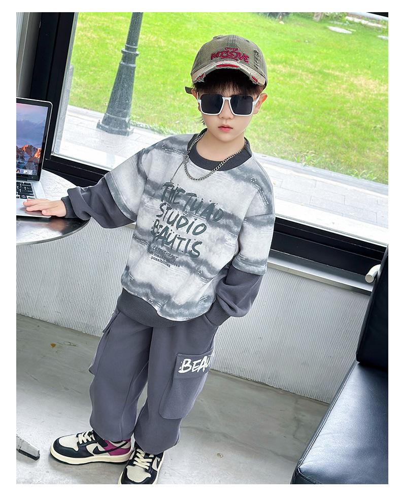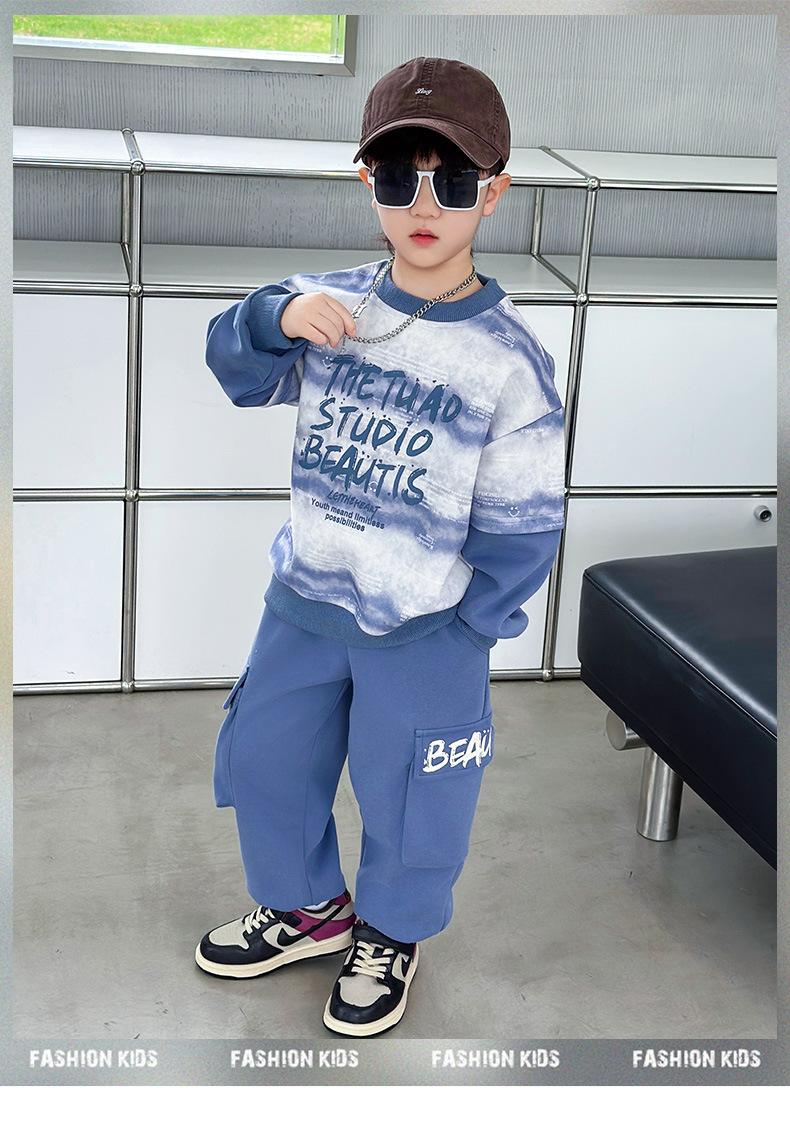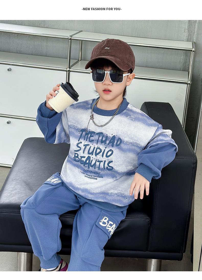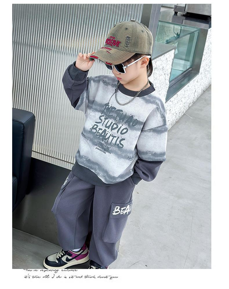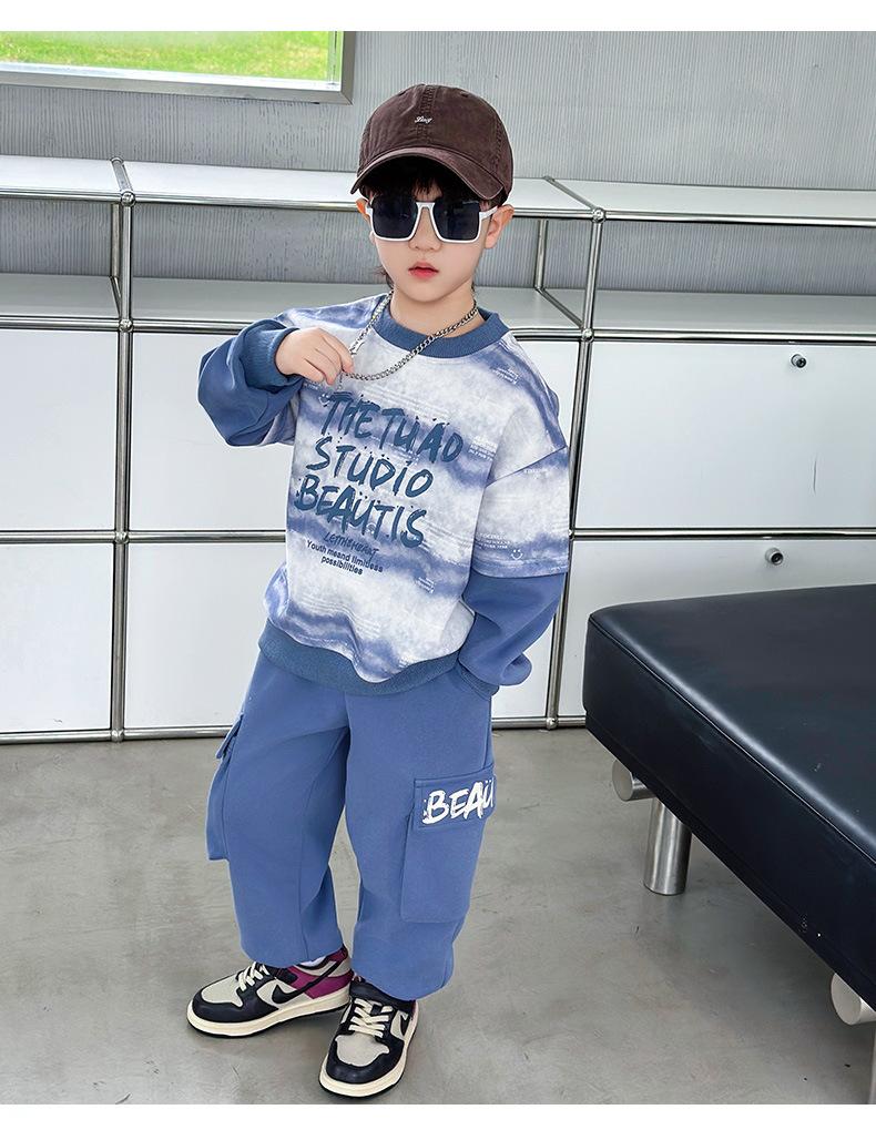 Conjunto para Niños 2025 Otoño Nuevo Estilo Sudadera para Niños Conjunto de Dos Piezas Estilo Otoño Bebé Niño Otoño Ropa Fresca y Guapa