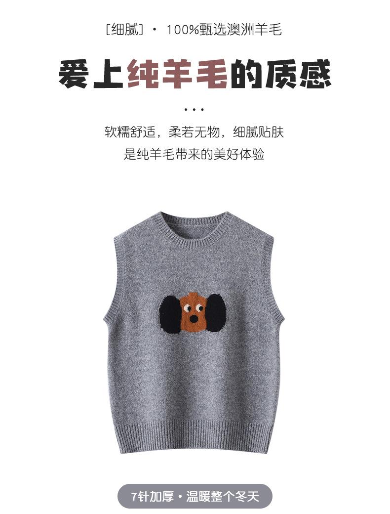 Suéter chaleco jacquard de cachorro dulce y encantador otoño nuevo estilo coreano para hombre y mujer lana pura top chaleco en capas