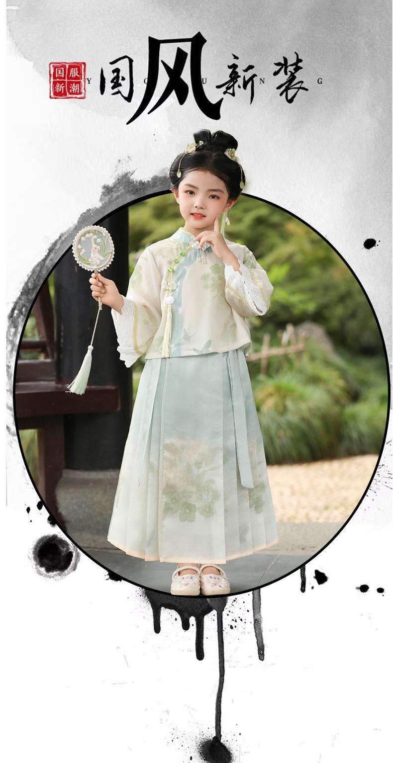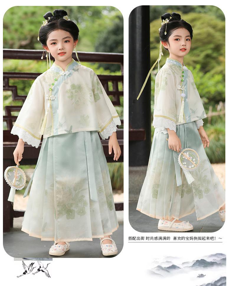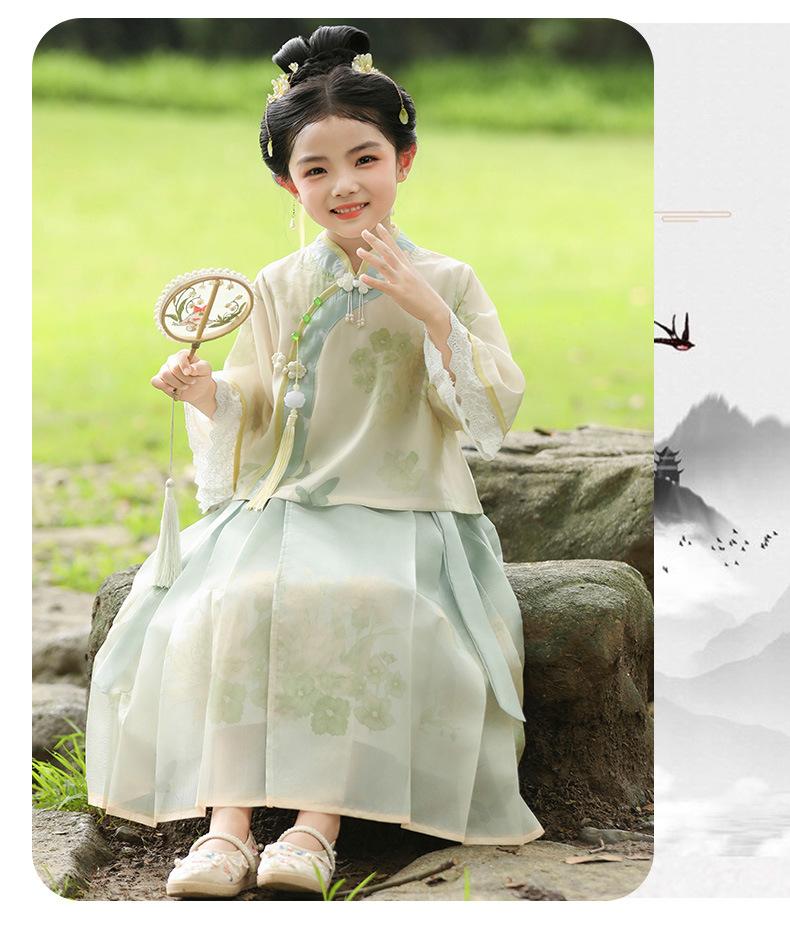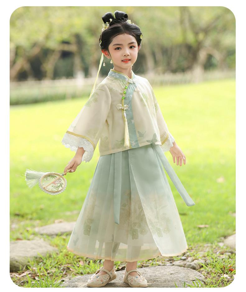 Hanfu para Niñas Estilo Chino Set Falda Mamian Primavera Otoño 2025 Nueva Moda Nuevo Estilo Chino Manga Larga Infantil Traje Antiguo