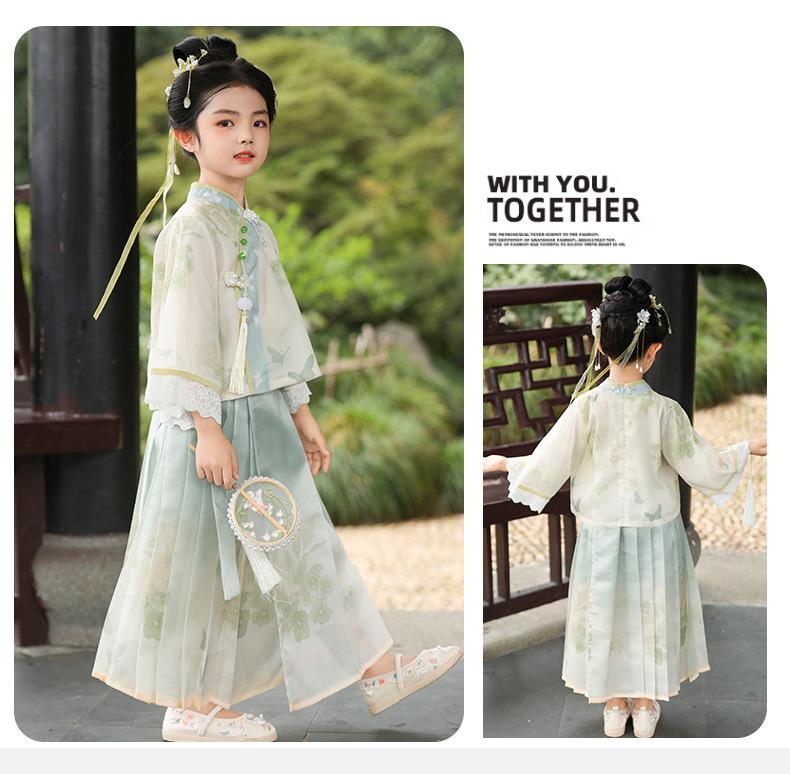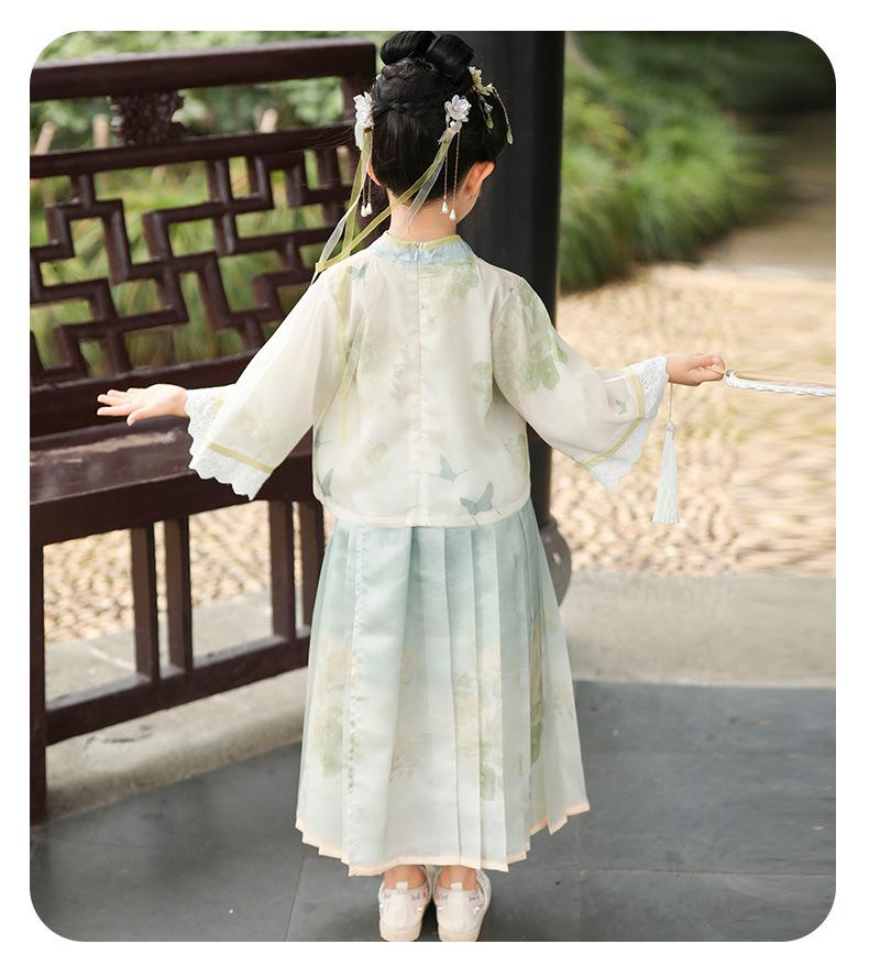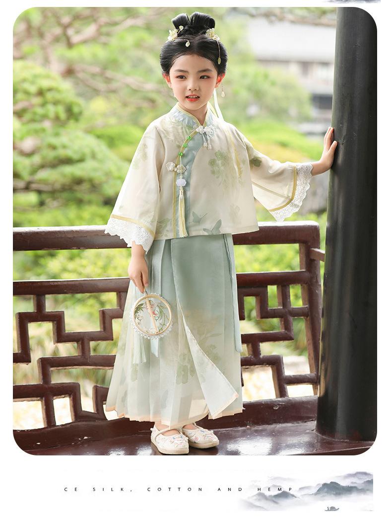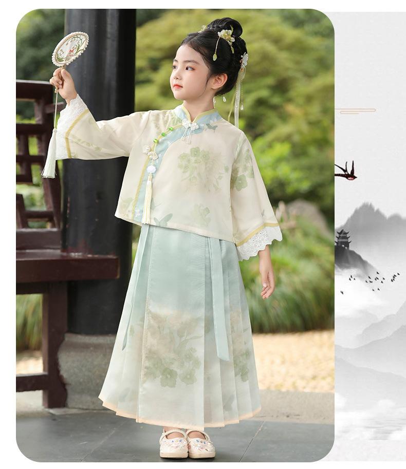 Hanfu para Niñas Estilo Chino Set Falda Mamian Primavera Otoño 2025 Nueva Moda Nuevo Estilo Chino Manga Larga Infantil Traje Antiguo