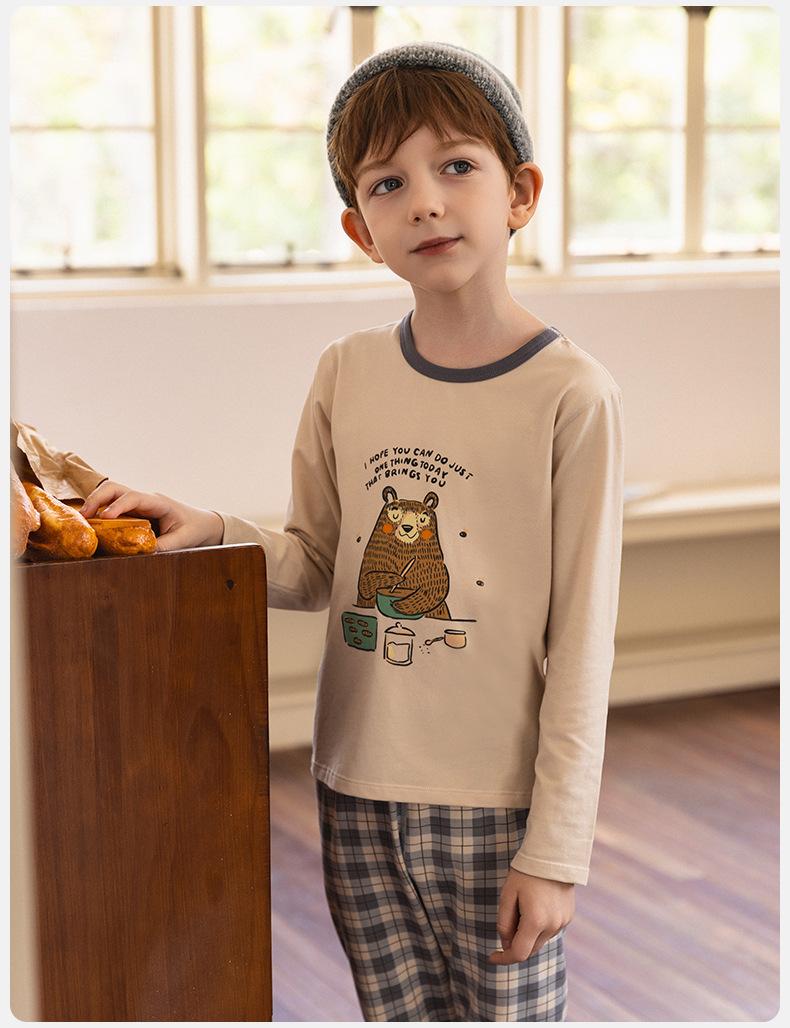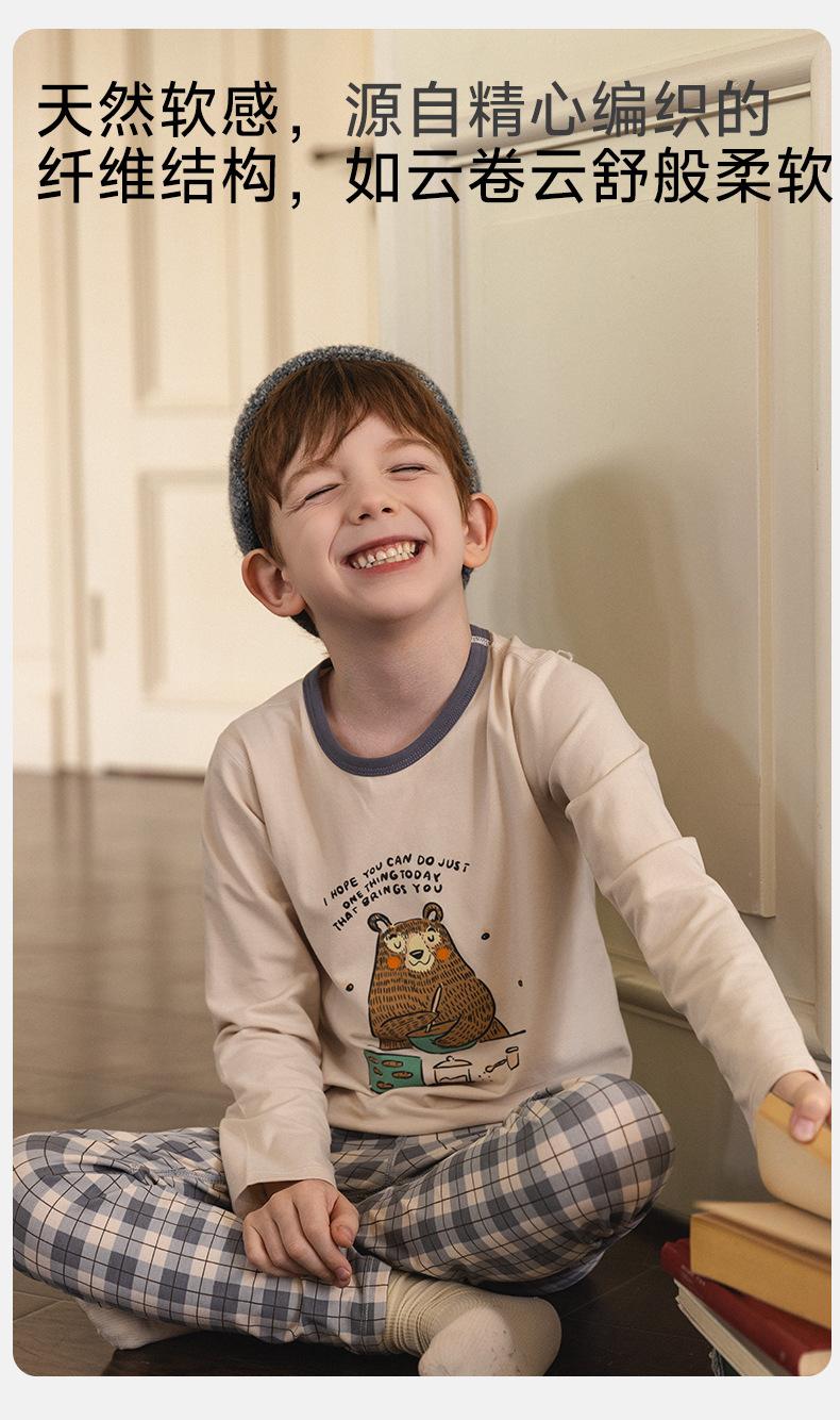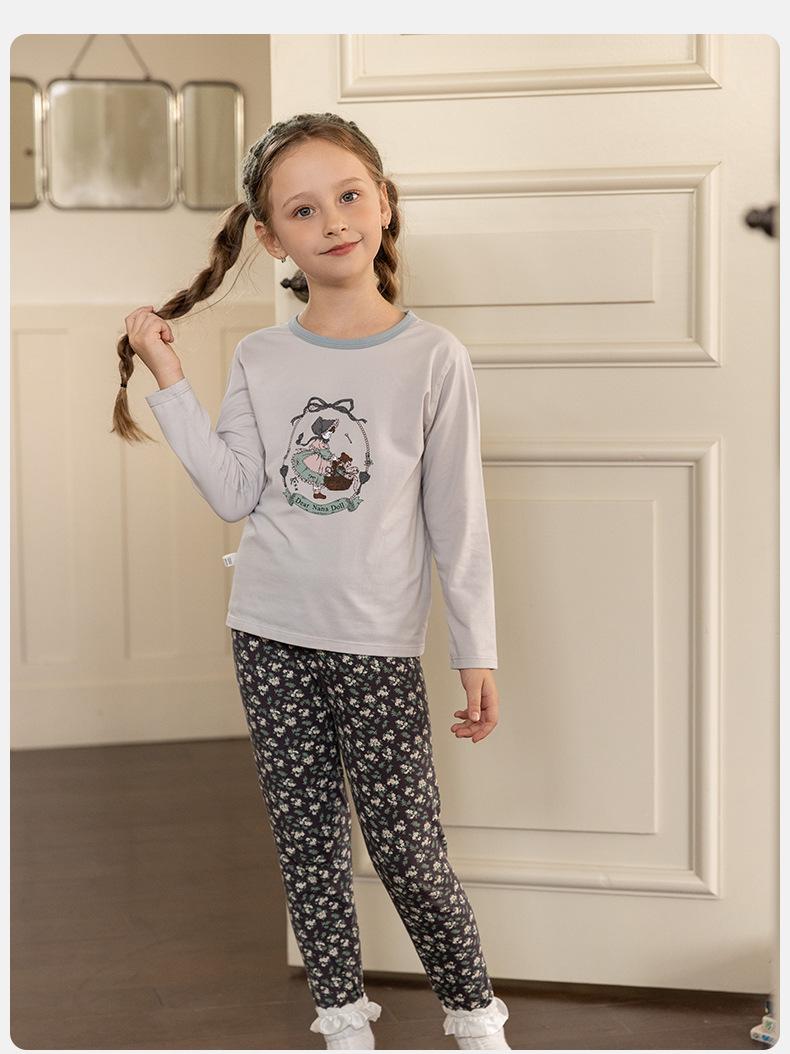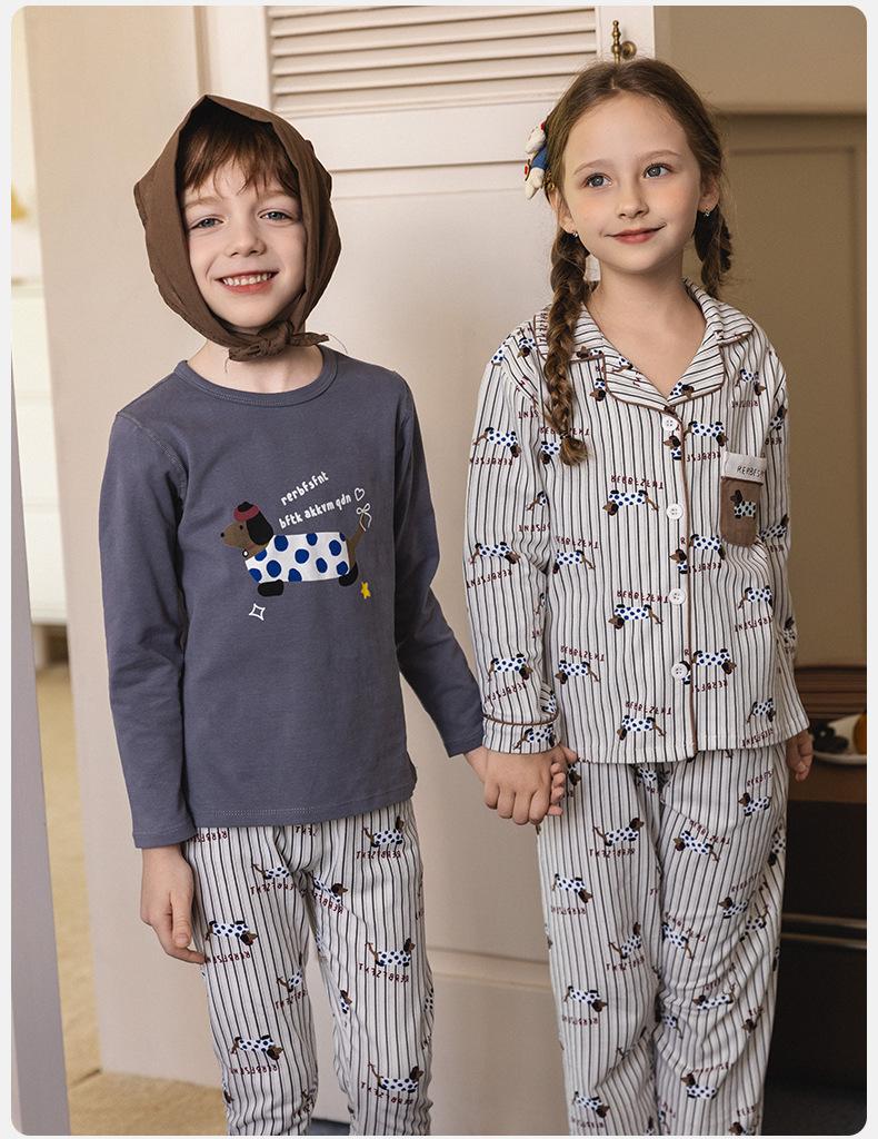 Pijama de Otoño para Niños de Cuello Redondo Niños Niñas Ropa de Casa Ligera Nueva Capa Base Traje para Aire Acondicionado Ropa de Otoño Pantalones de Otoño