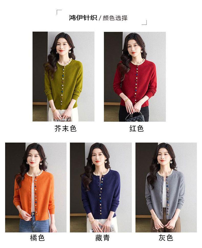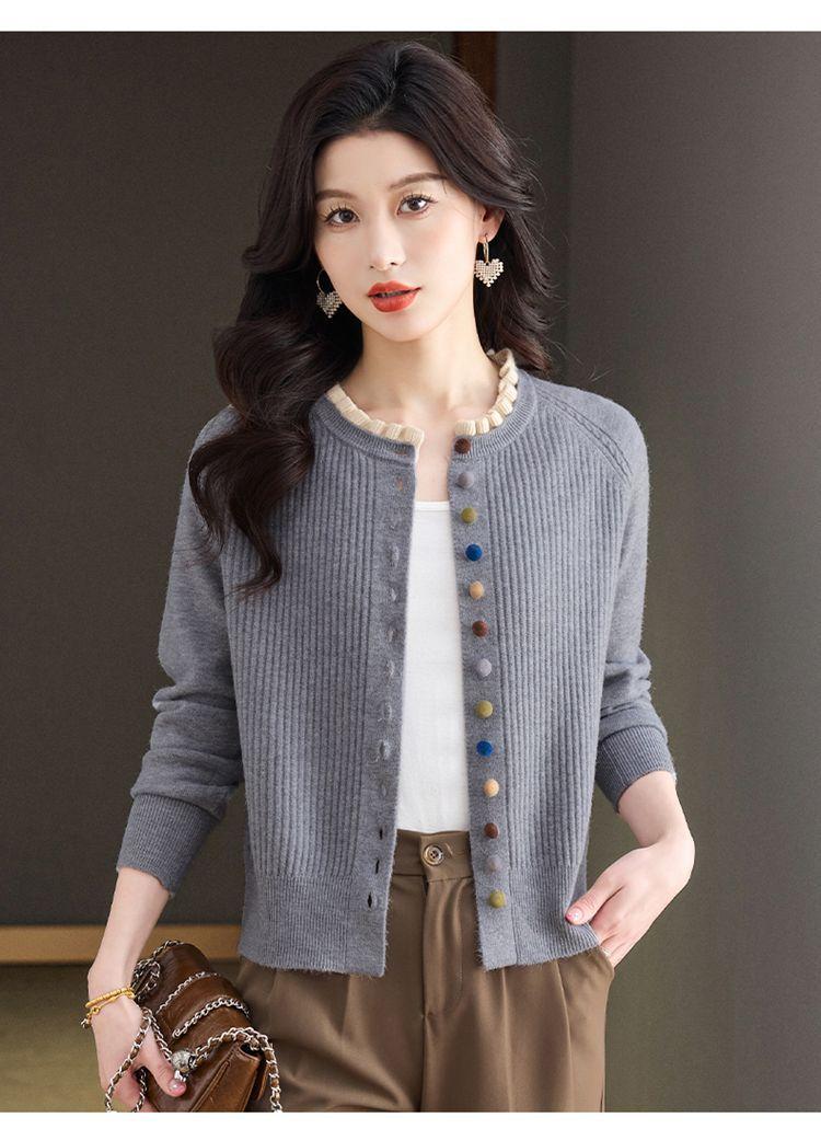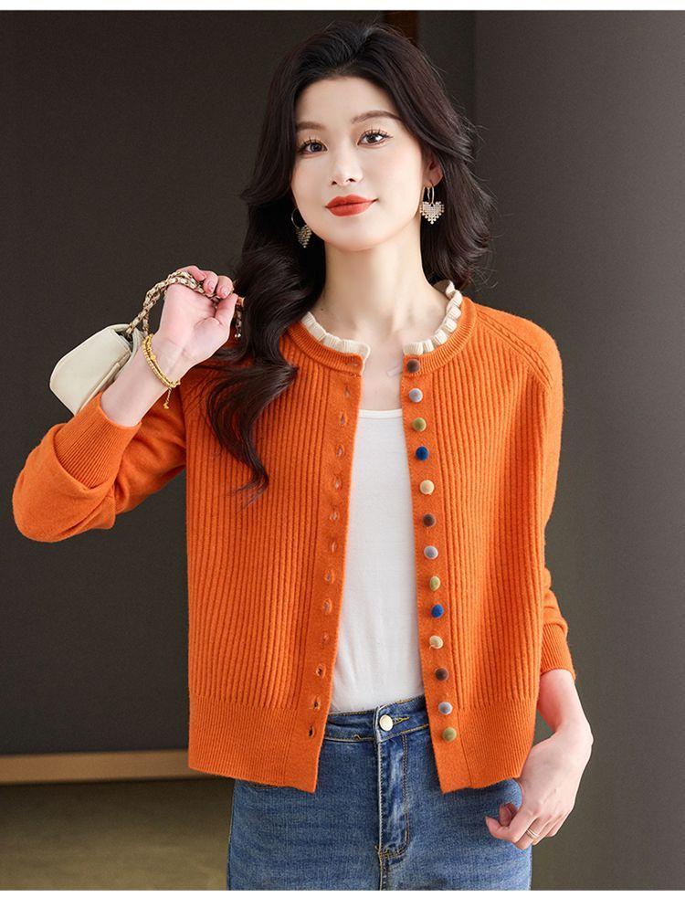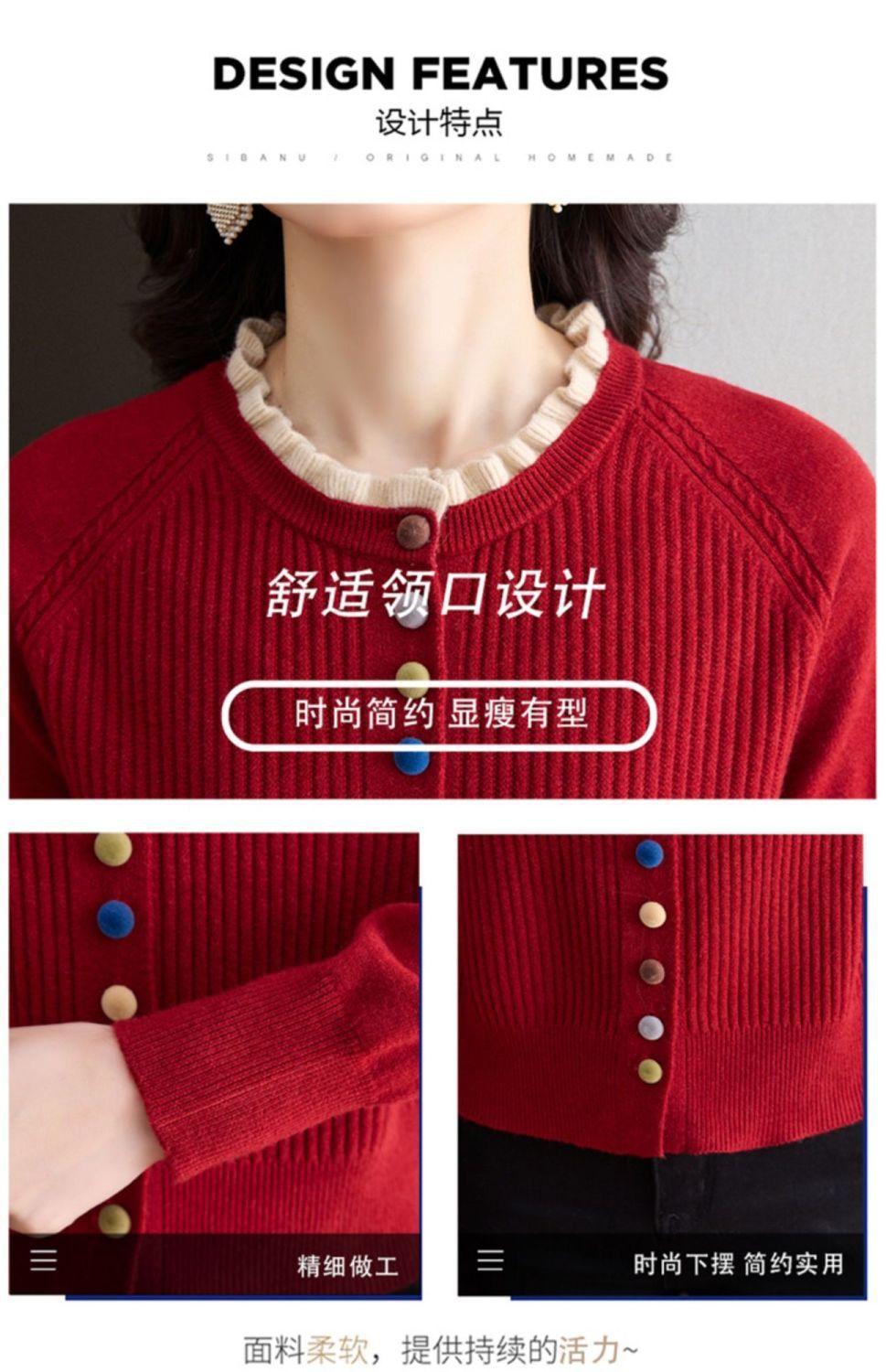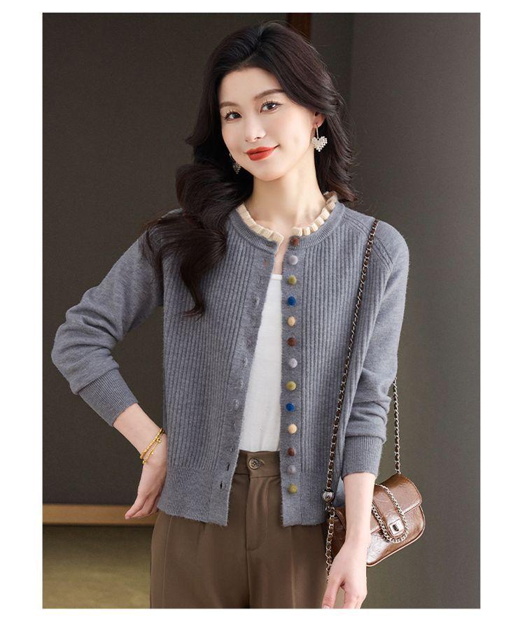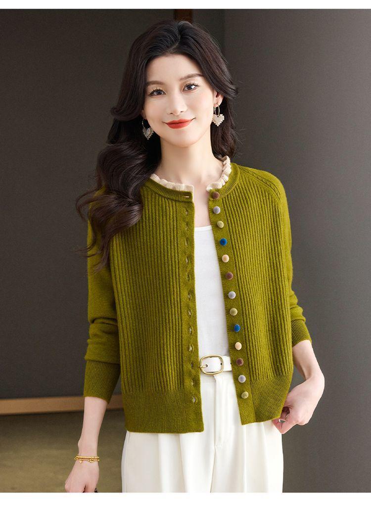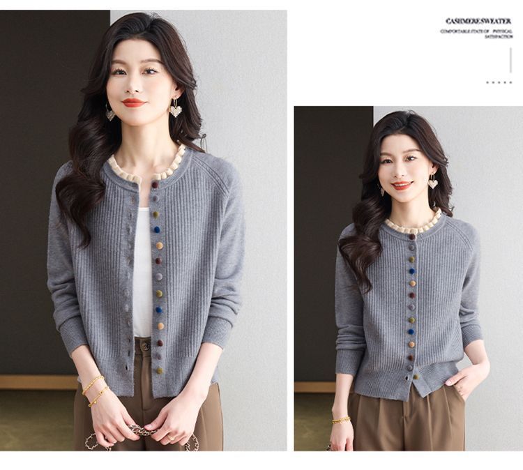 Cárdigan Suéter Abrigo Nuevo Estilo Otoño/Invierno 2025 Botones Coloridos Moda Holgado Adelgazante Cuello Redondo Conjunto Joven Madre Mujer